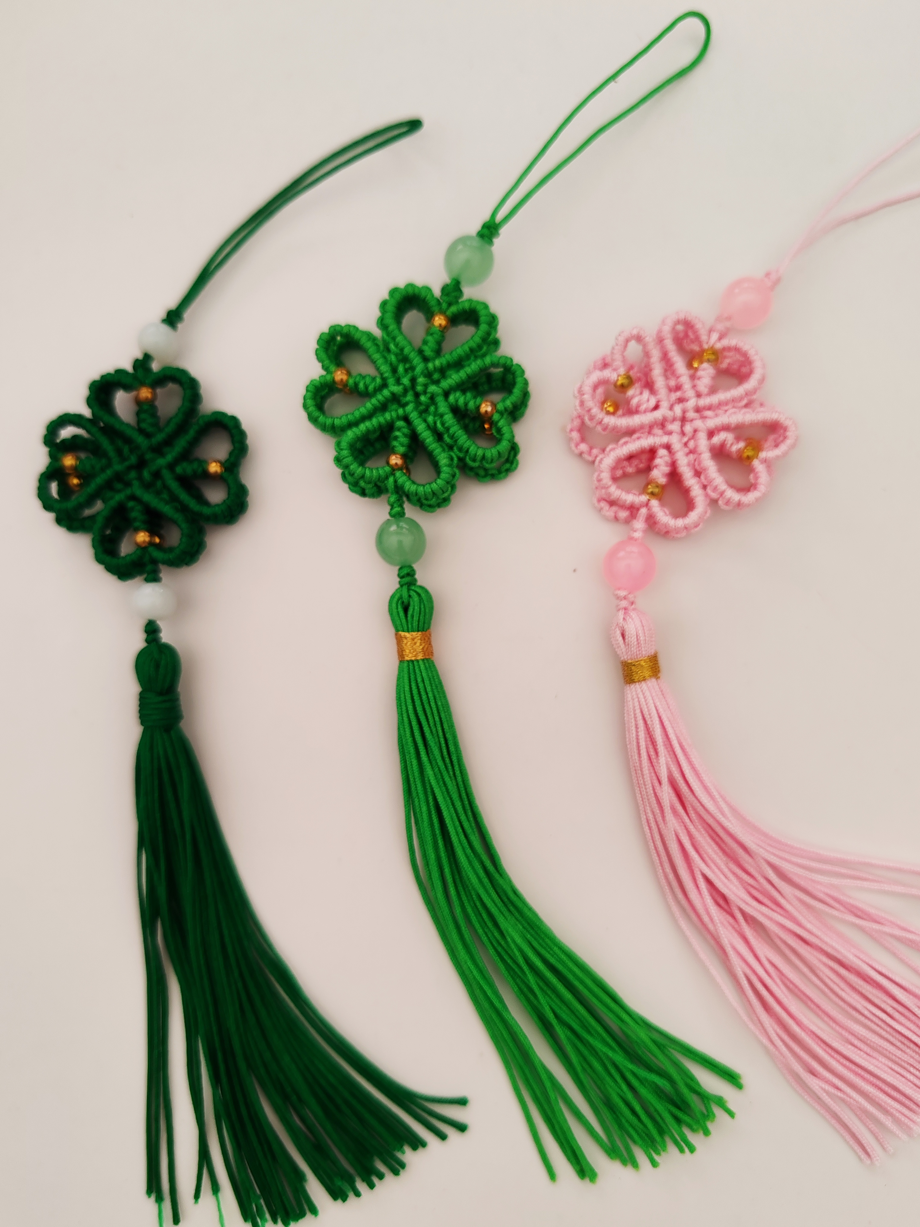 幸运四叶草手机挂饰纯手工编织