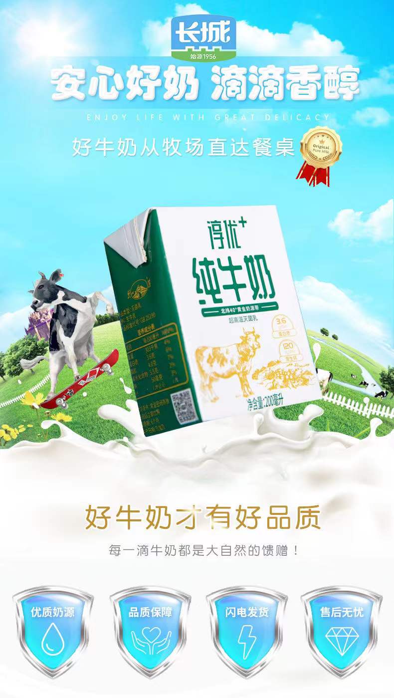 长城淳优+纯牛奶200ml*12【产地直发】
