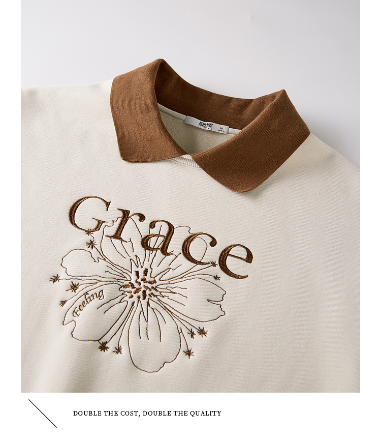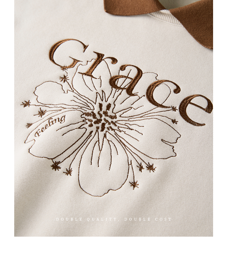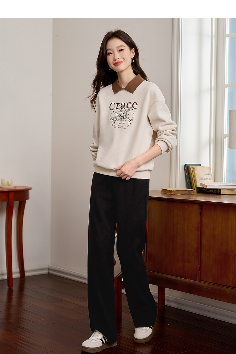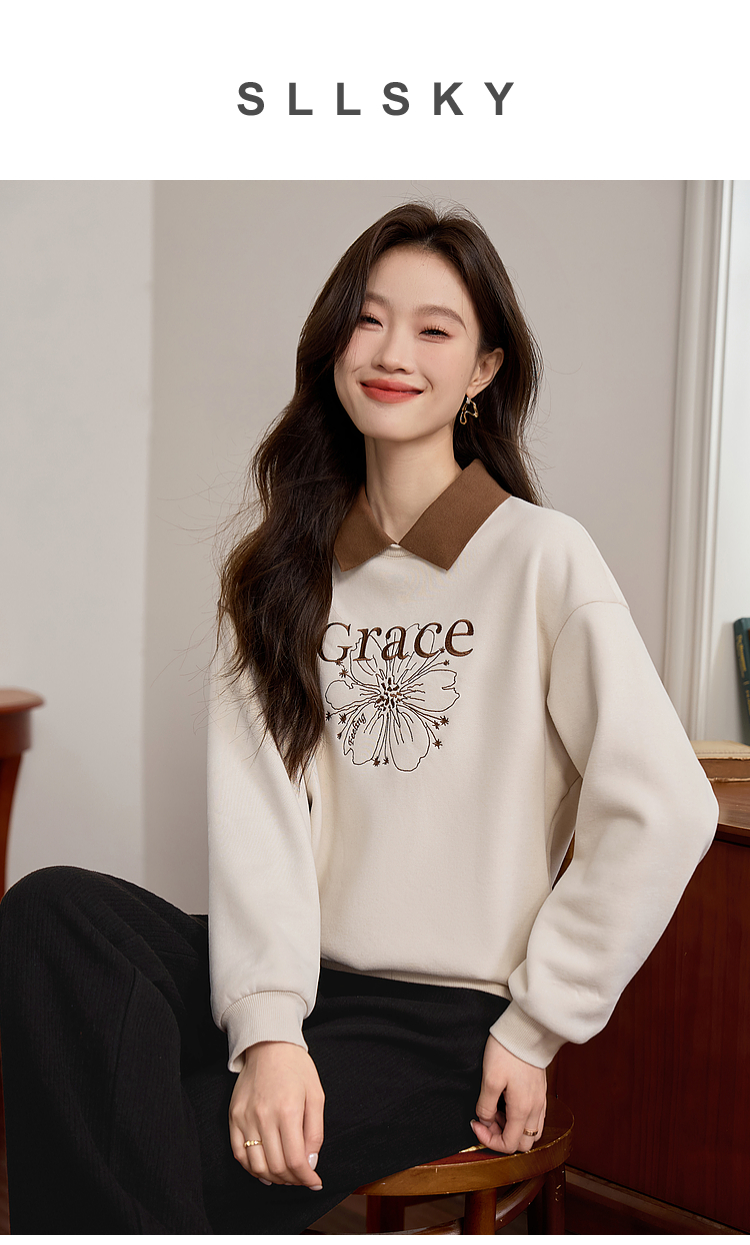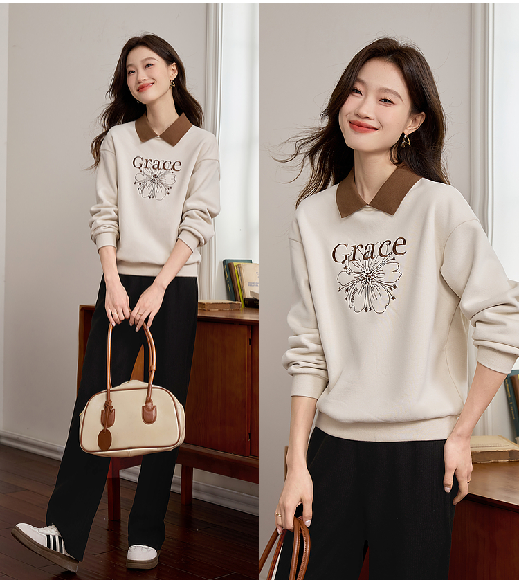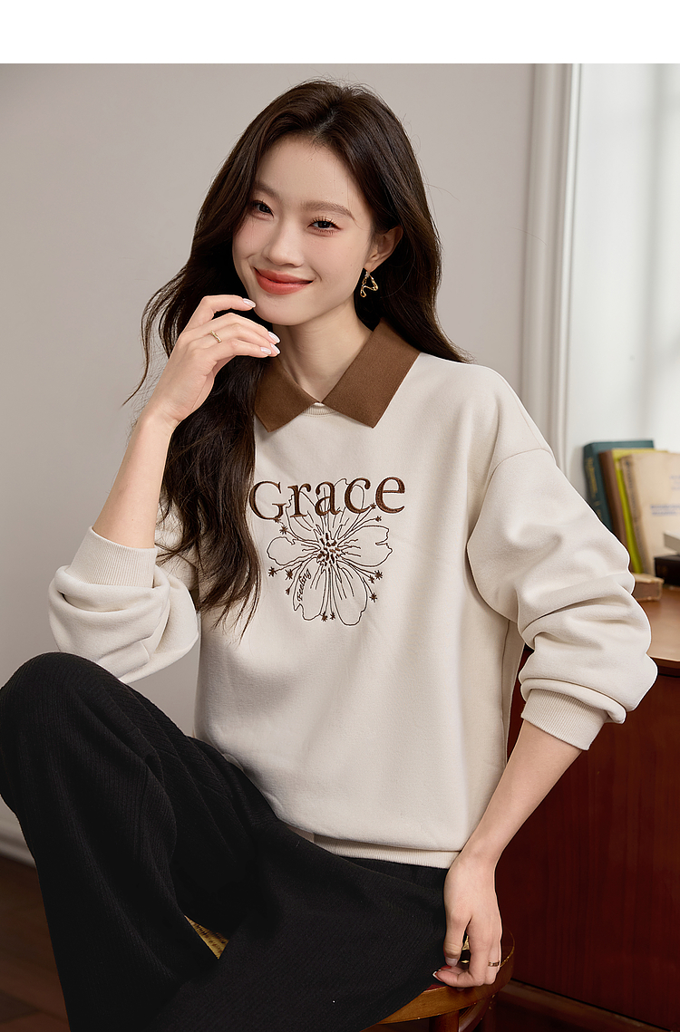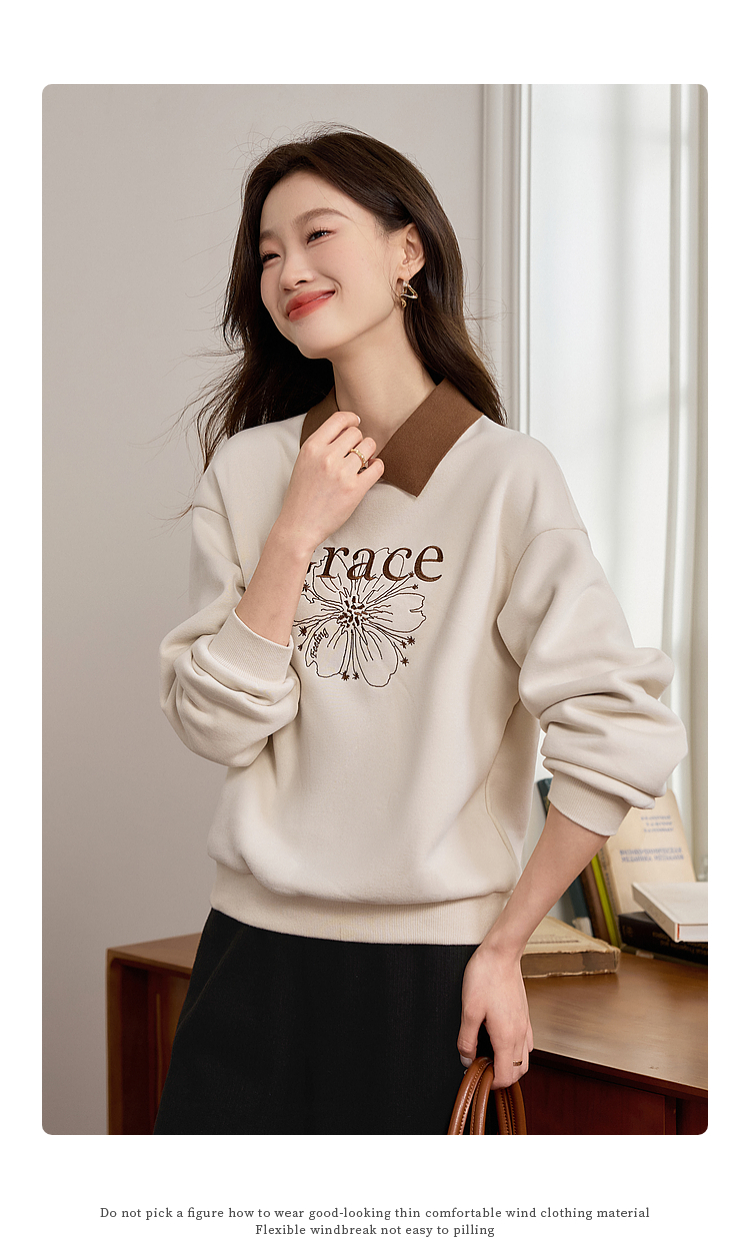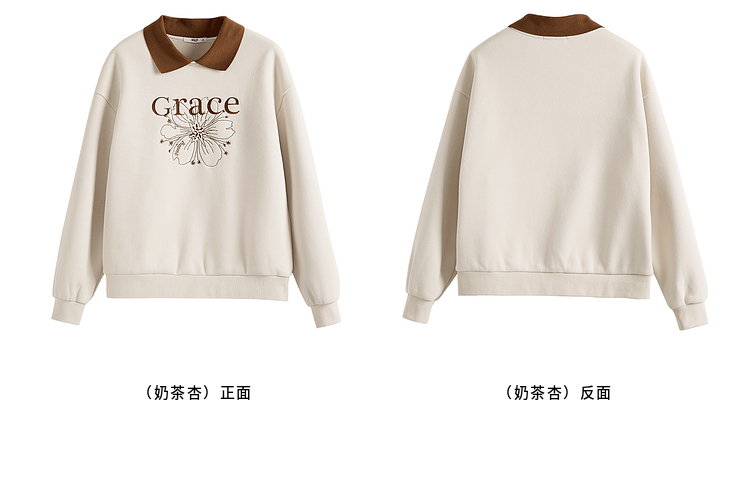 【年中特卖】熙世界假两件POLO领拼接卫衣女加绒秋冬季时尚字母印花套头上衣