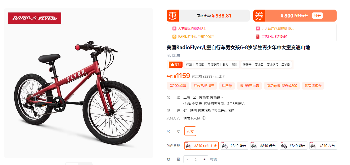 【清仓特价,不退不换,请谨慎下单,感谢理解】RadioFlyer儿童单车大童脚踏脚踏车自行车入门车大童变速山地车
