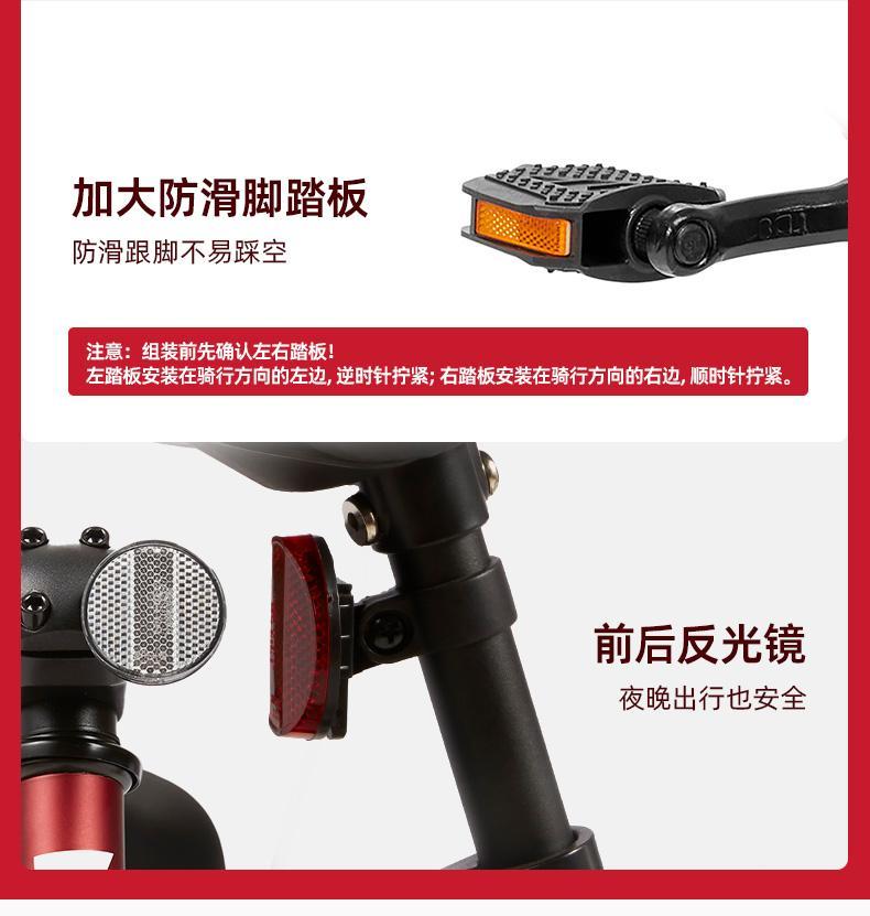 16英寸耐用橡胶轮胎,让娃稳稳当当上学堂!