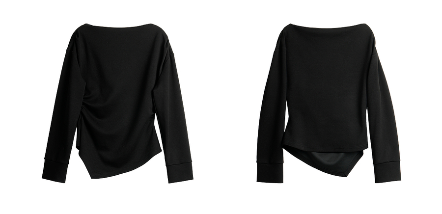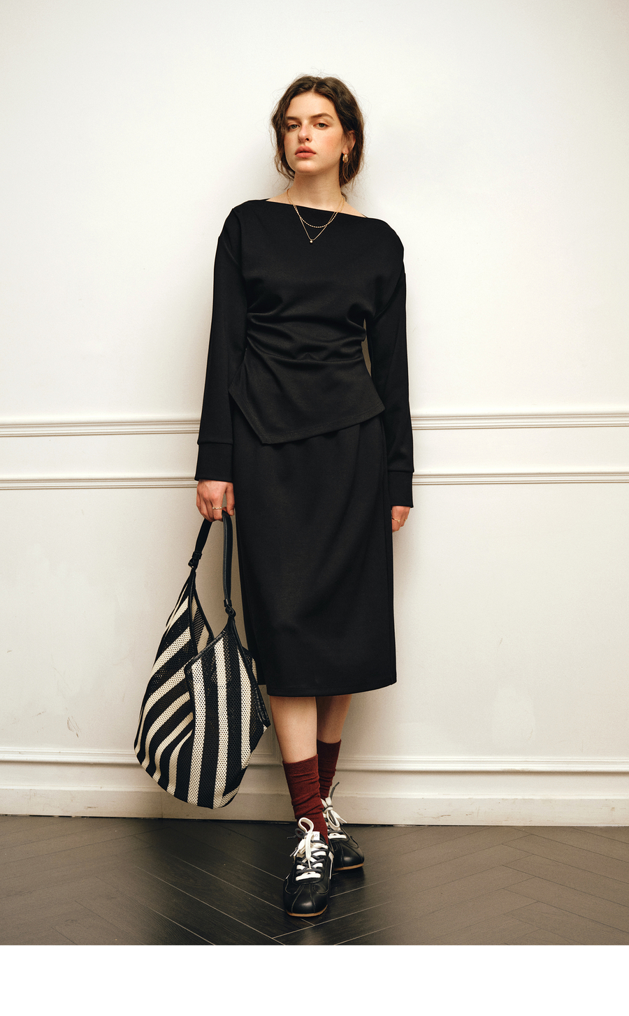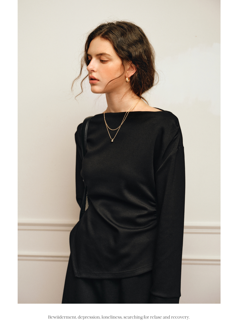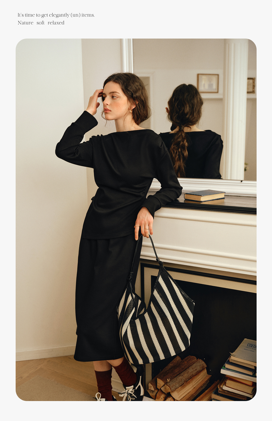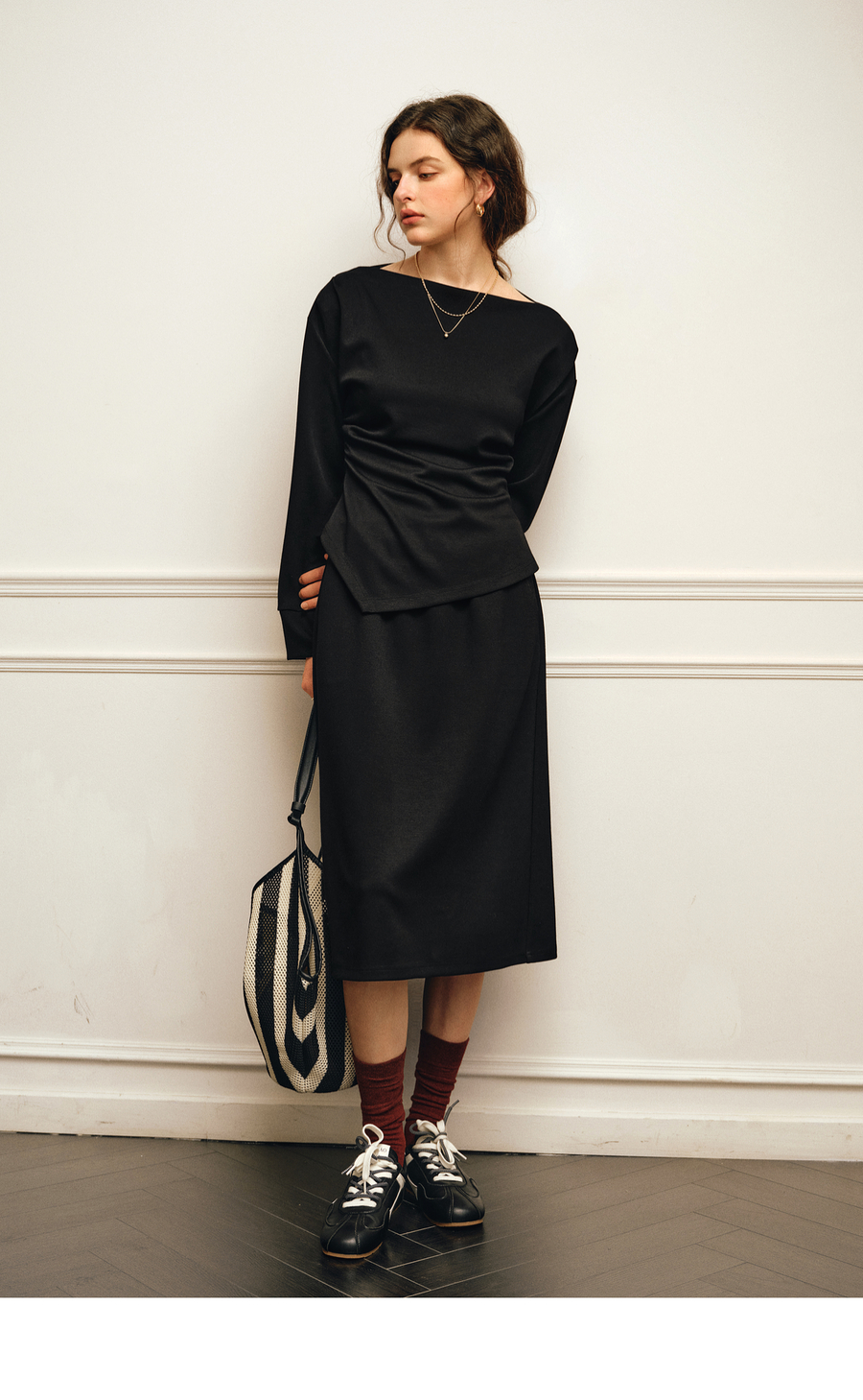 OLrain欧芮儿2025新款女秋季气质一字领不规则黑色卫衣半裙两件套