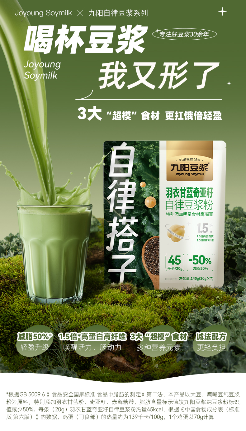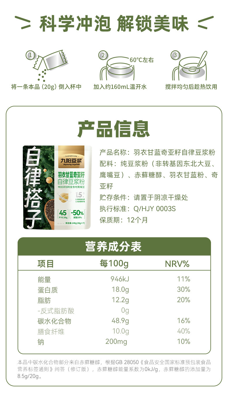 【¥89.9任选5件】九阳豆浆羽衣甘蓝奇亚籽自律豆浆粉140g 膳食纤维蔬菜代餐健身饱腹(任选不参与店铺满赠活动)