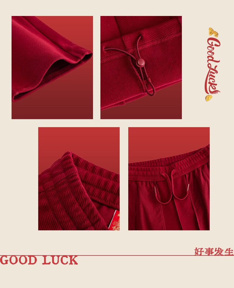 安踏好事发生丨新年鸿运加绒金元宝长裤女子宽松直筒裤162618303N-2