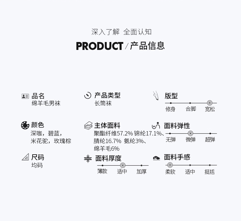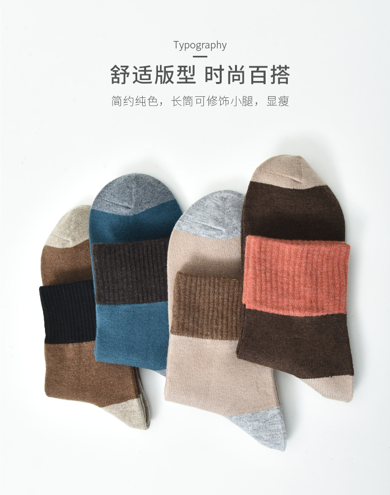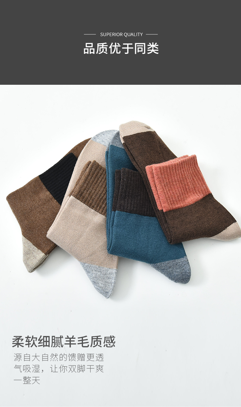 洁丽雅4双装中筒男袜美丽奴羊毛中筒男袜耐磨防寒保暖袜子男