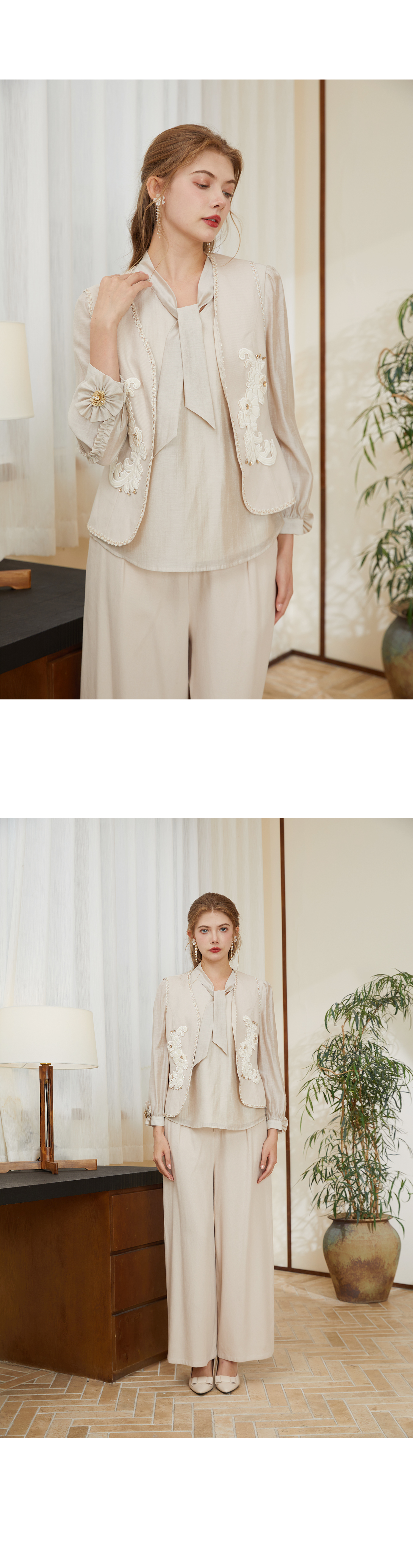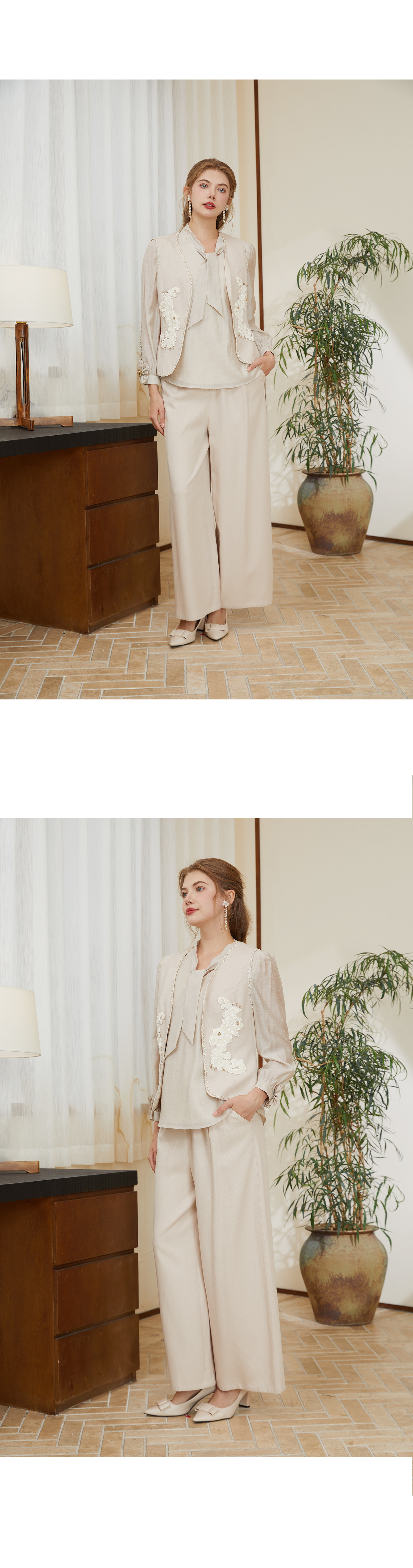 司歌天丝亚麻春秋蝴蝶结衬衫长袖T921273y