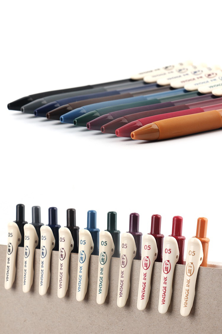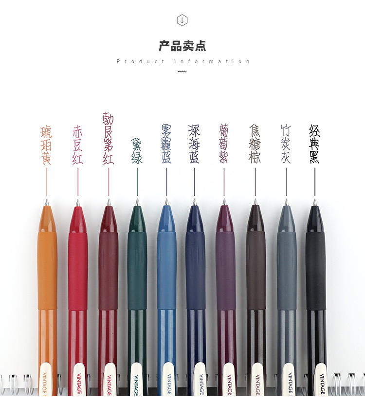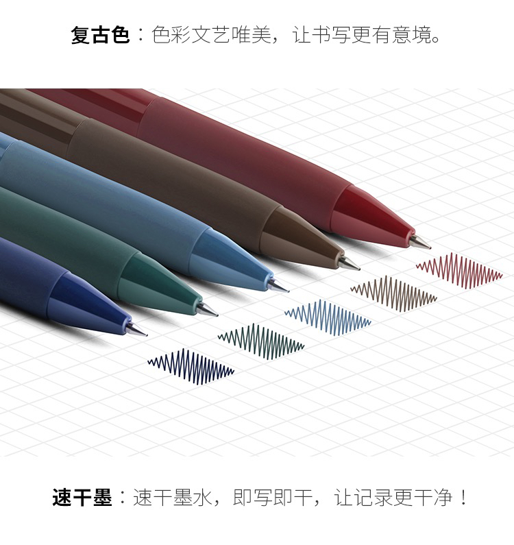 点石轻复古色速干大容量按动中性笔0.5mm 多色