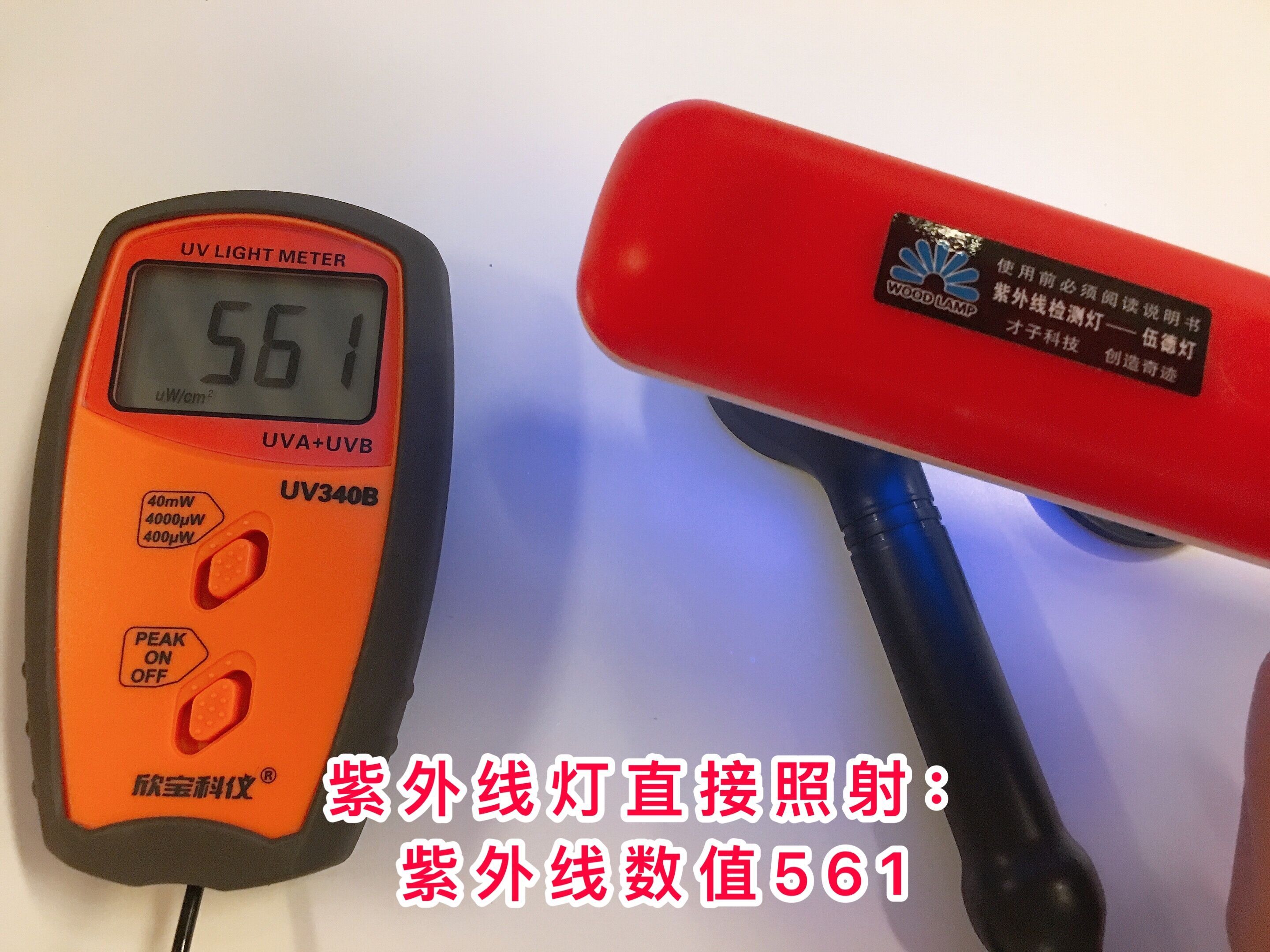 紫外线灯直接照射到紫外线测量仪后,数值是561;