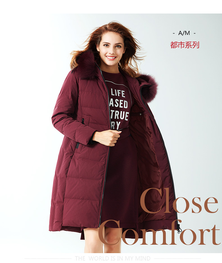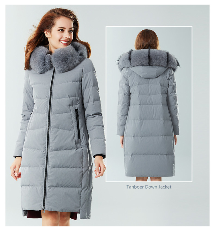 TB18762 坦博尔2018新款长款羽绒服女连帽大毛领修身外套潮