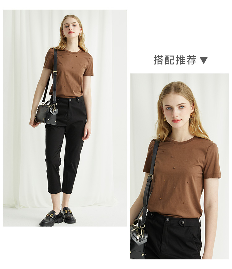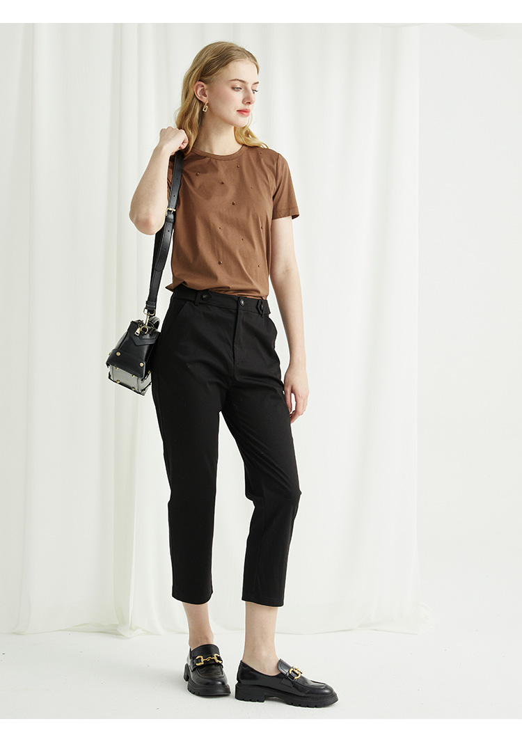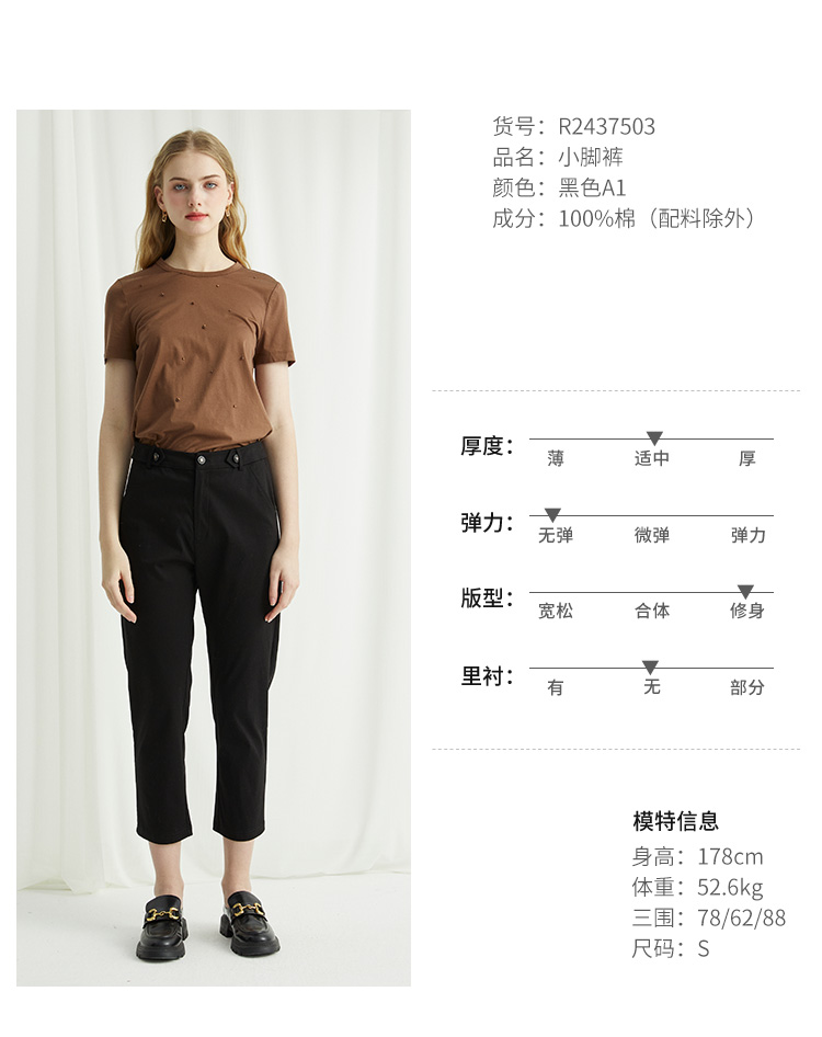 VIVIAN LIU R2437503夏女装新款时尚腰部系扣修身显瘦小脚裤