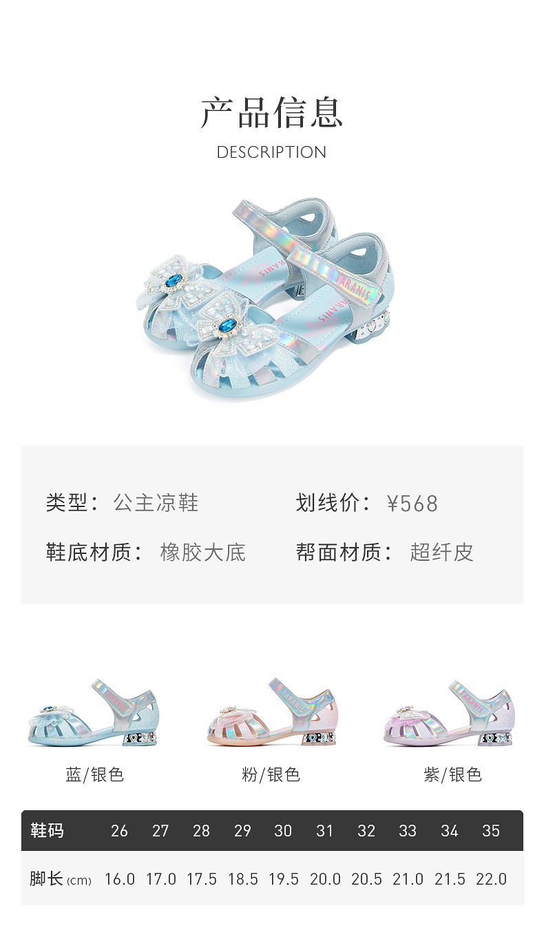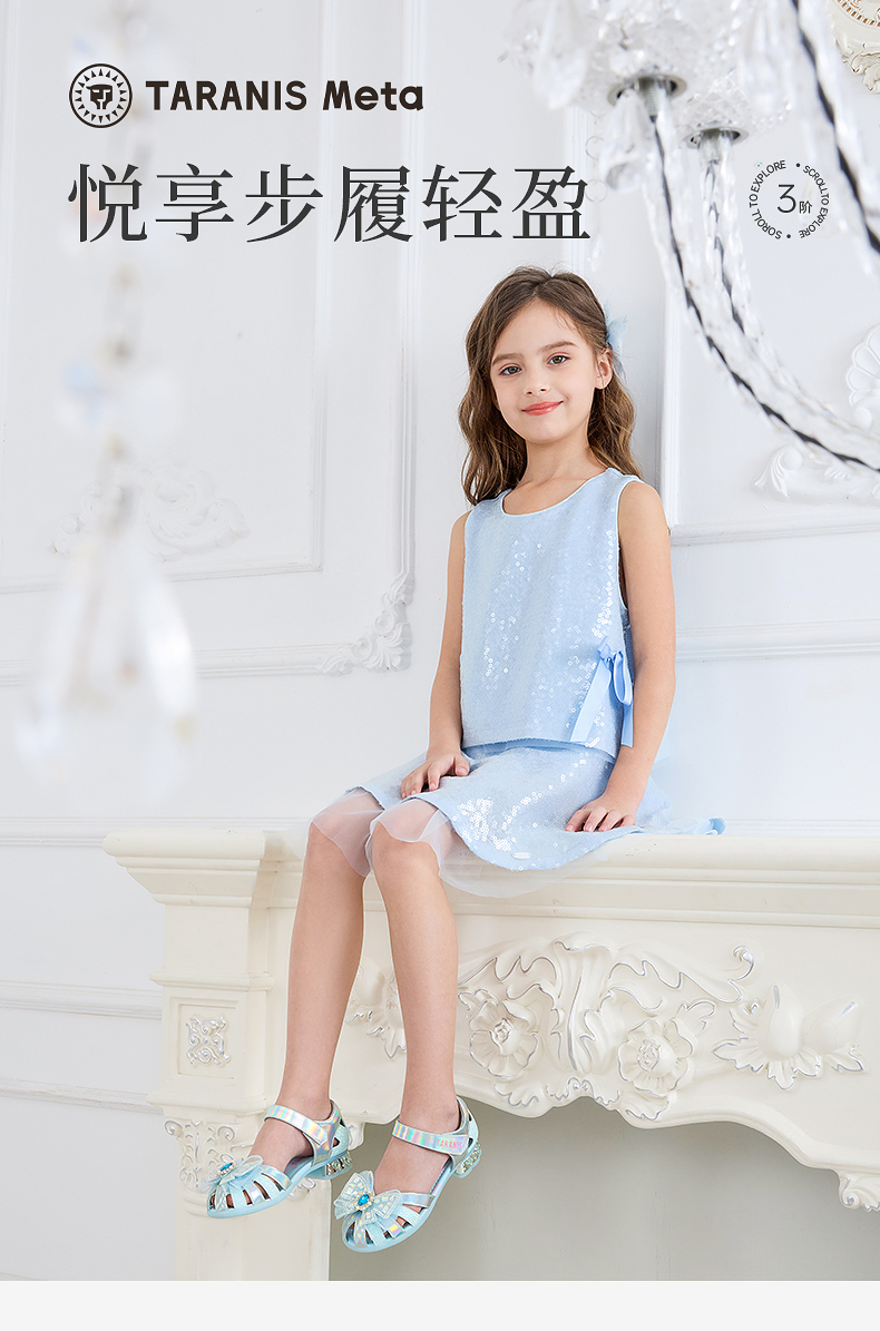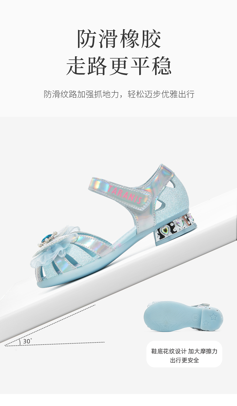 泰兰尼斯meta夏季新款女童凉鞋时尚甜美公主鞋小女孩轻便软底单鞋 M07X5B5937