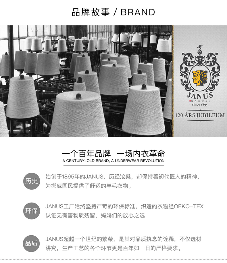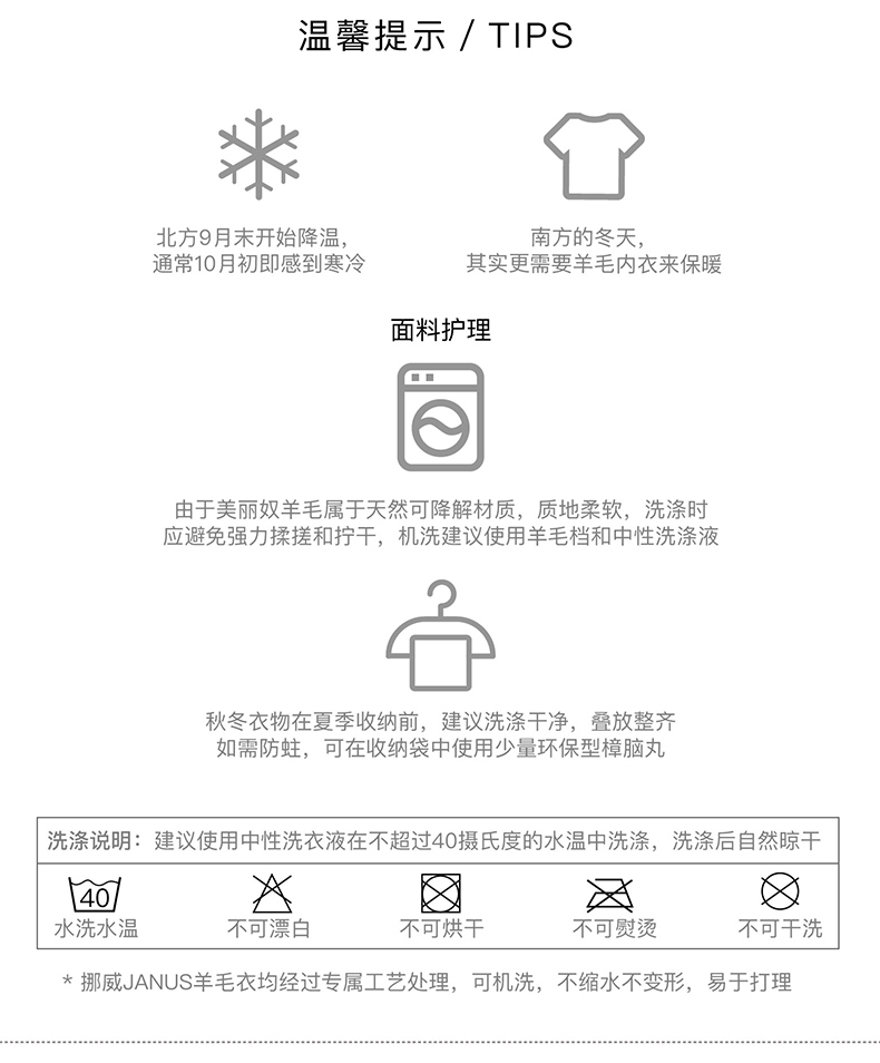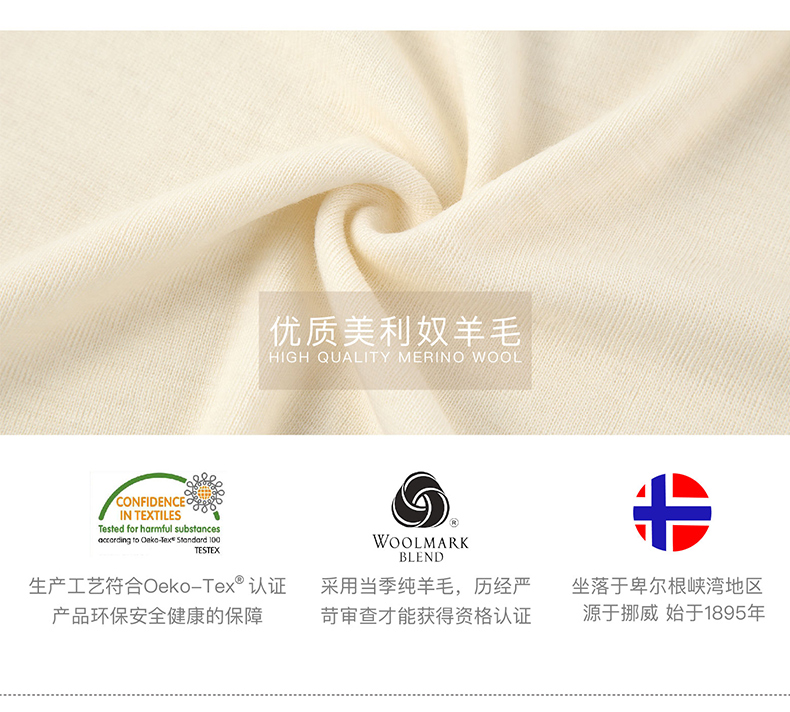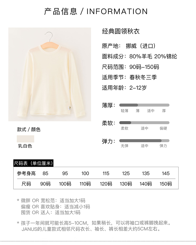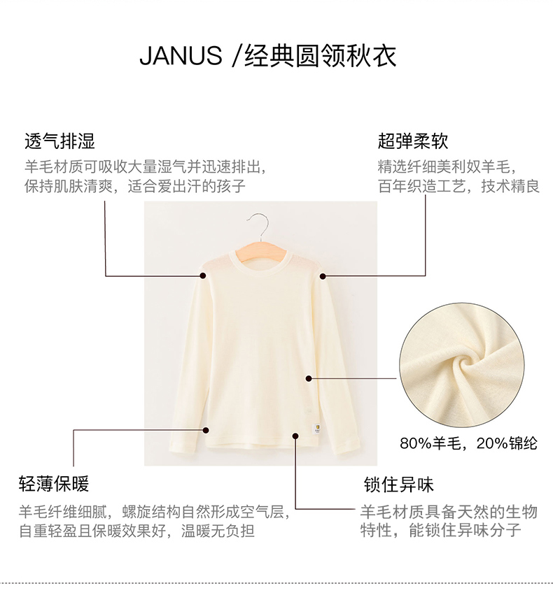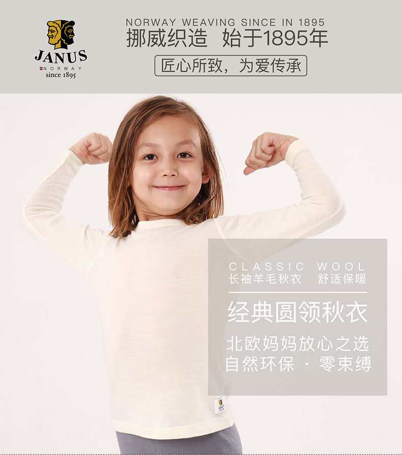 JANUS挪威进口美利奴羊毛保暖内衣儿童上衣柔软舒适圆领上衣秋衣