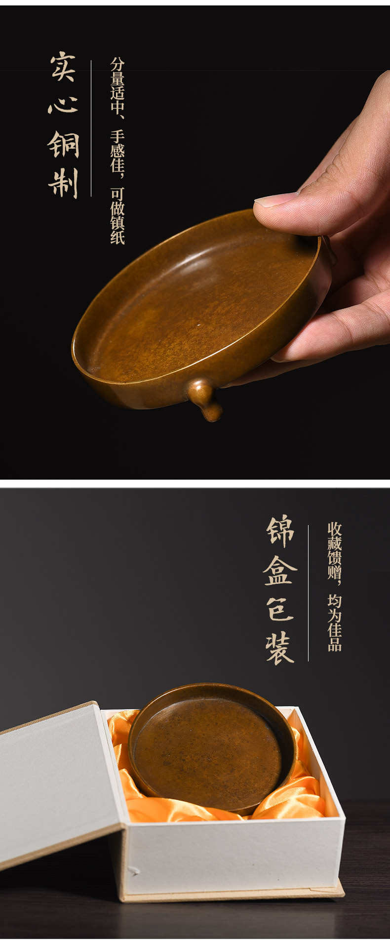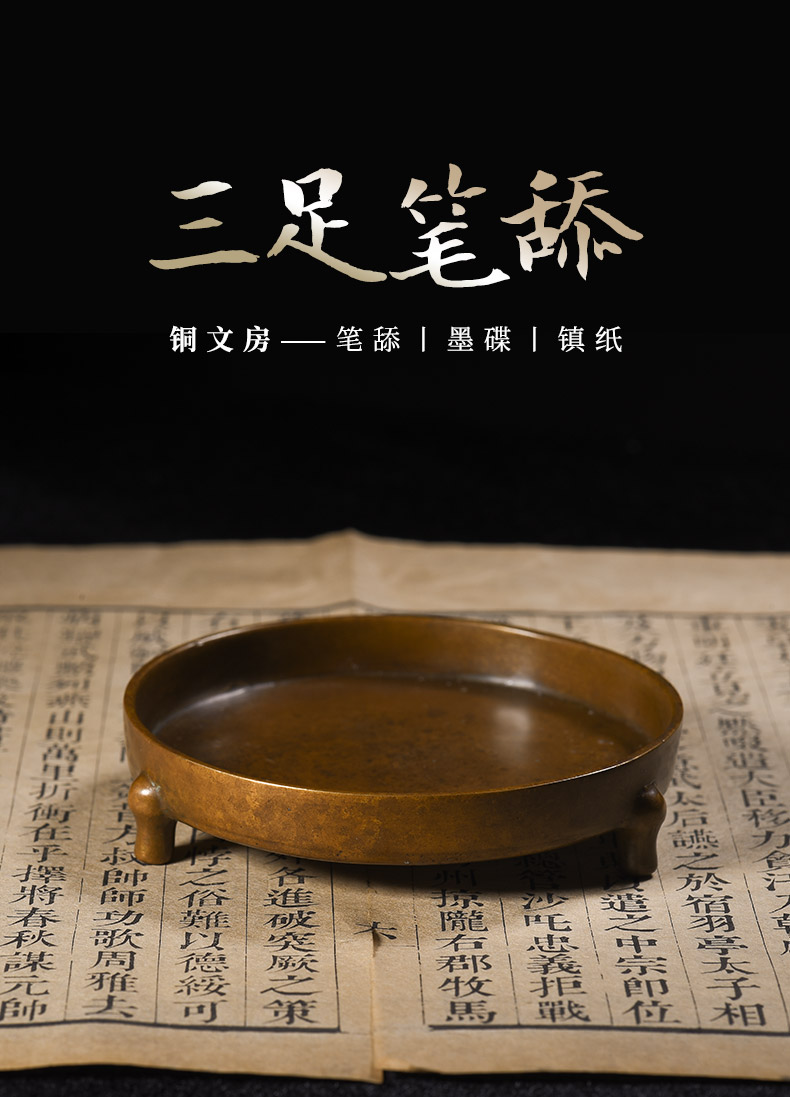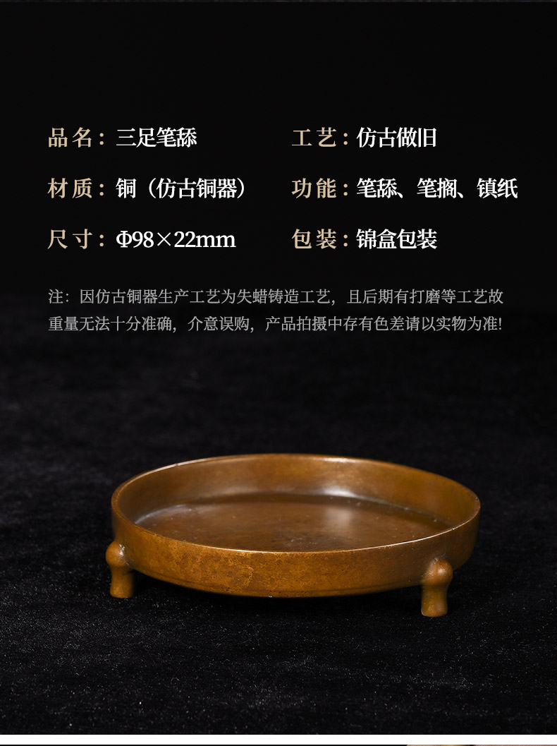 西泠文房 三足铜笔掭笔舔毛笔笔搁镇纸墨碟仿古实心铜器桌面做旧多功能镇尺摆件文房四宝收藏送礼
