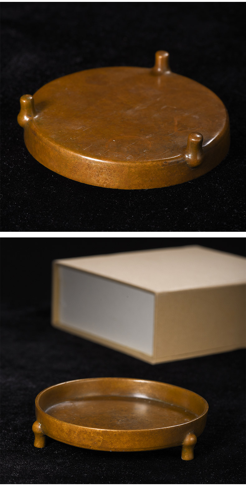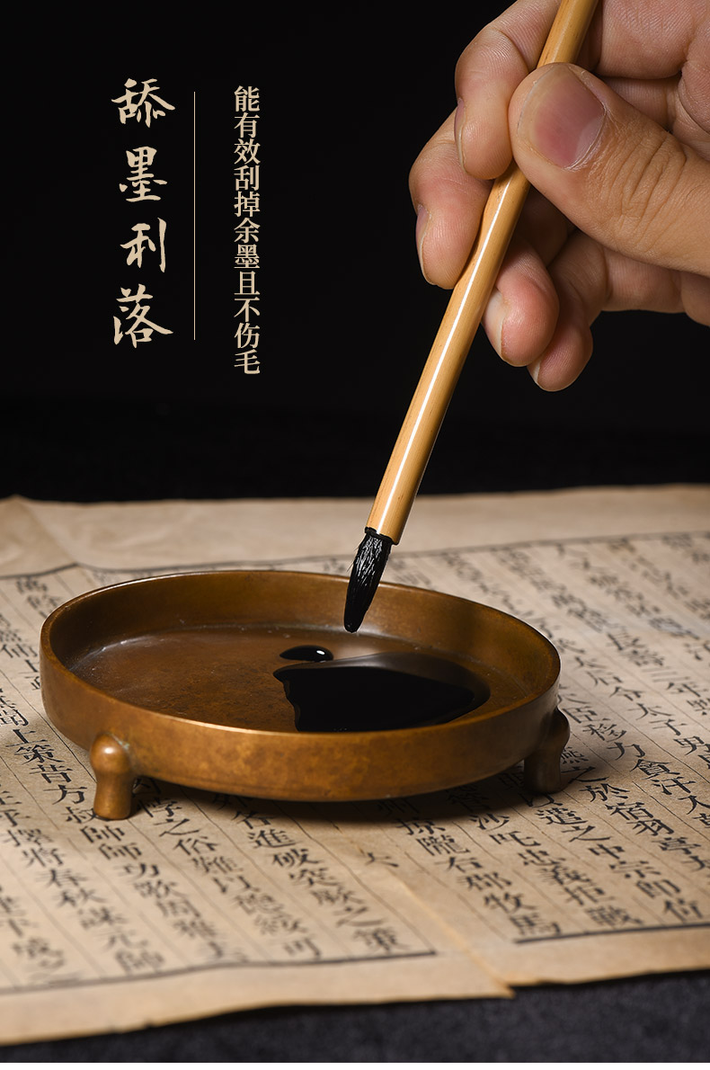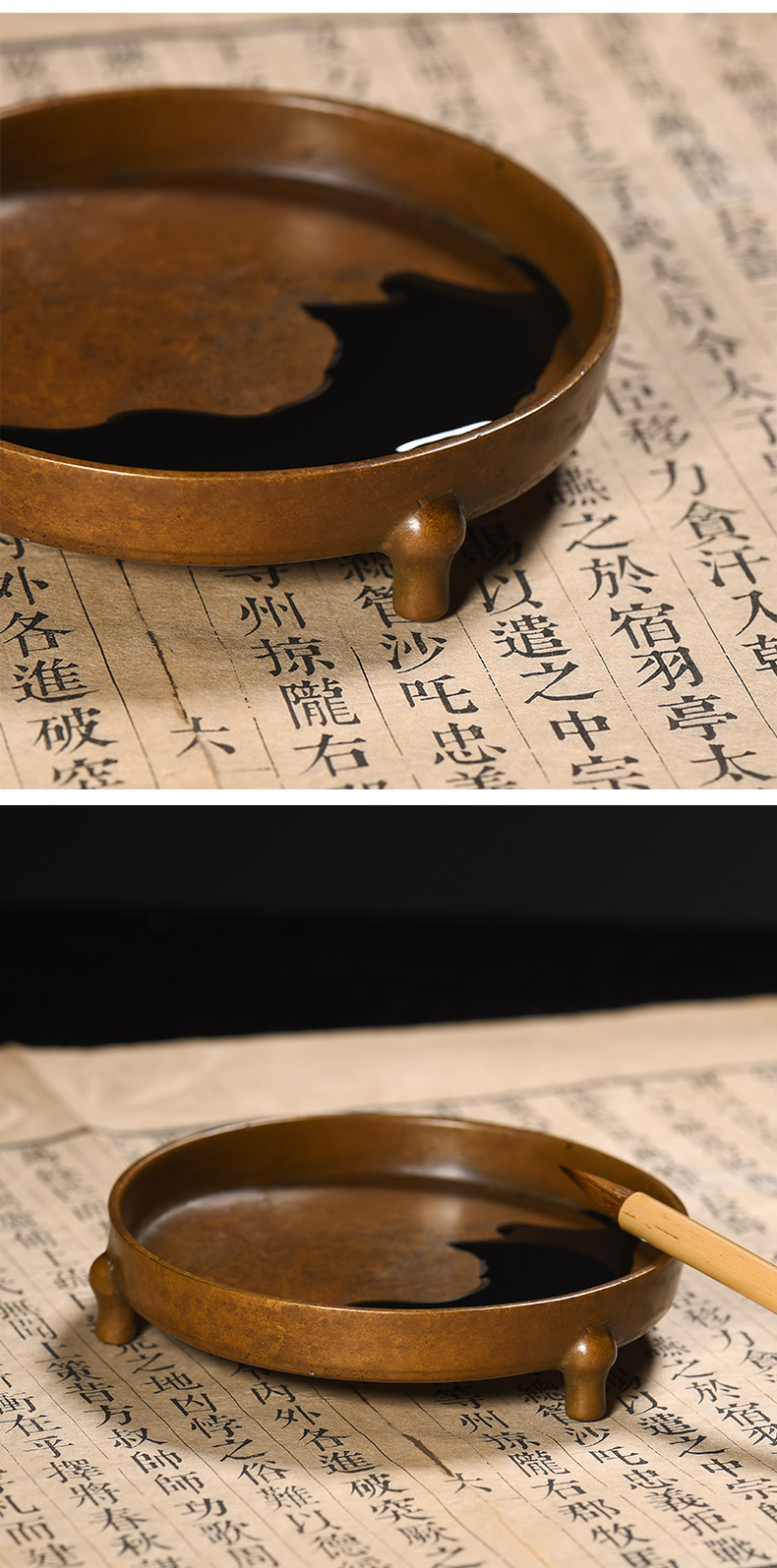 西泠文房 三足铜笔掭笔舔毛笔笔搁镇纸墨碟仿古实心铜器桌面做旧多功能镇尺摆件文房四宝收藏送礼