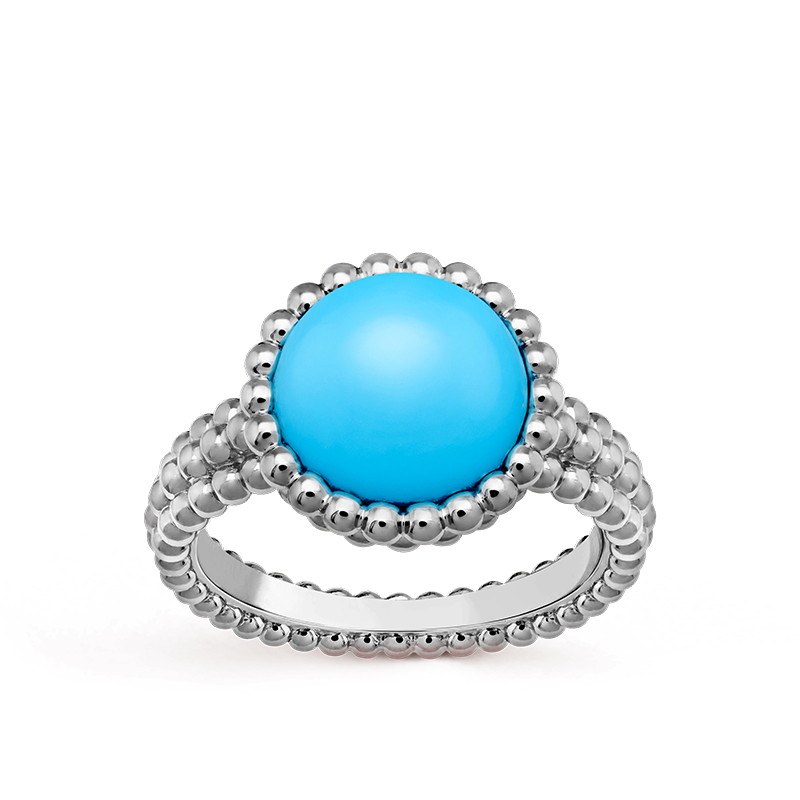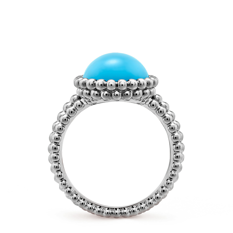【包税】Van Cleef & Arpels/梵克雅宝 经典Perlée couleurs系列 18K金白金镶嵌圆形绿松石戒指指环VCARP4DQ00