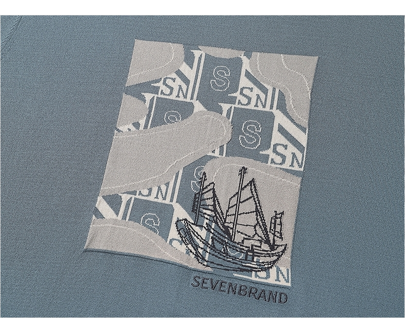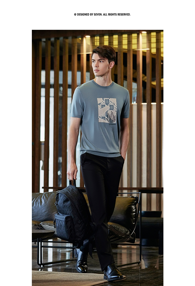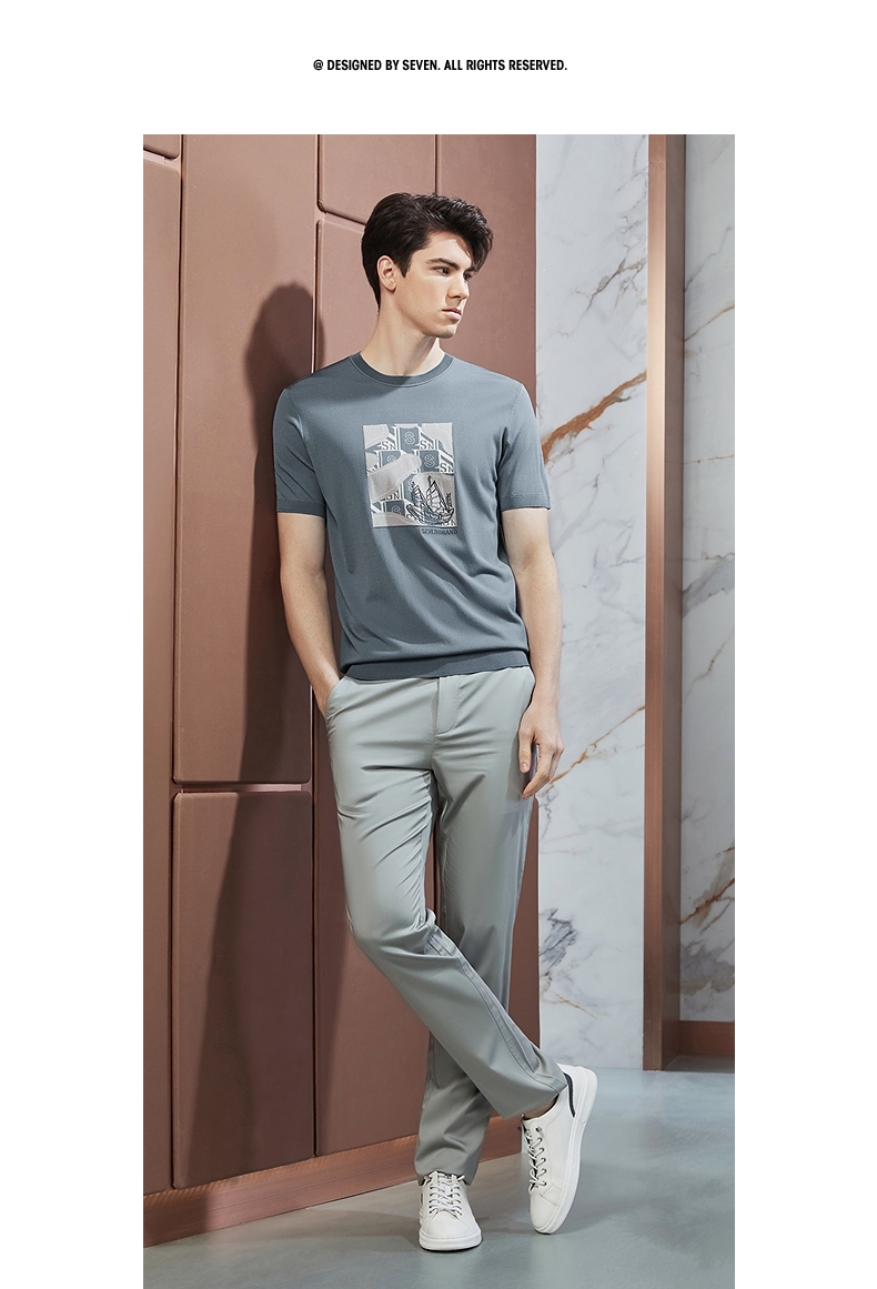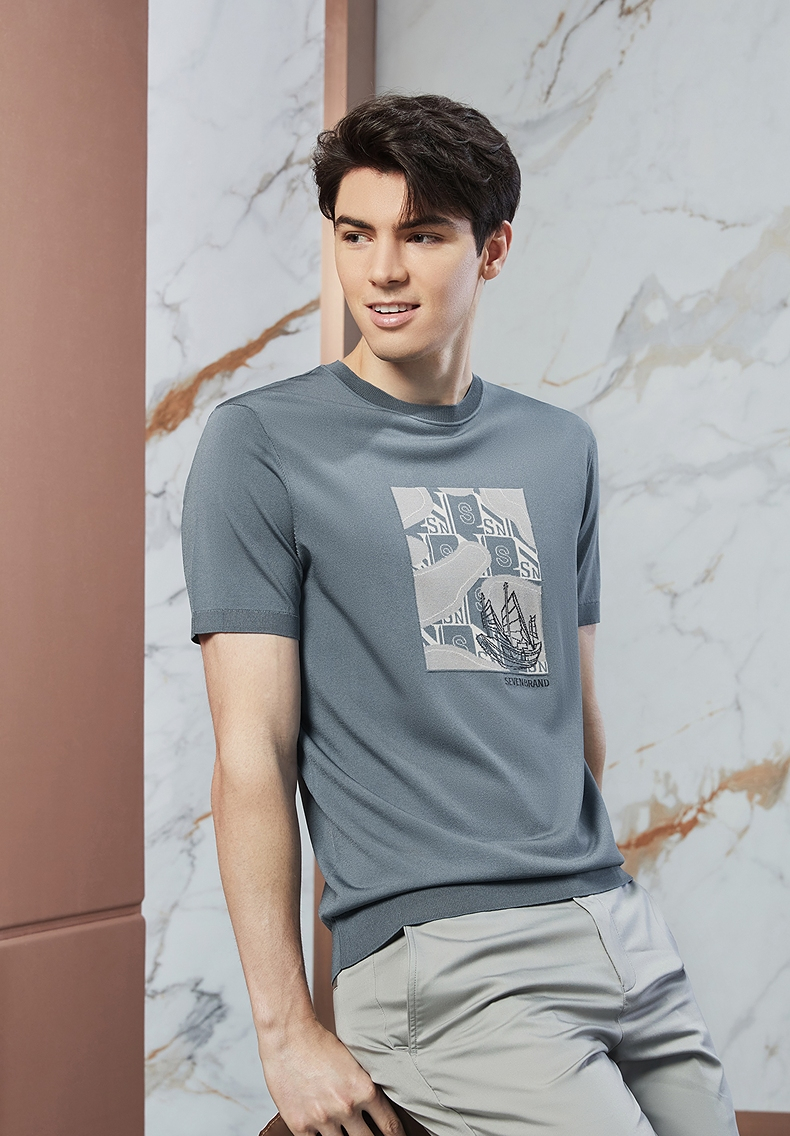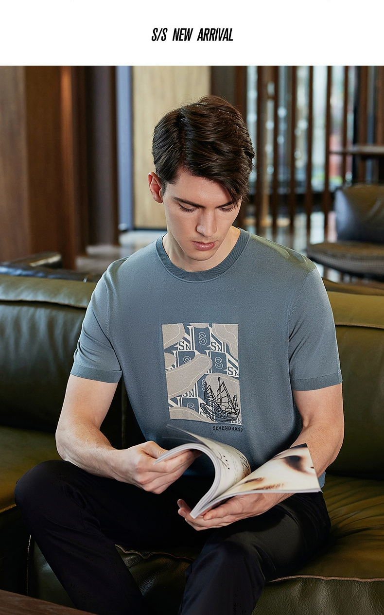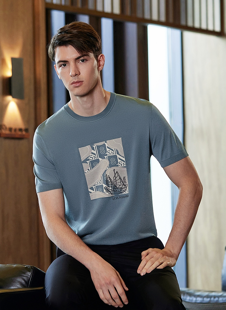 【高端系列】柒牌短袖T恤男夏季新款伊力特透气帆船提花圆领上衣 126T72170