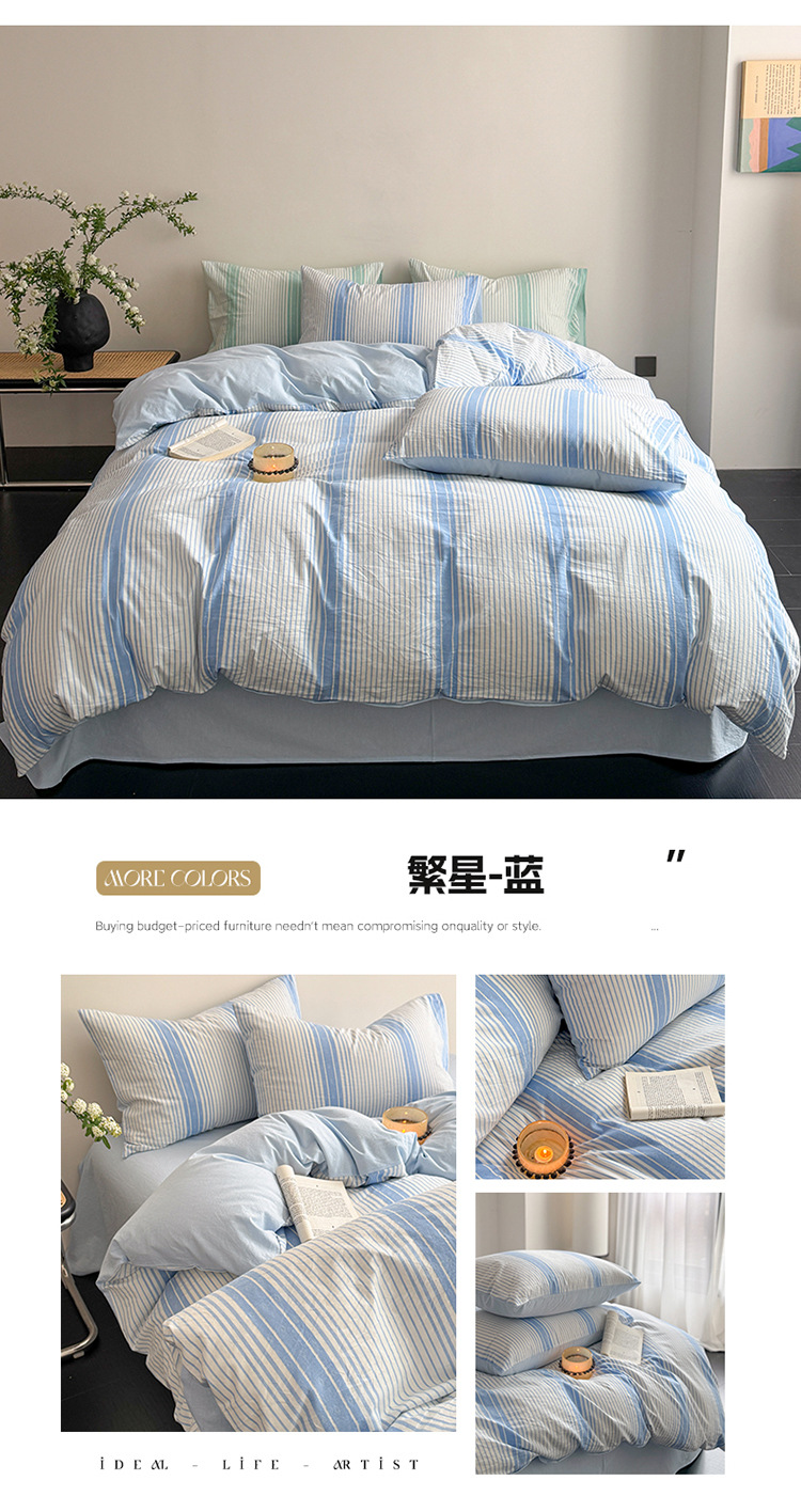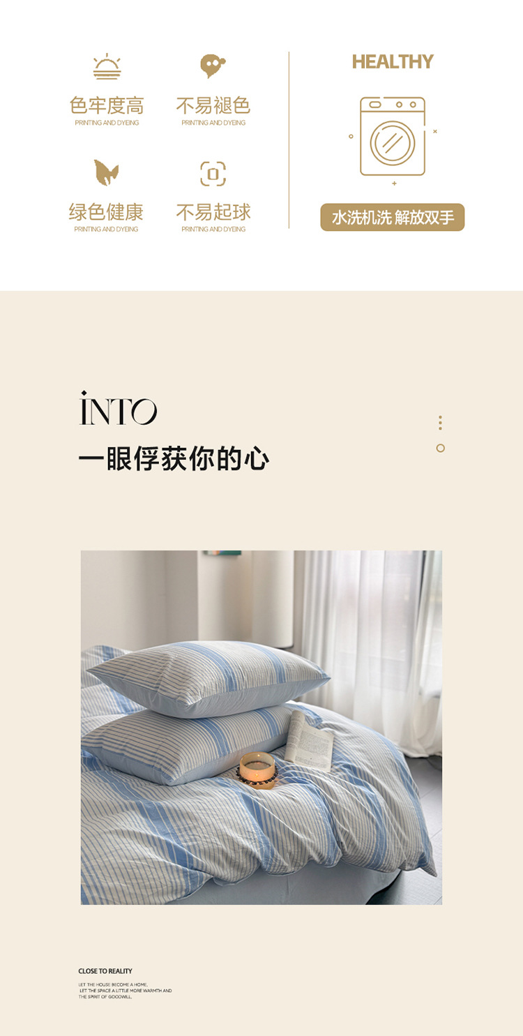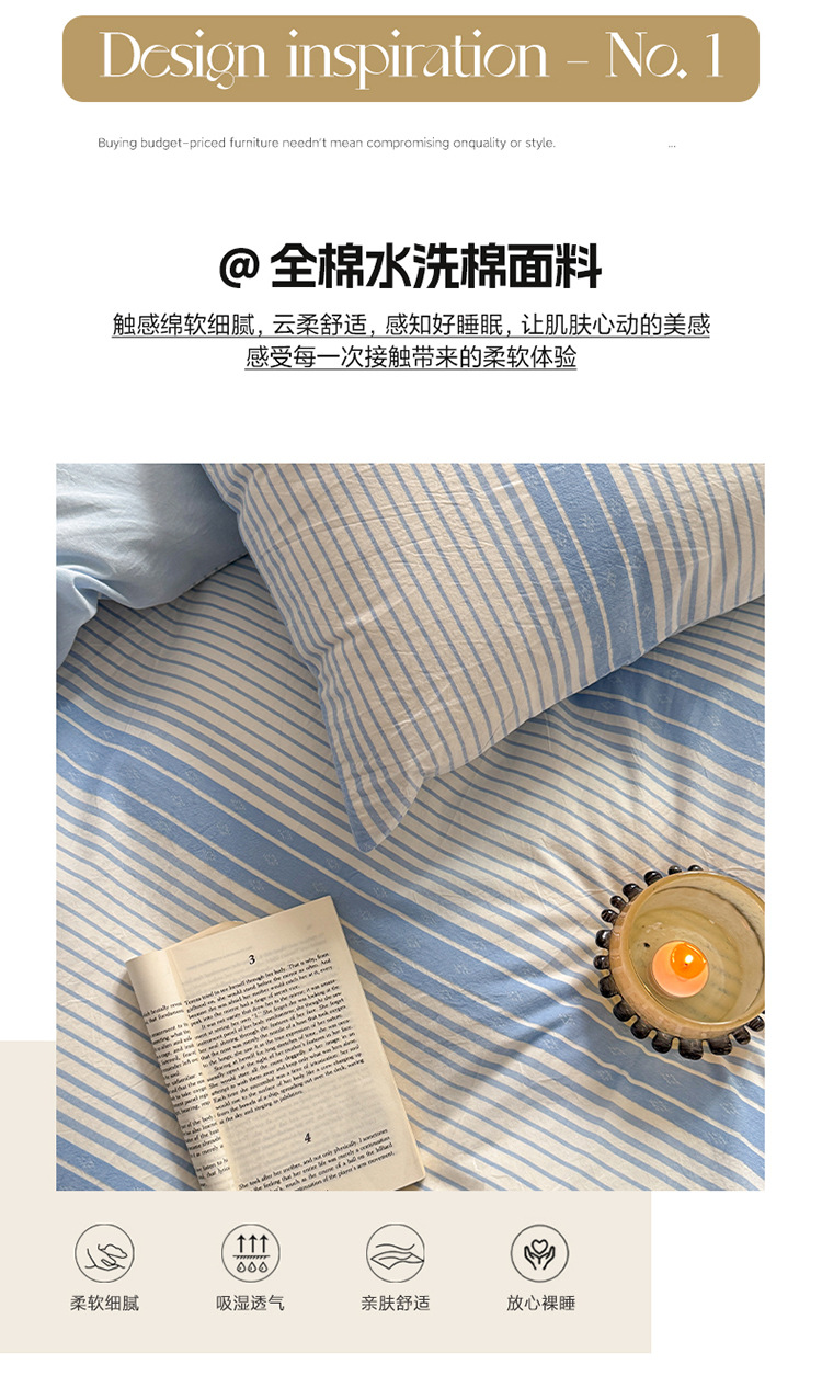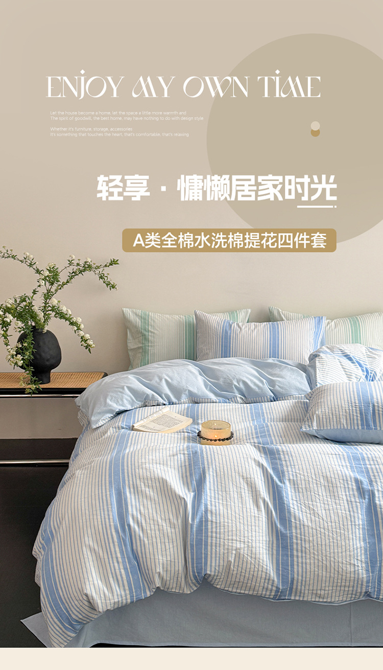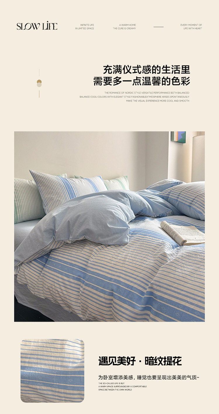 【条纹提花四件套】A类床上四件套全棉柔软裸睡条纹提花被套床品件套新