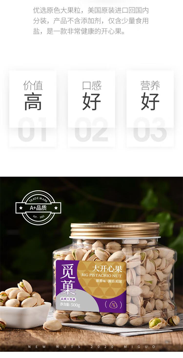 觅果美国大开心果500g/罐