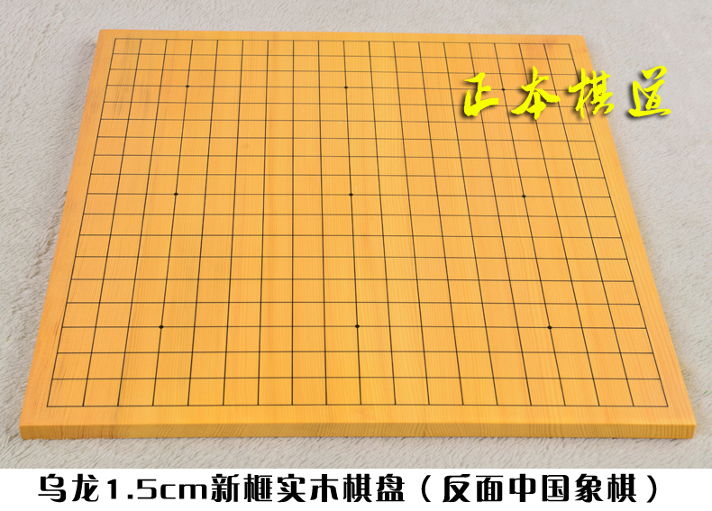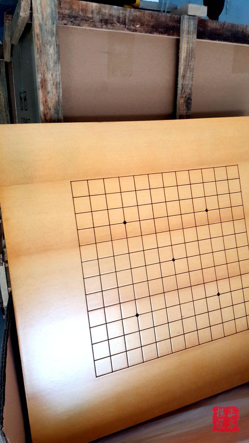 上图是4厘米厚贴木面双面新榧棋盘(一面19路围棋,一面中国象棋)