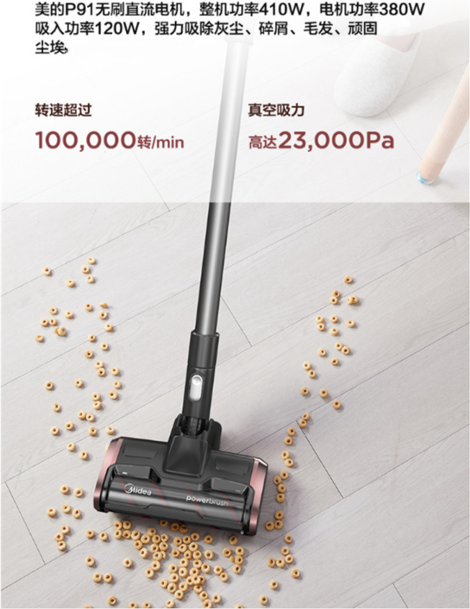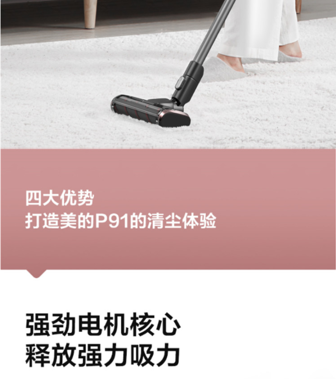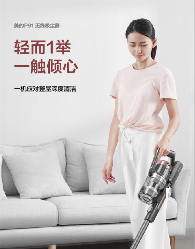 美的(Midea) 无线吸尘器 P91 家用 小型 大吸力 低噪音 强力 无绳 手持式 吸尘器