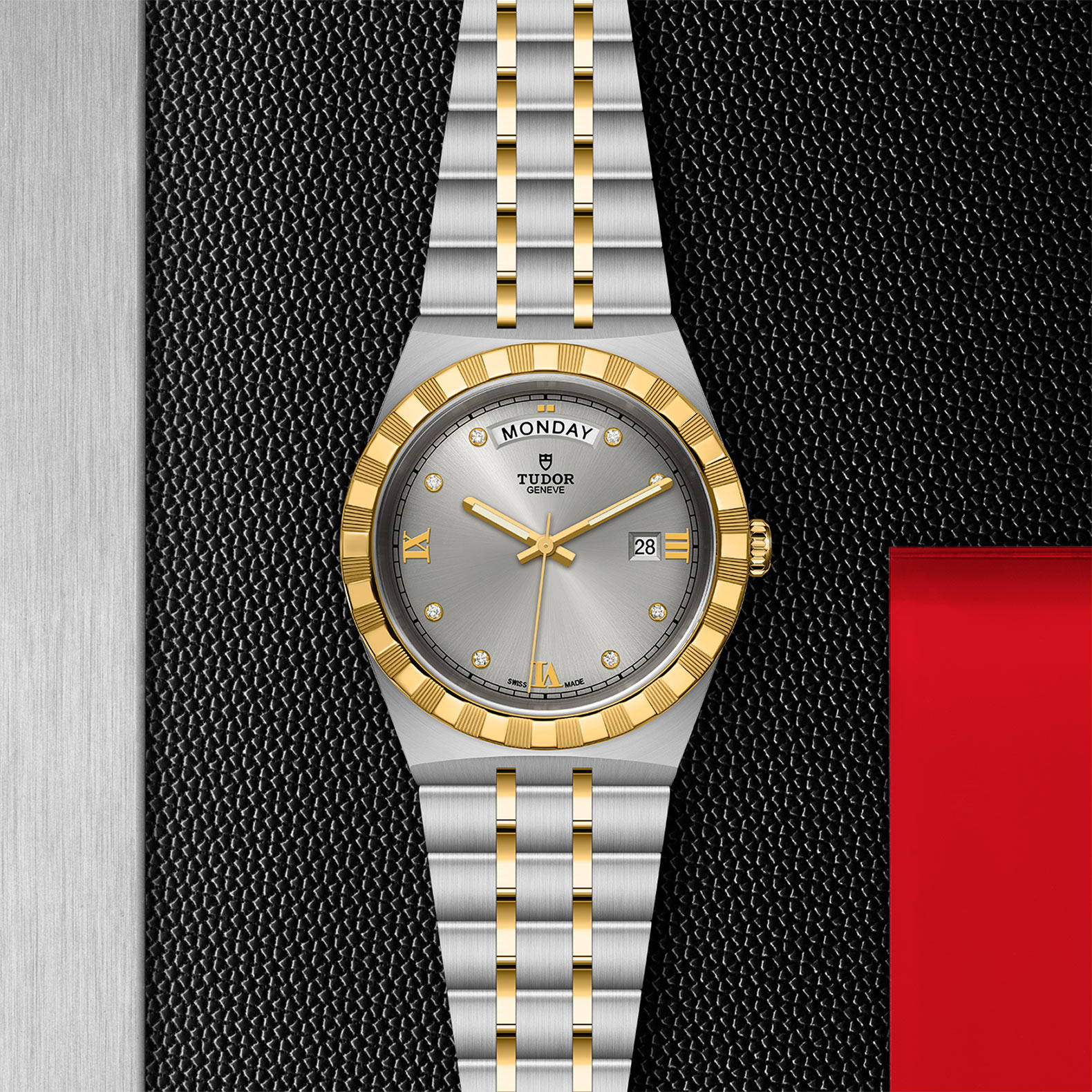 旋入式上链錶冠,饰以帝舵表标志;精钢覆有0.1毫米18K黄金薄层