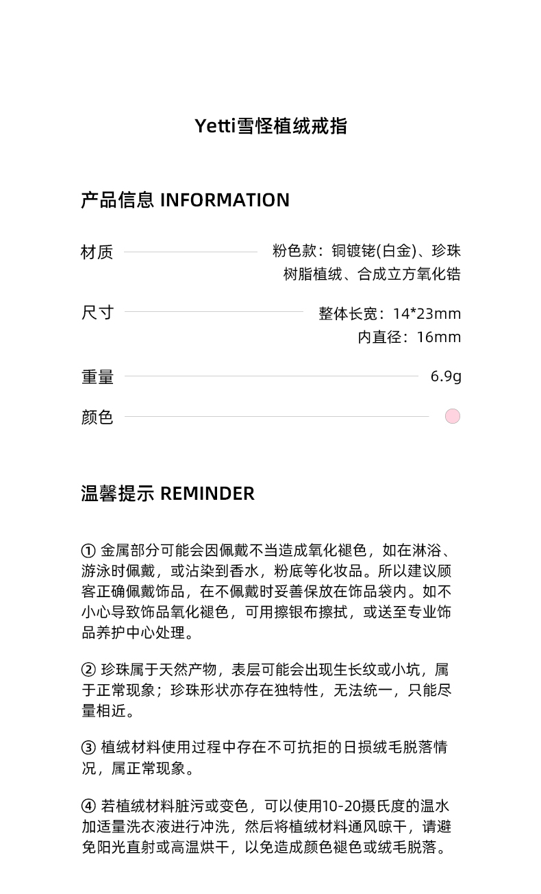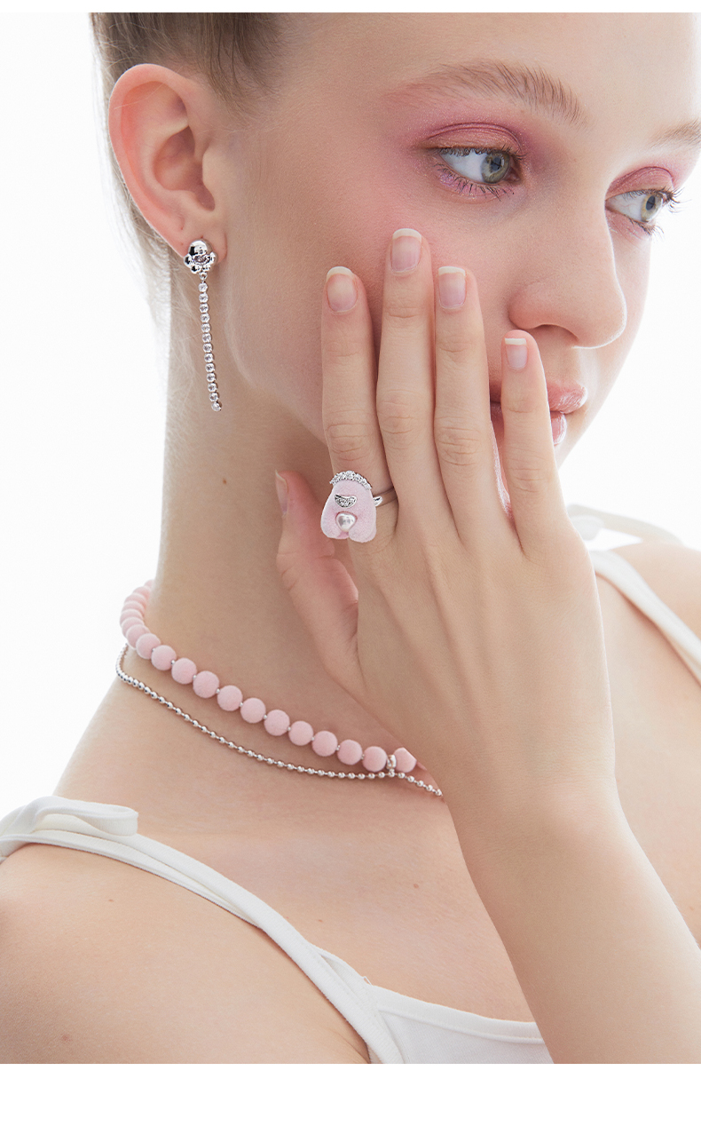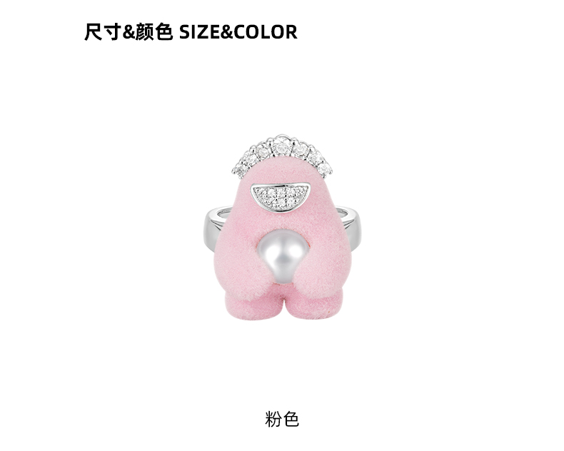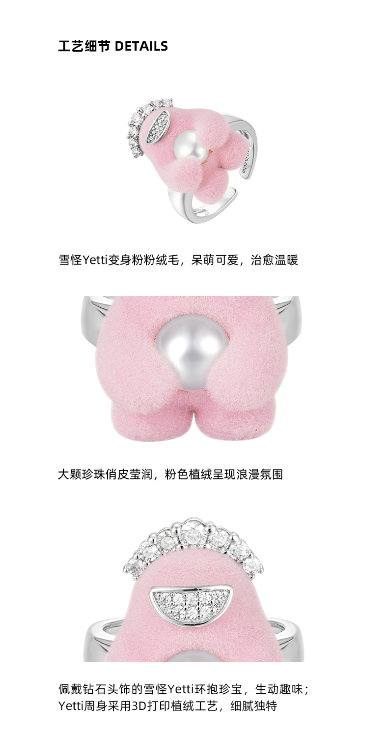 lost in echo2023秋冬新品设计师款Yetti雪怪珍珠植绒戒指可爱女