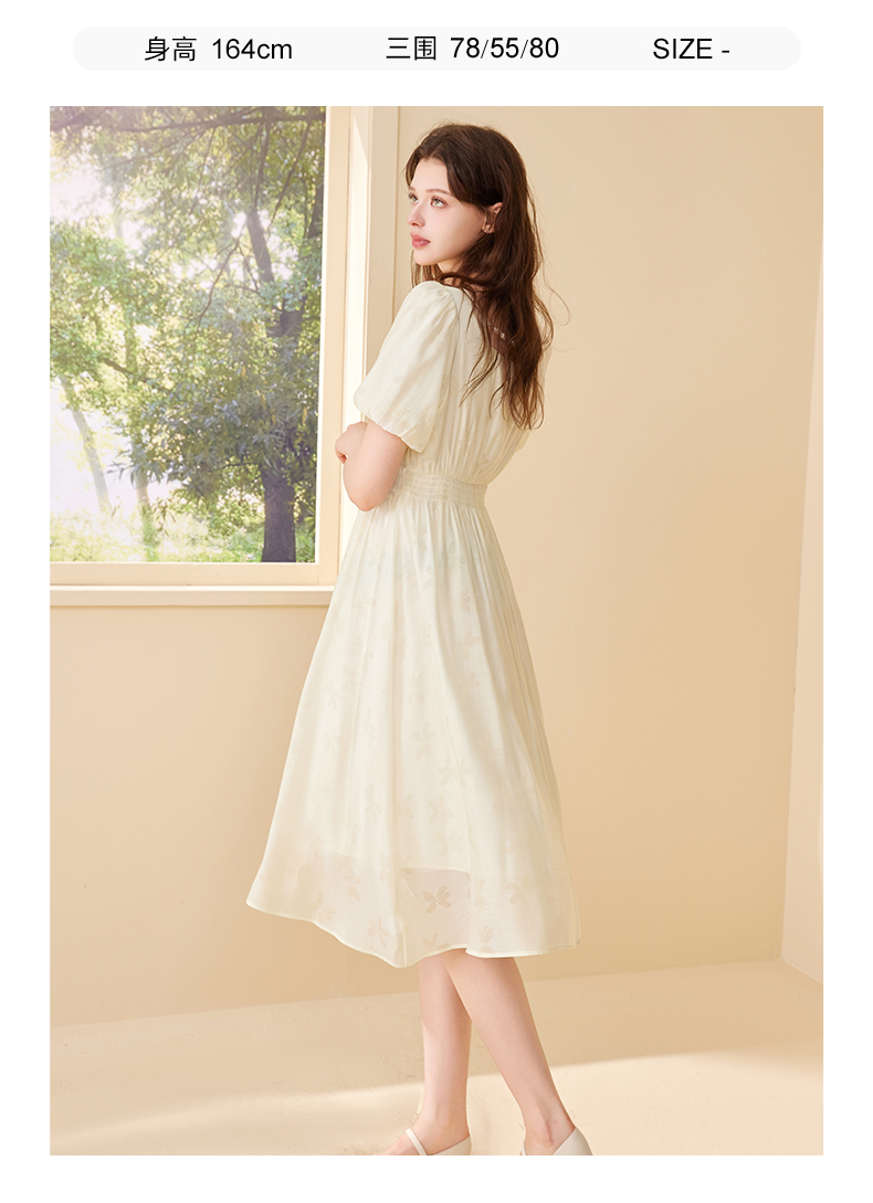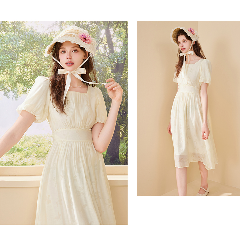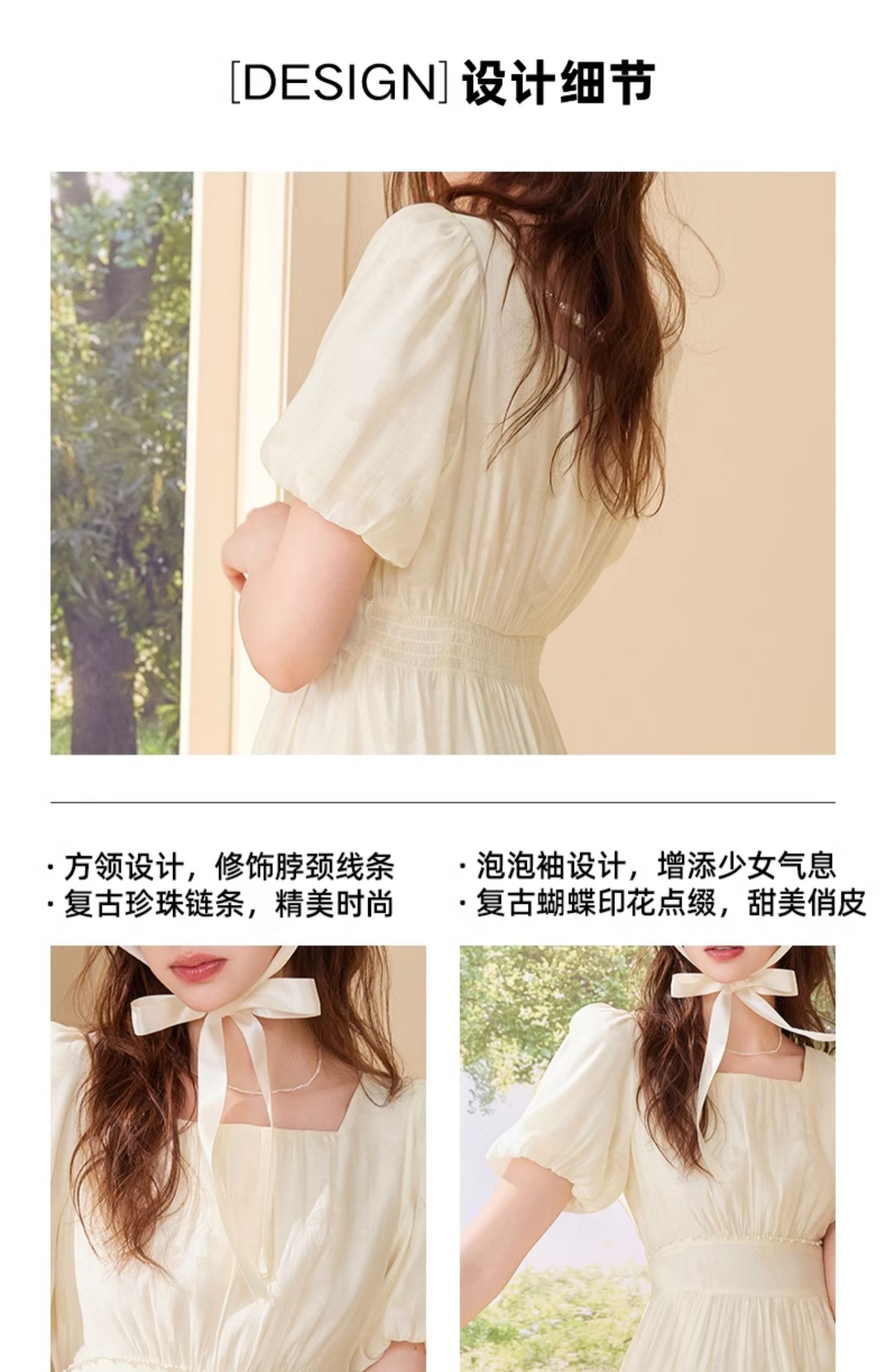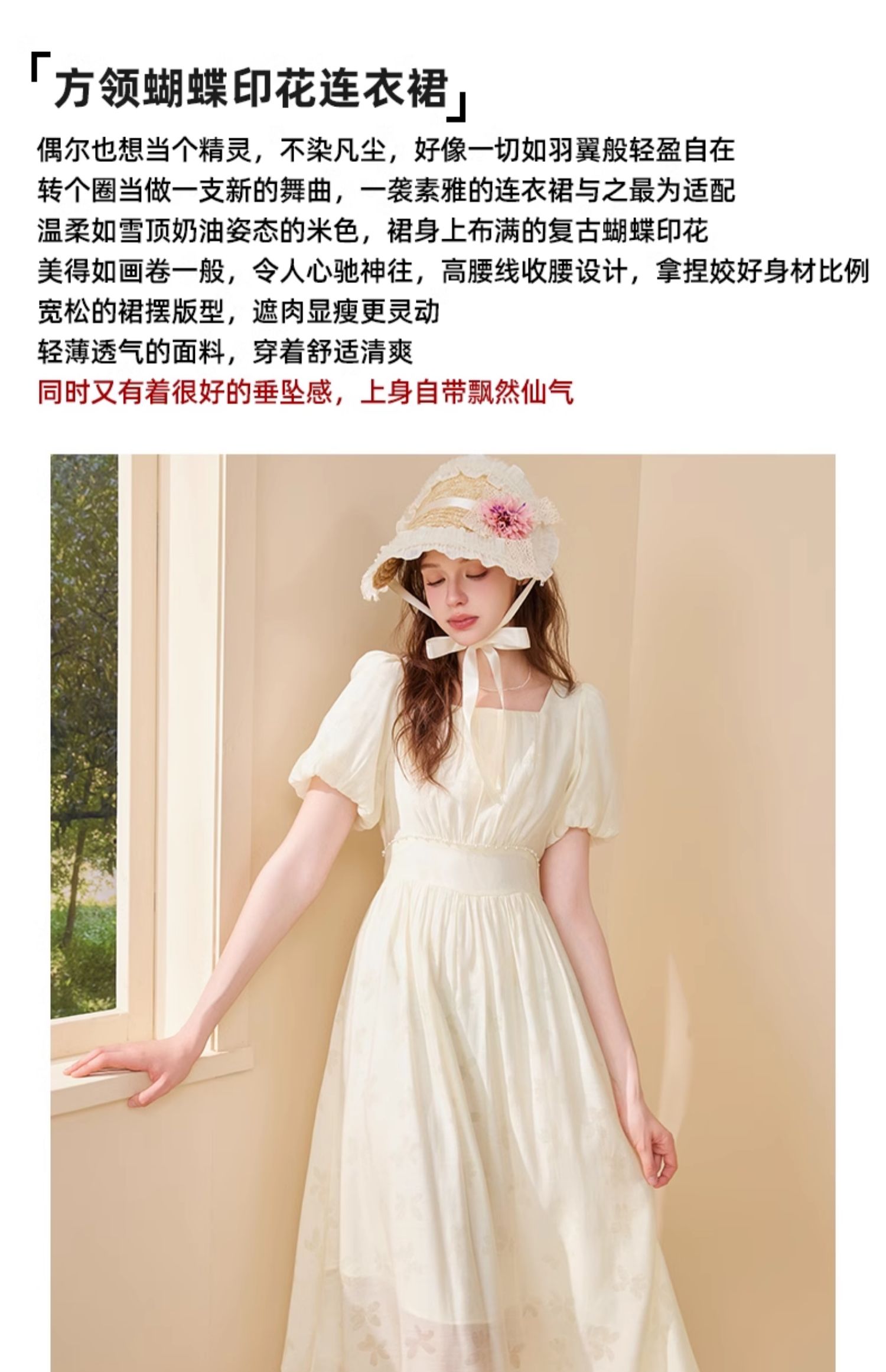 mc2方领蝴蝶印花连衣裙女装2024夏季新款收腰显瘦法式温柔风白色