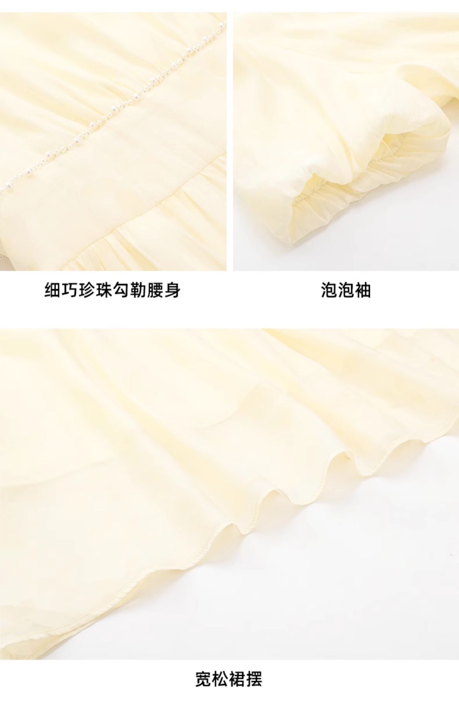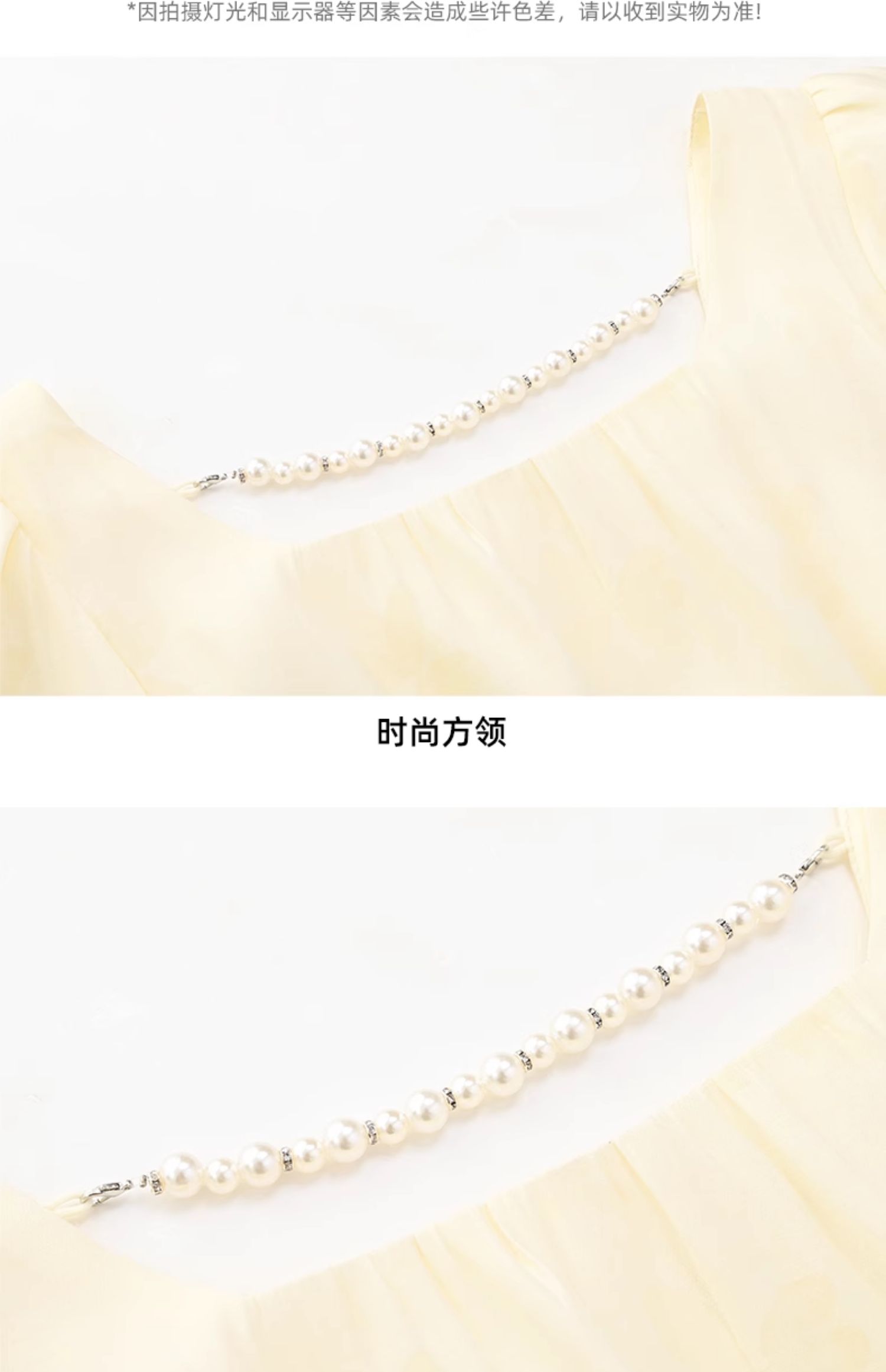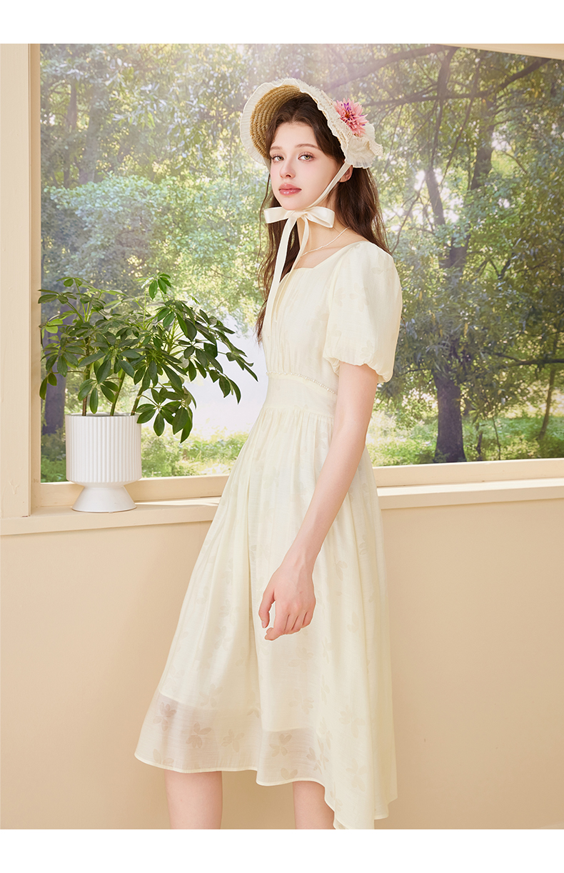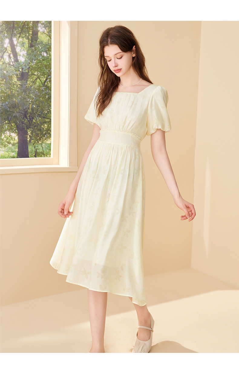 mc2方领蝴蝶印花连衣裙女装2024夏季新款收腰显瘦法式温柔风白色