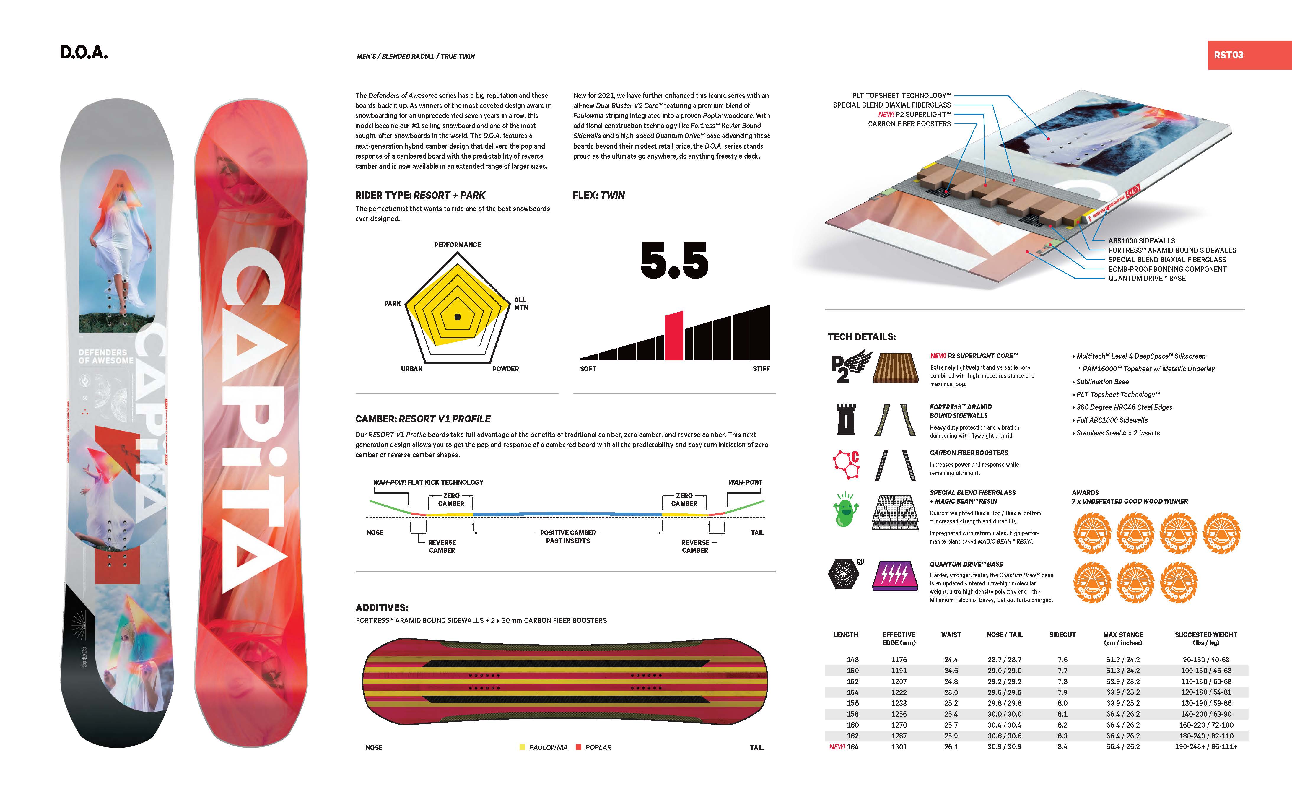 Capita 22-23 DEFENDERS OF AWESOME (D.O.A) 全能雪板 可以从新手用到进阶 连续7年单板评选获奖