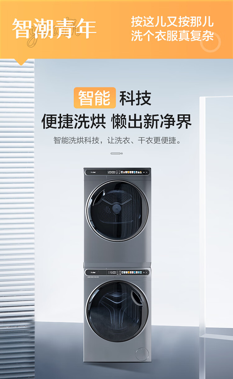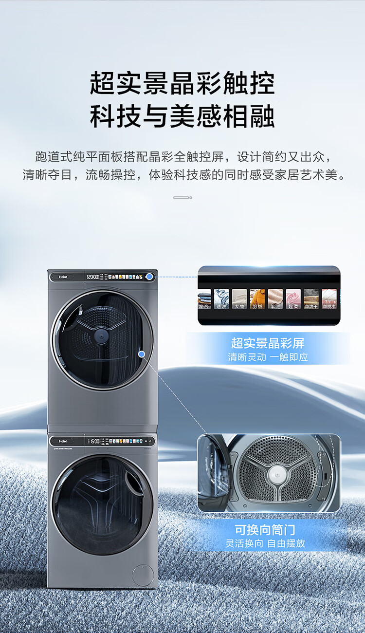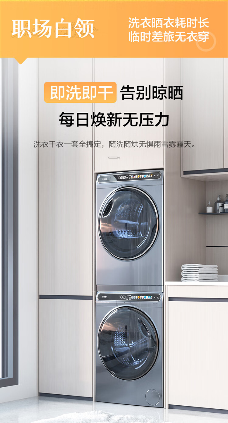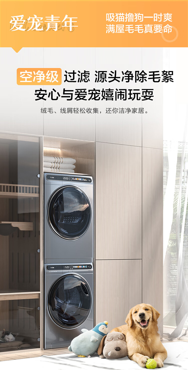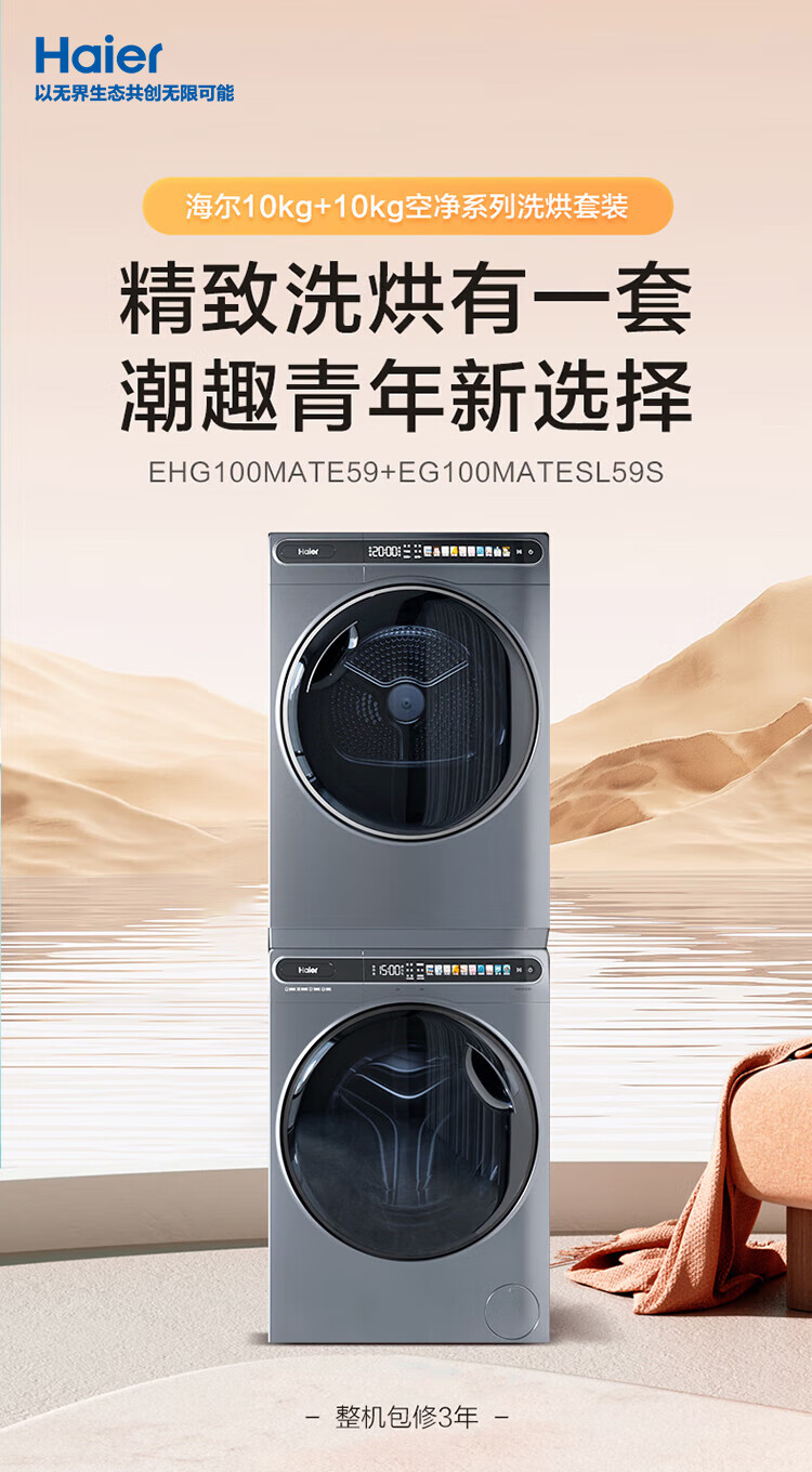 海尔(Haier)59S精华洗洗烘套装 10KG超薄滚筒洗衣机全自动+空净热泵烘干机家用组合 MATESL59S+59