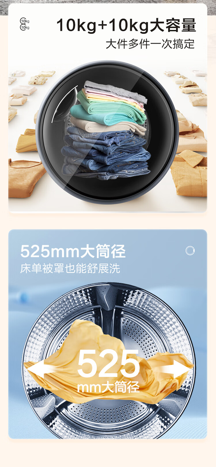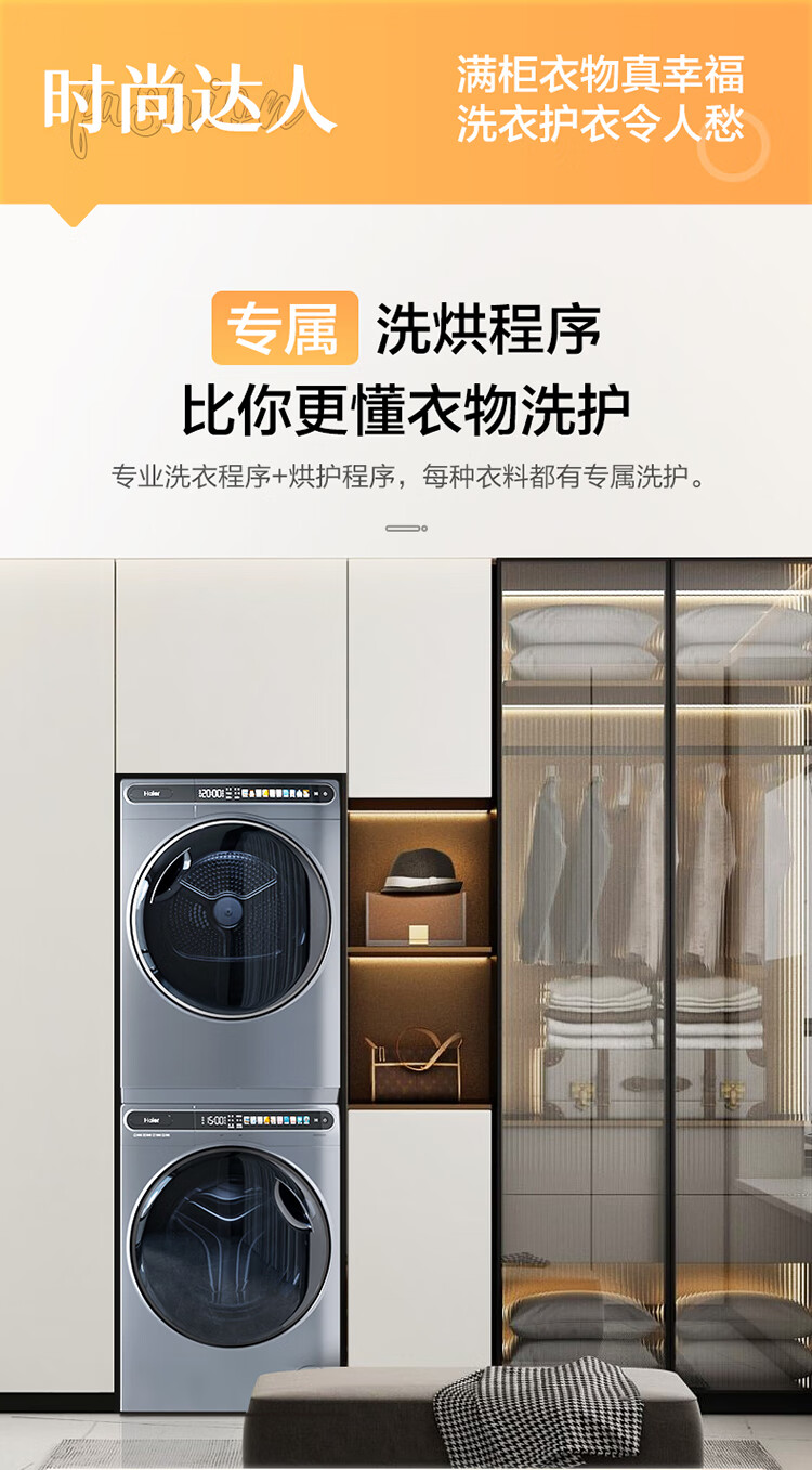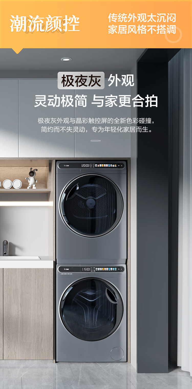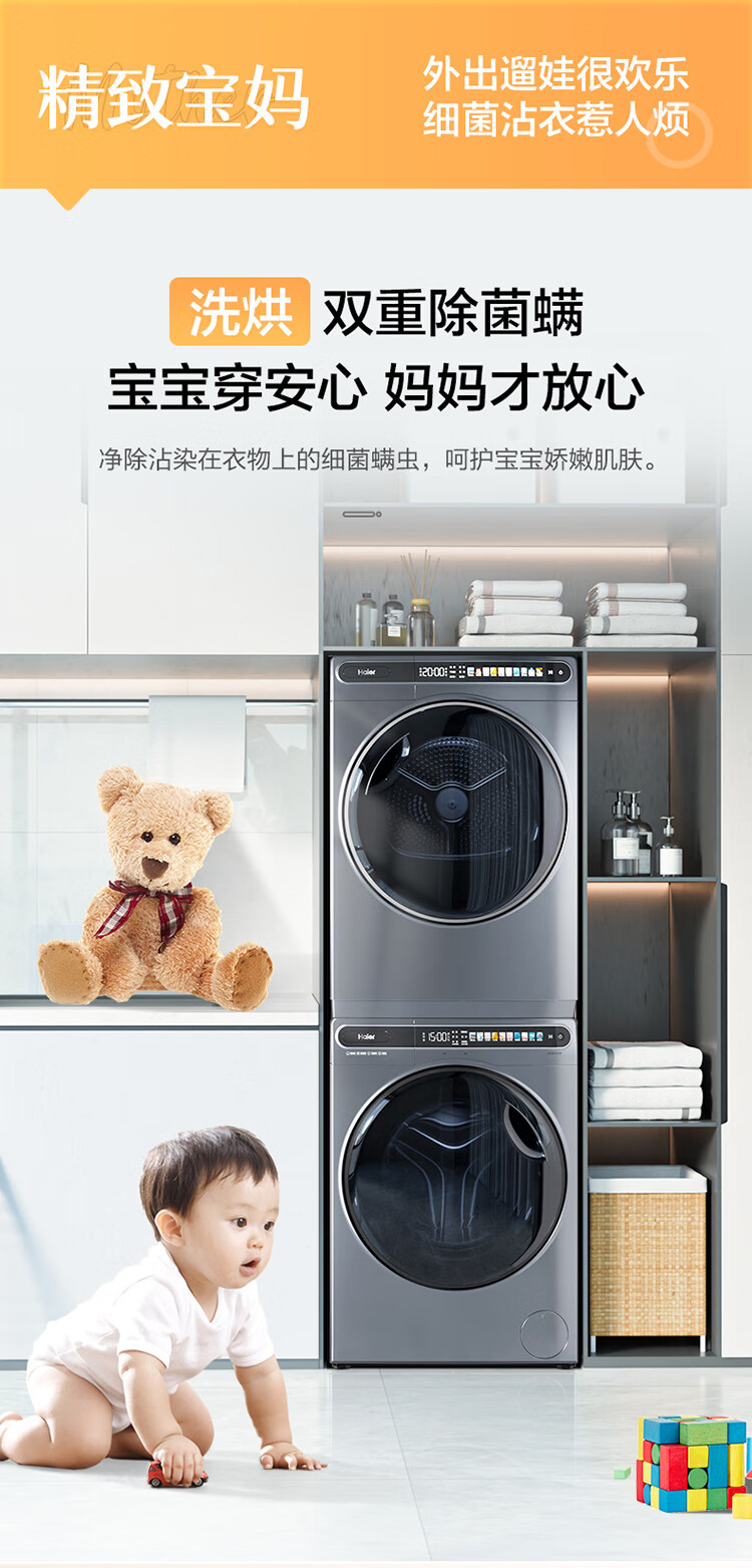 海尔(Haier)59S精华洗洗烘套装 10KG超薄滚筒洗衣机全自动+空净热泵烘干机家用组合 MATESL59S+59