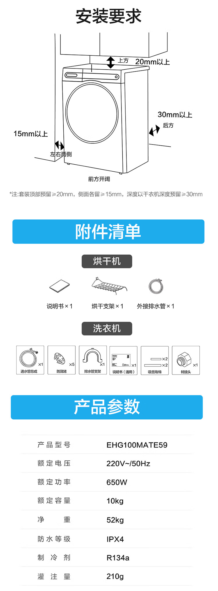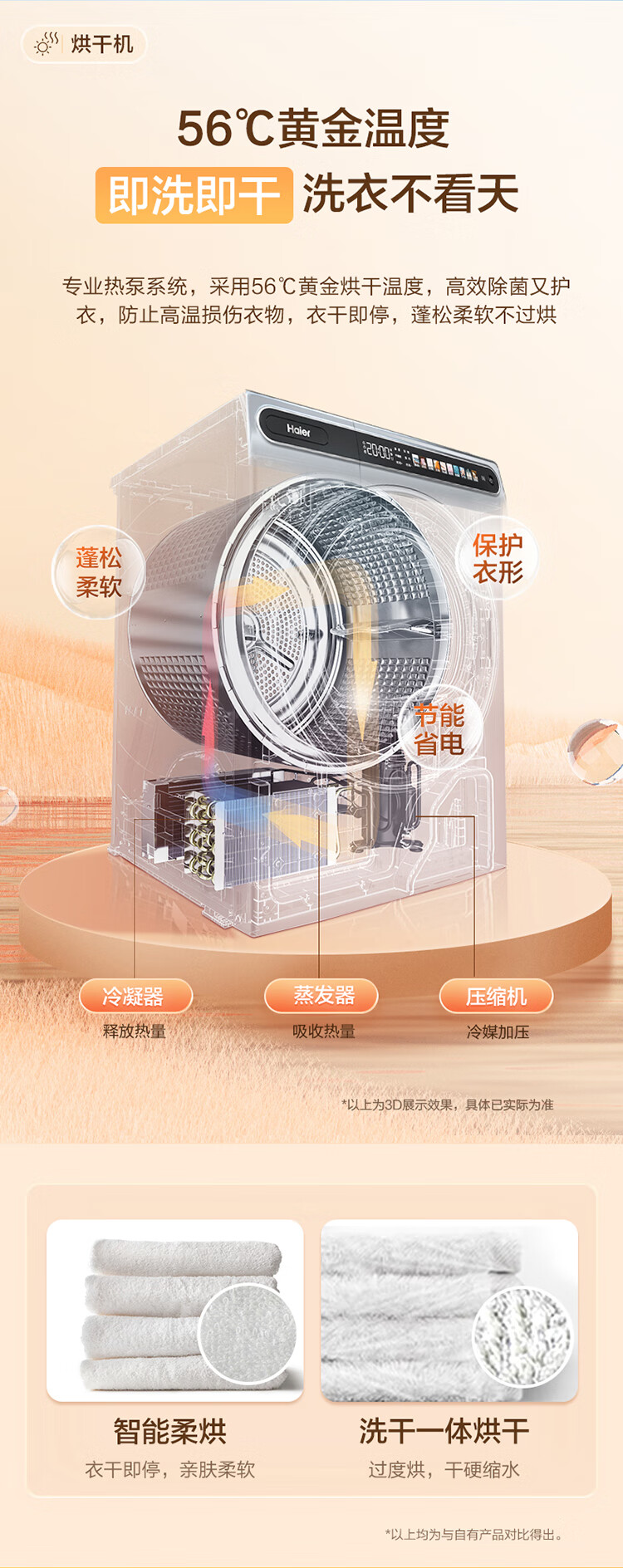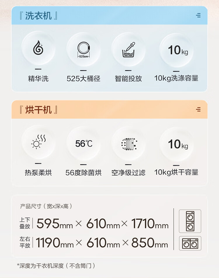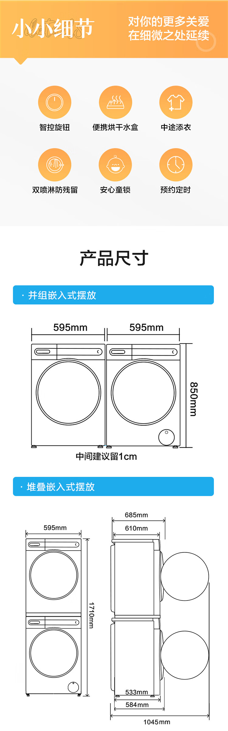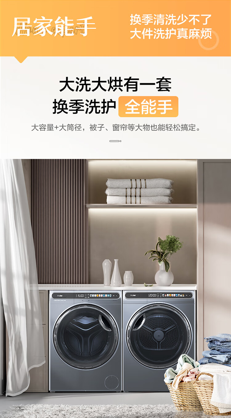 海尔(Haier)59S精华洗洗烘套装 10KG超薄滚筒洗衣机全自动+空净热泵烘干机家用组合 MATESL59S+59