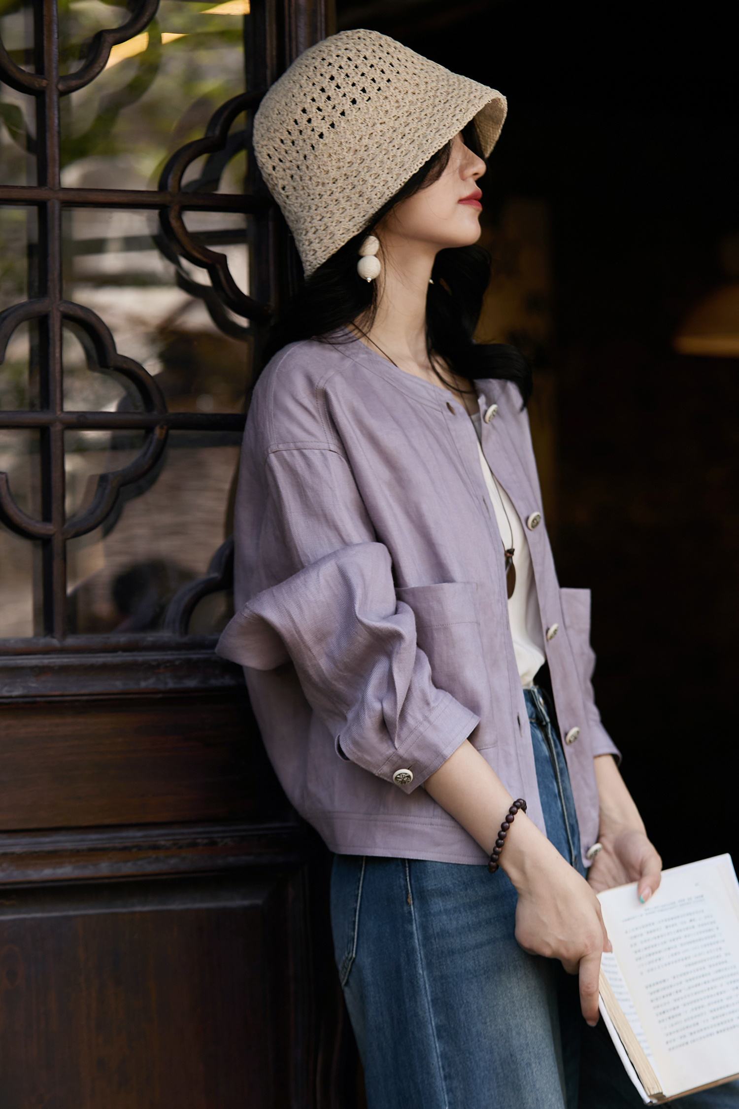 【下单3-7天发货】LONGNVFAIR天丝醋酸圆领短外套 总自带一种优雅的松弛感!自带“空调纤维”属性,轻盈透气,宽松落肩剪裁,遮肉显瘦
