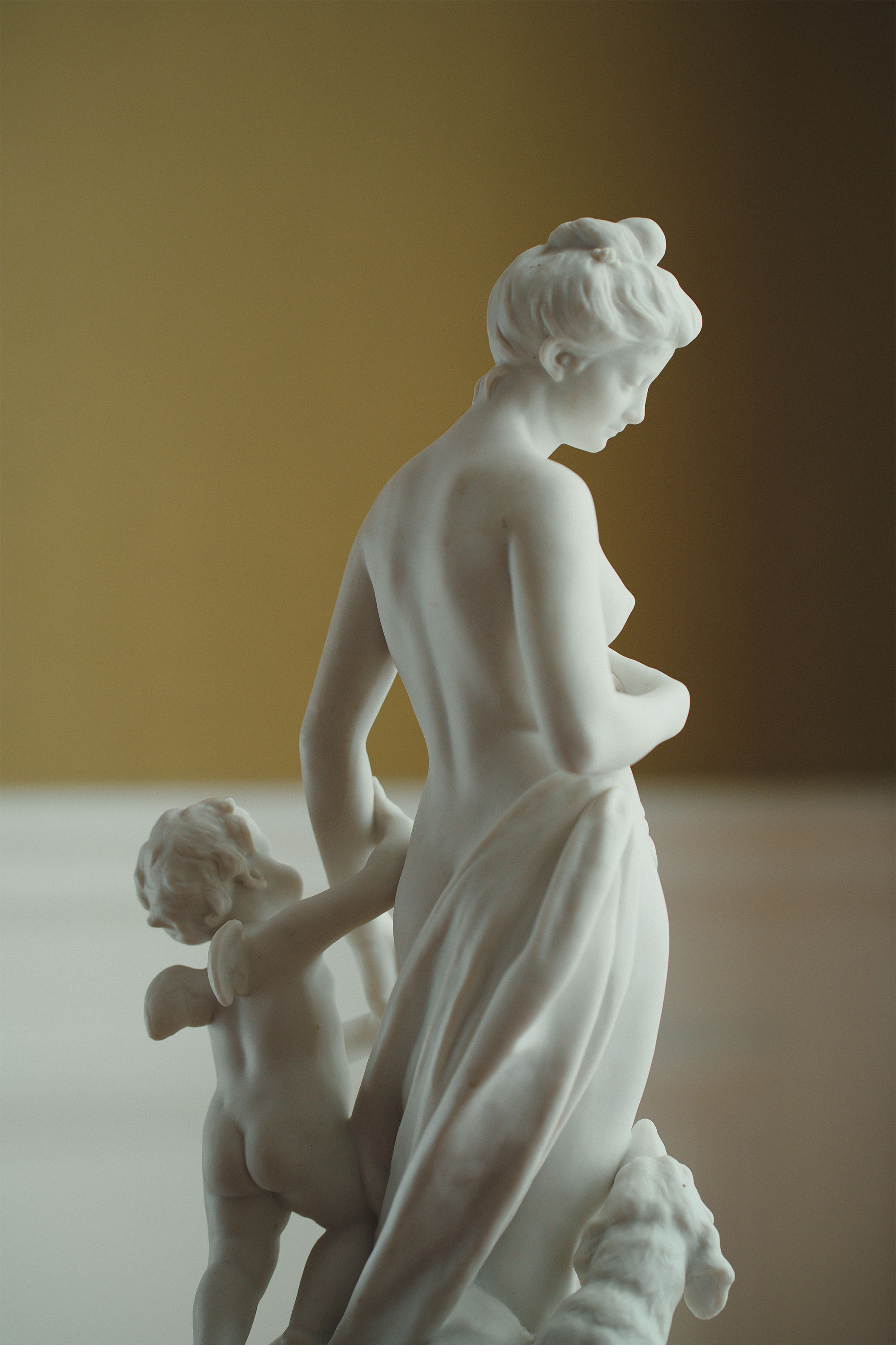 【已售】独角鹿西洋古董1906年代法国出品「La jeunesse entre l'amour et l'amitié 友达以上,恋人未满」主题素胎瓷雕塑