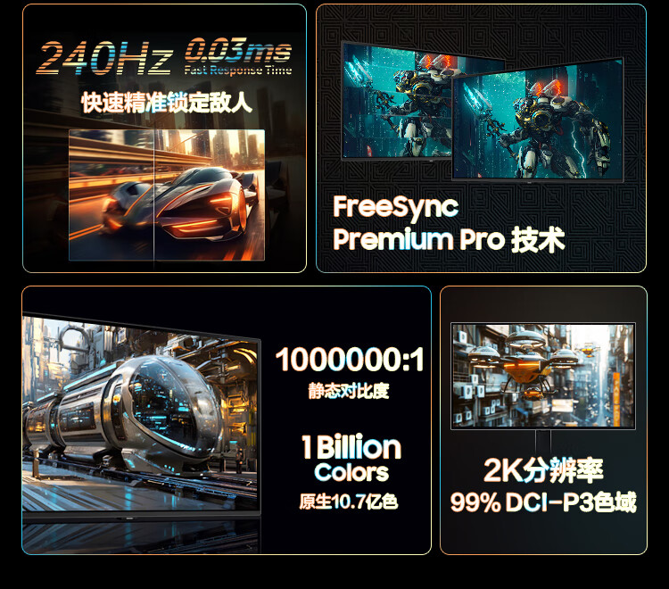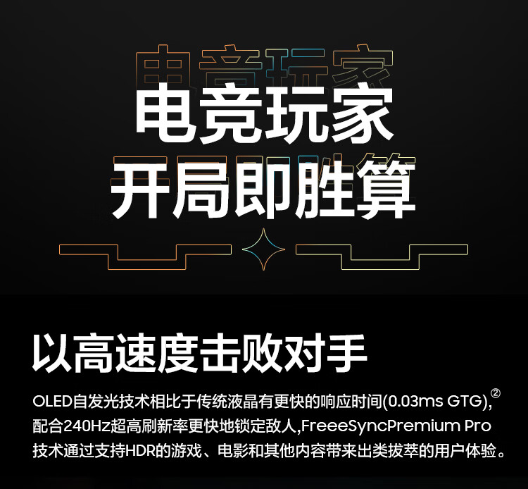 三星(SAMSUNG)27英寸 OLED 240/360Hz 0.03ms(GTG) 2K 防烧屏技术 防眩光 玄龙骑士