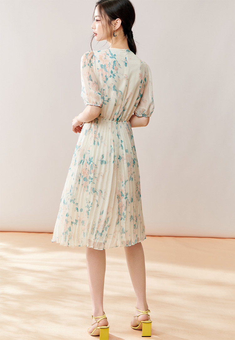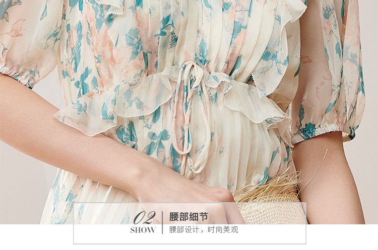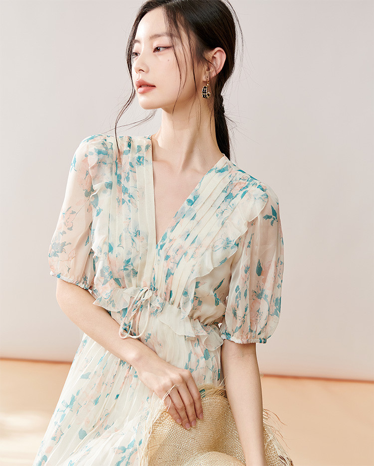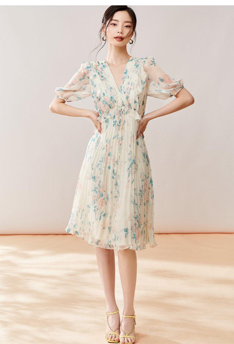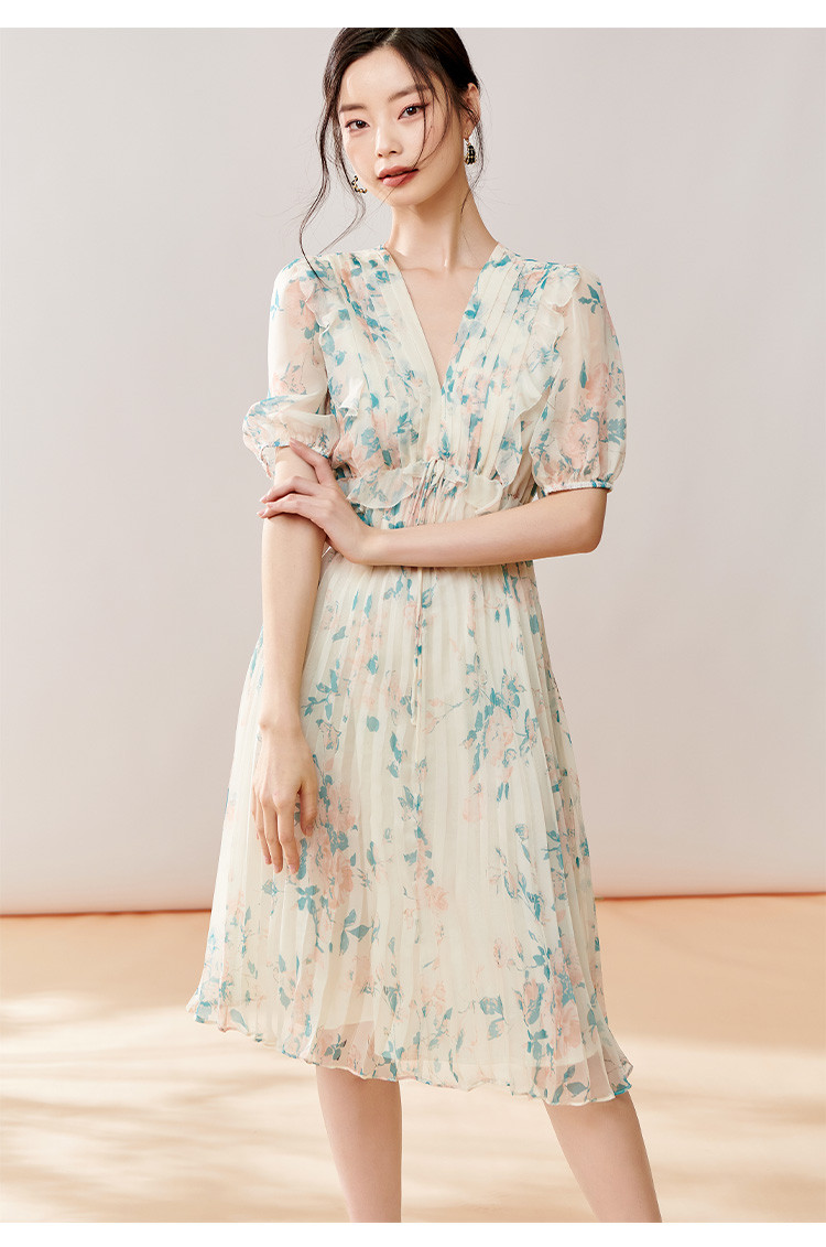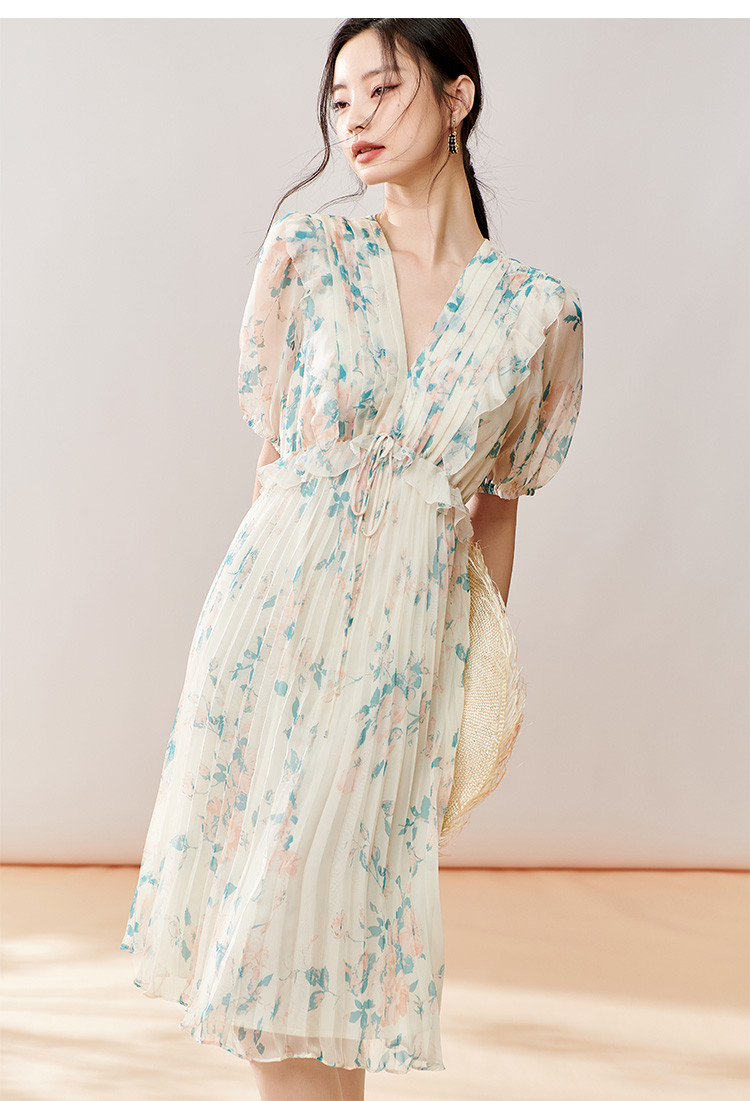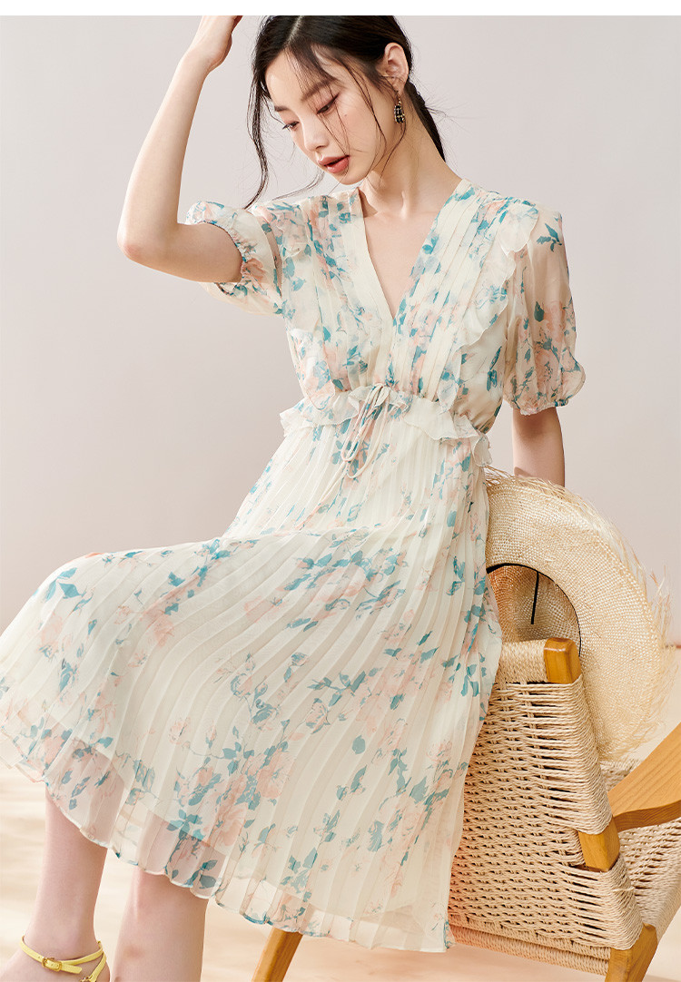 剩S/M 芳外【法式茶歇碎花裙】2025夏季新款V领百褶连衣裙