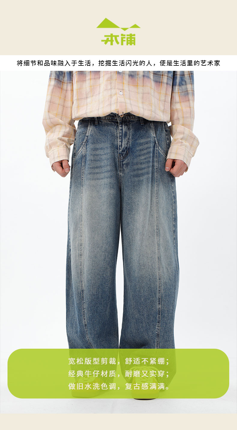 做旧水洗开门襟半松紧牛仔裤-纪念日百货门店同款169265645