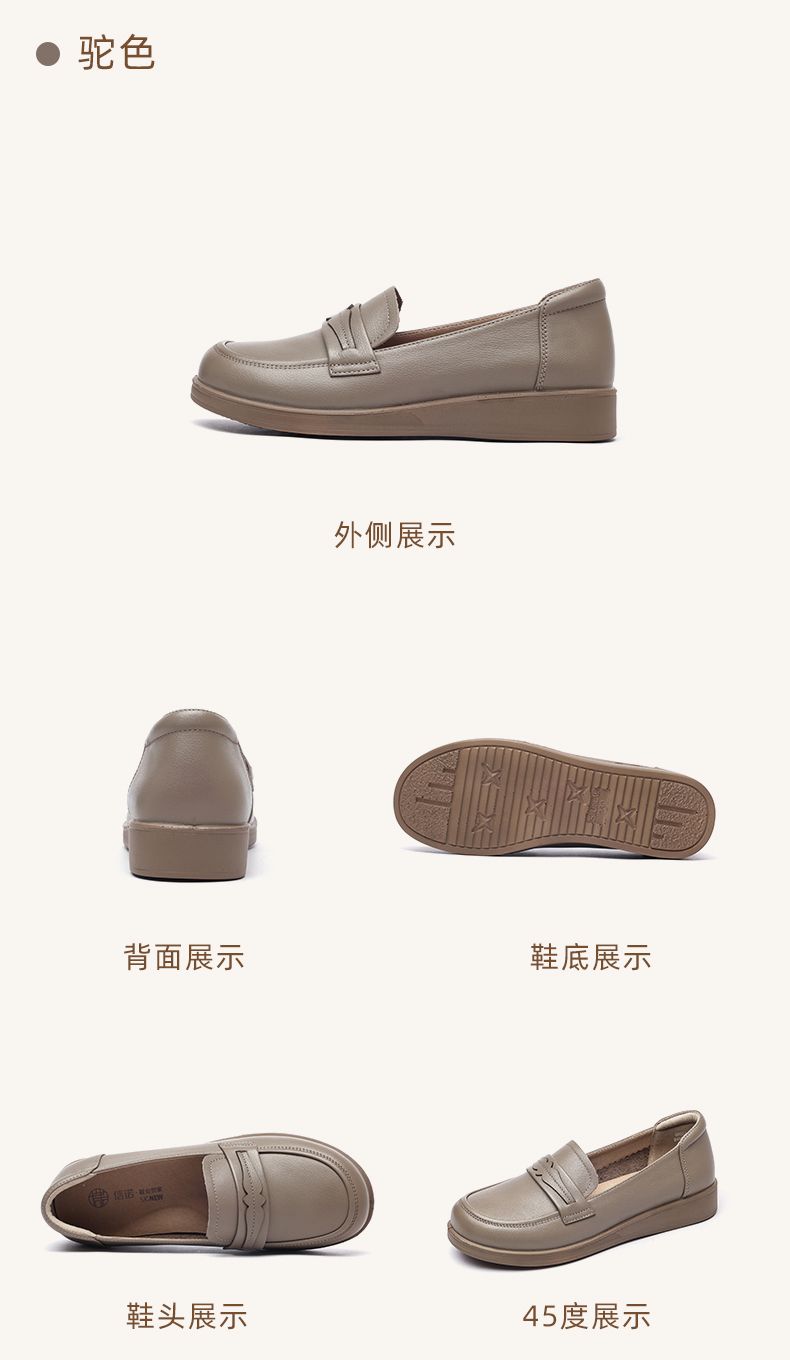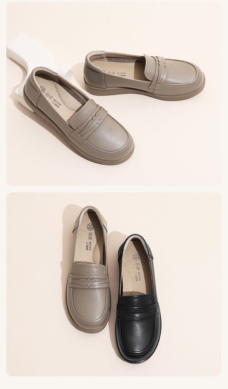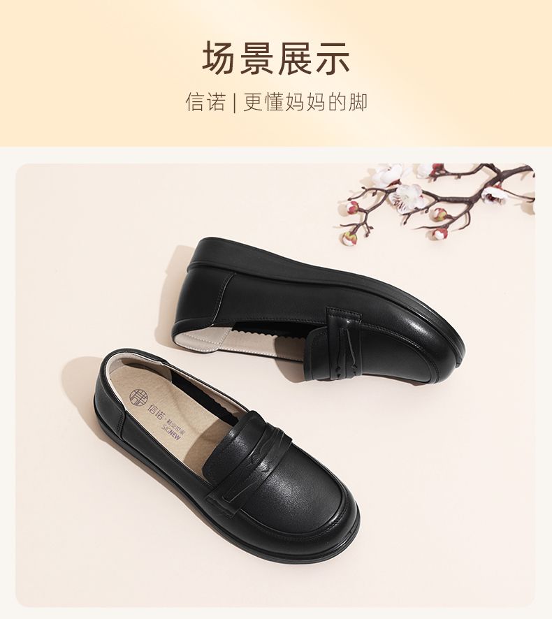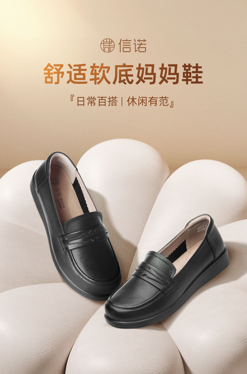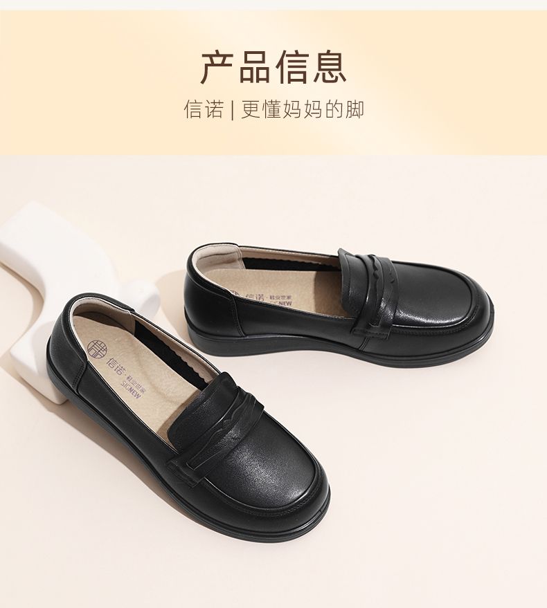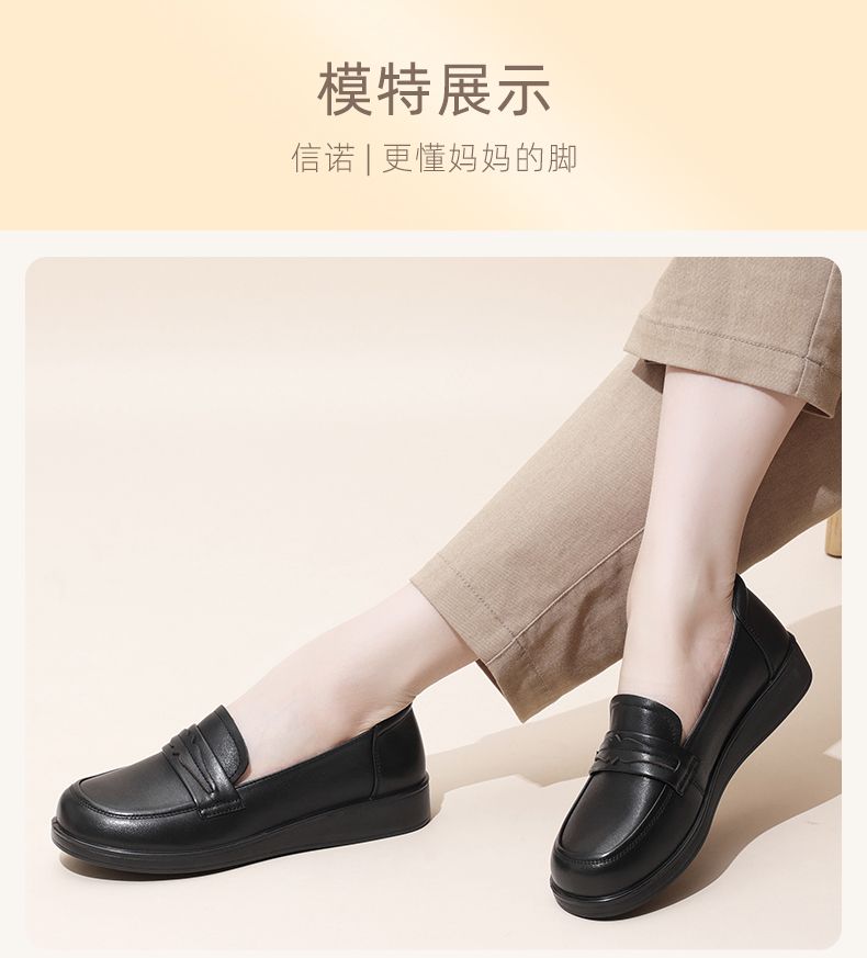 信诺真皮妈妈鞋2024新款秋季女鞋中老年鞋子平底单鞋软底宽脚皮鞋Q6801-19