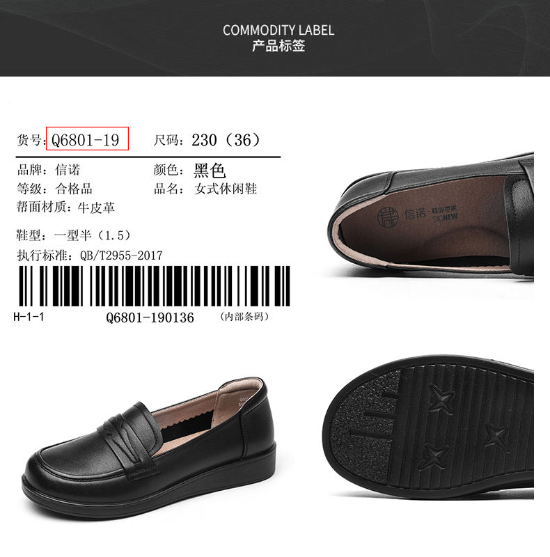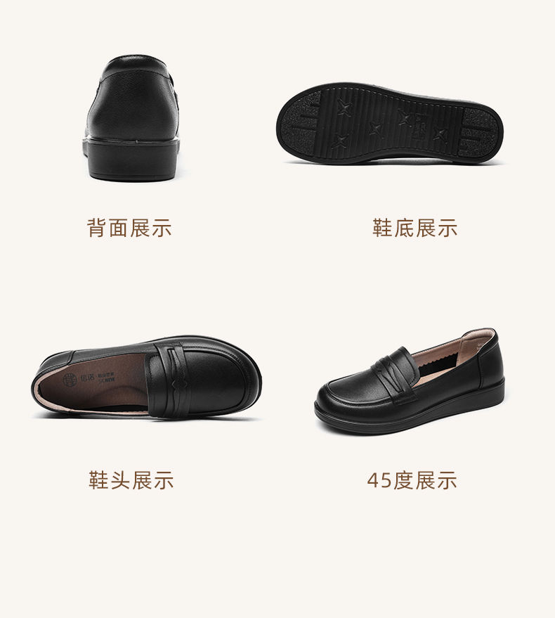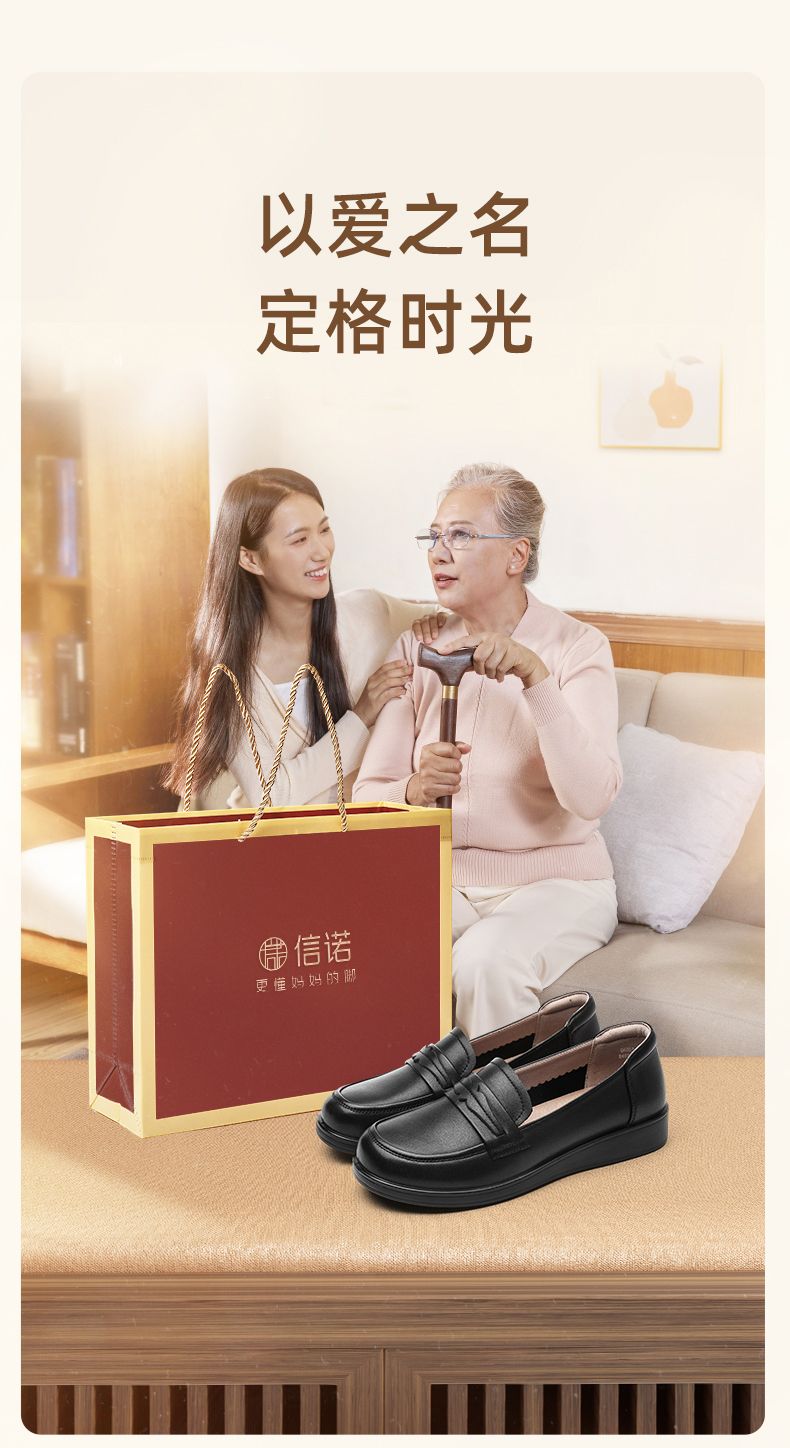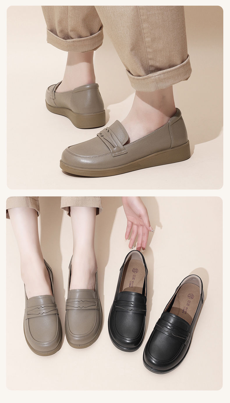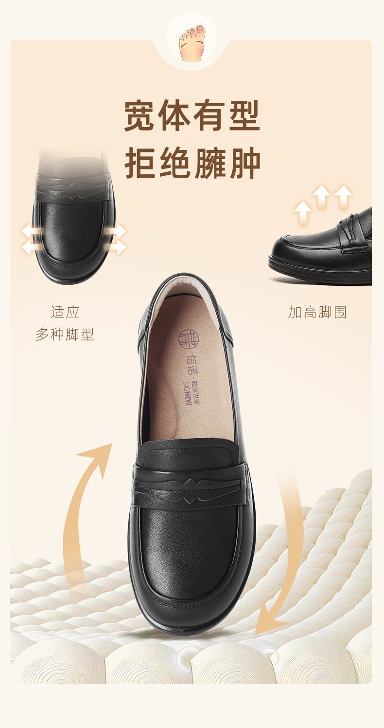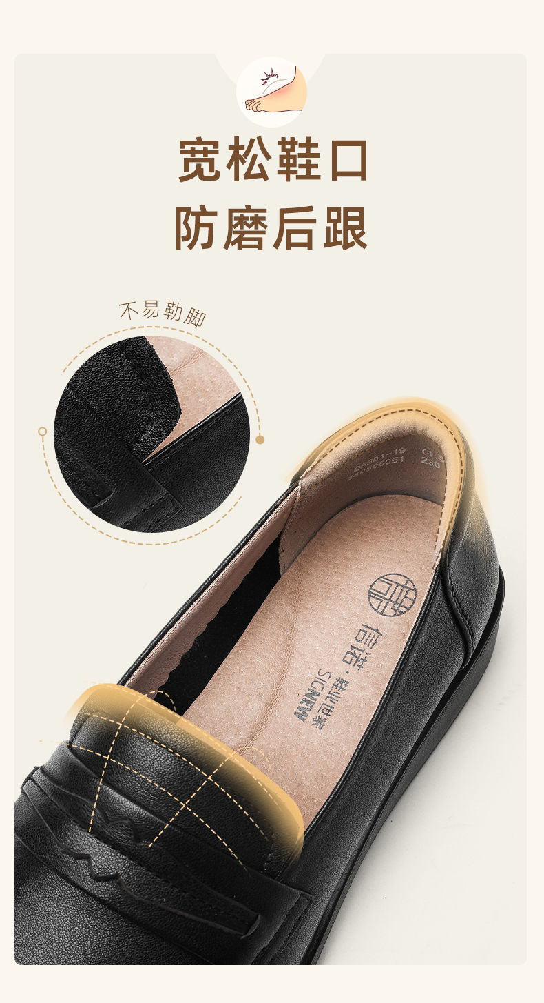 信诺真皮妈妈鞋2024新款秋季女鞋中老年鞋子平底单鞋软底宽脚皮鞋Q6801-19