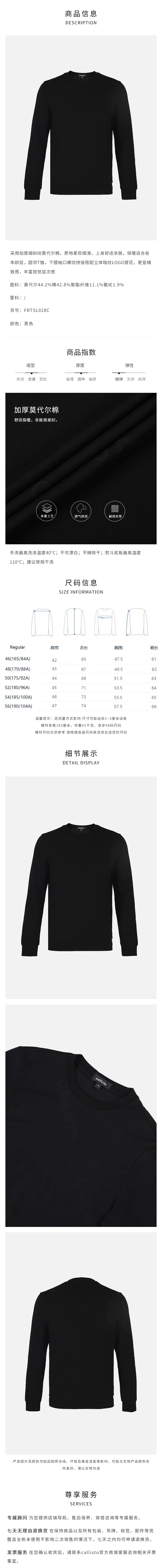 callisto黑色字母提花莫代尔棉圆领长袖T恤 FRTSL028C