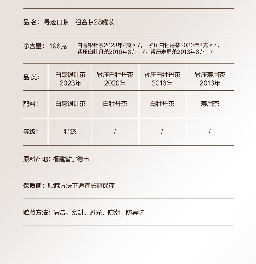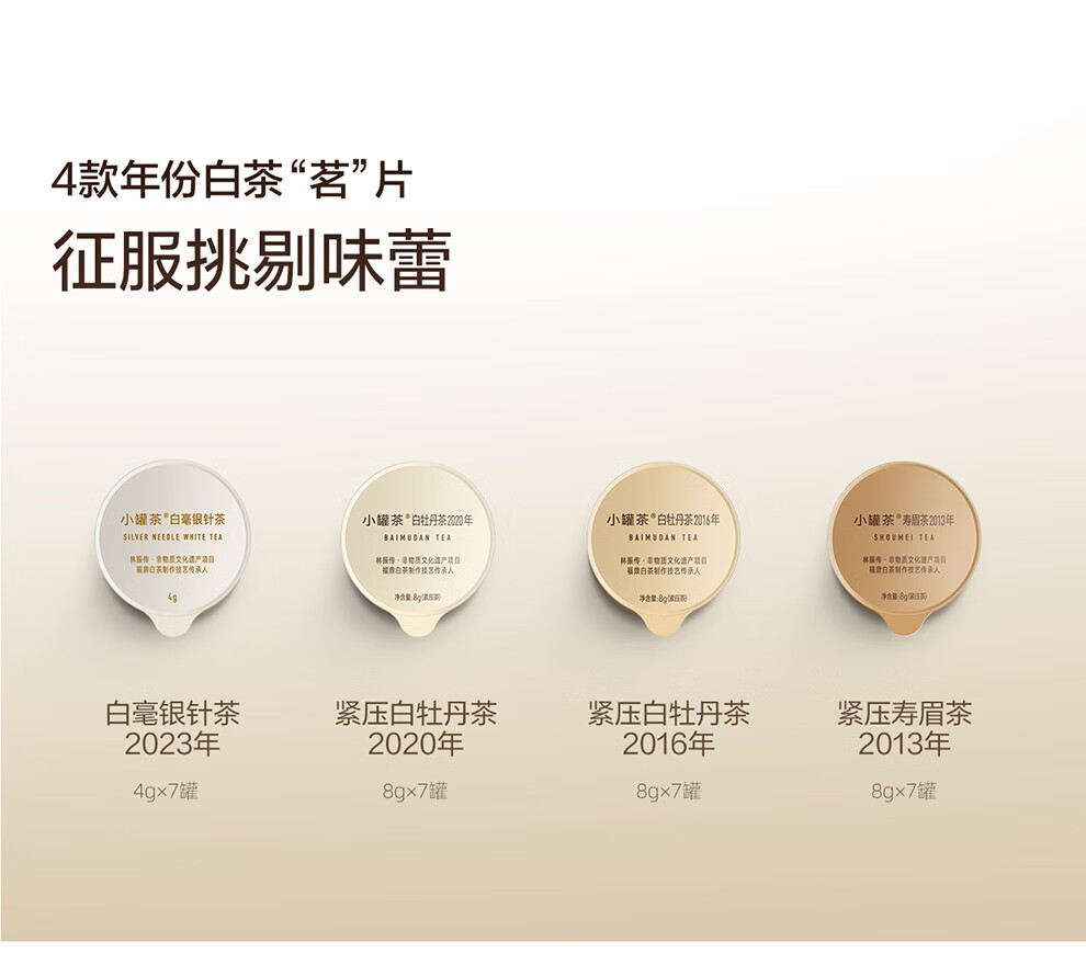 小罐茶寻迹白茶·组合茶特级白毫银针 紧压白牡丹寿眉茶196g 珍藏