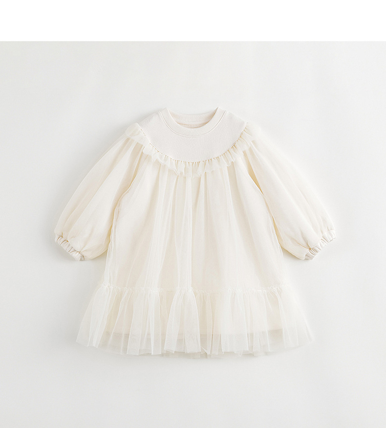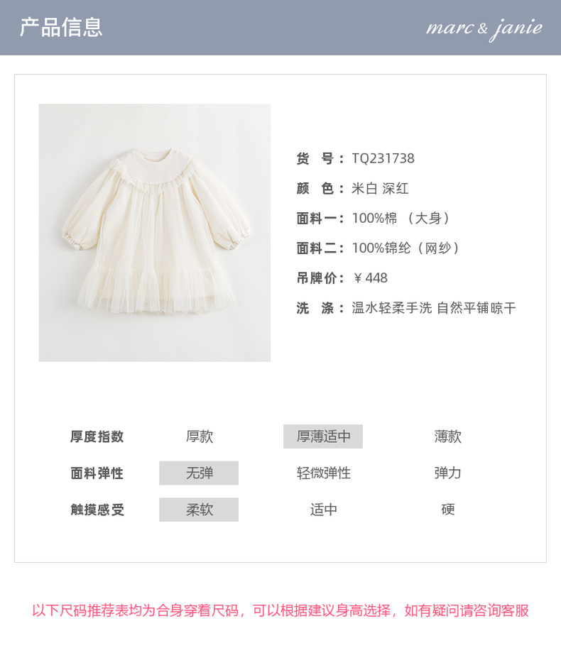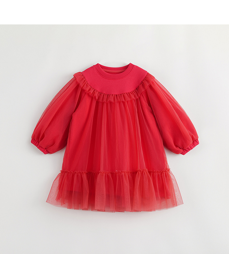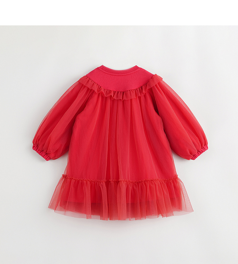 马克珍妮秋装新款 女童荷叶边拼接网纱连衣裙 儿童裙子231738