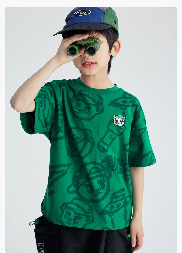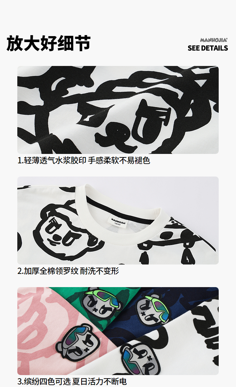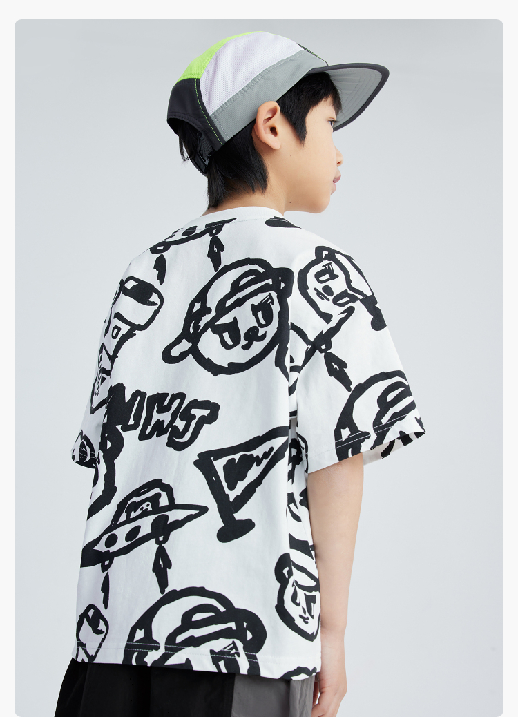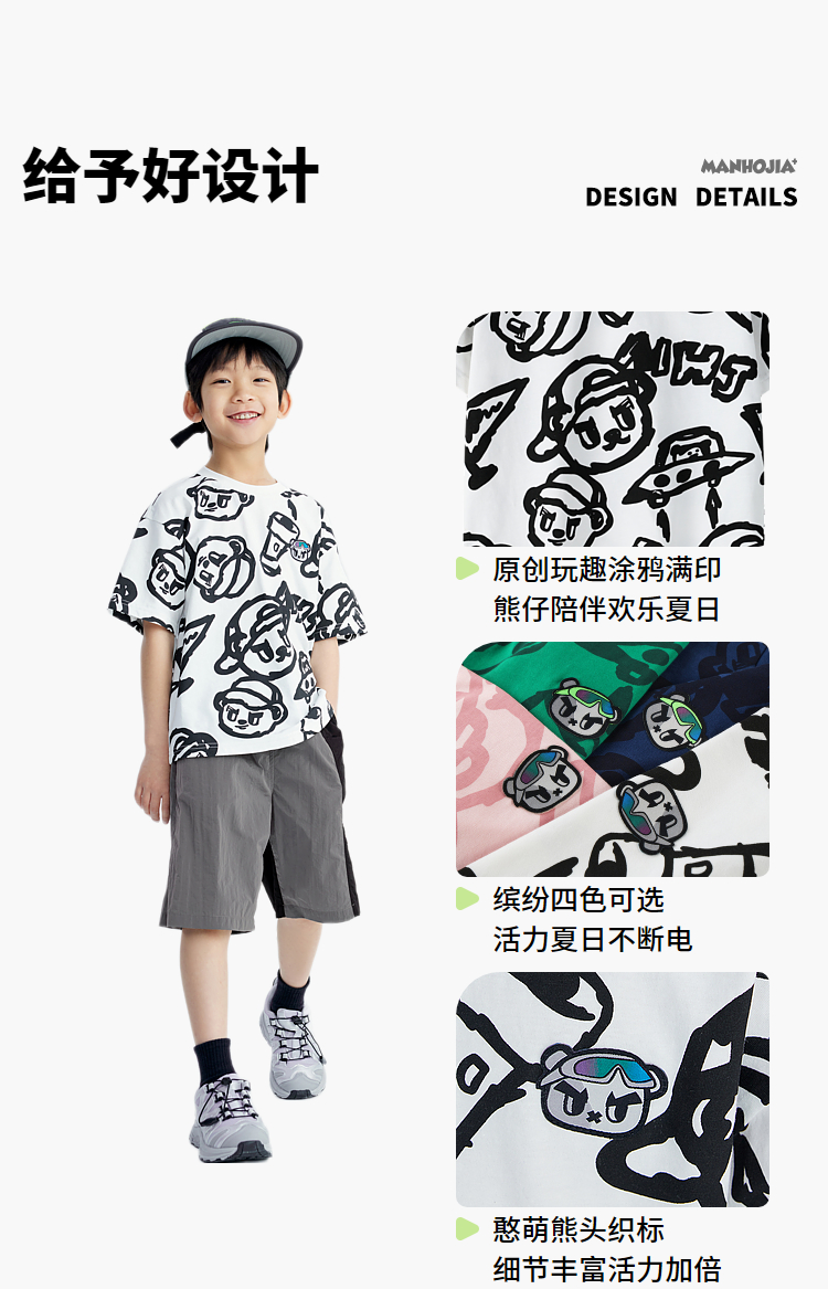漫画家潮童装HOHO熊原创趣味涂鸦夏季轻薄透气短袖T恤上衣男童