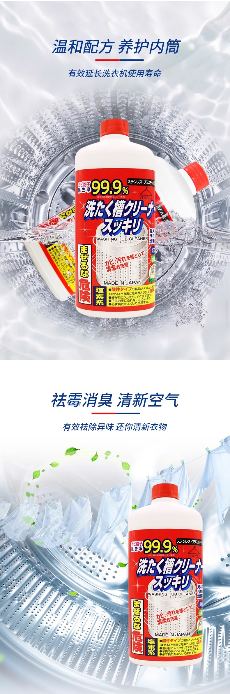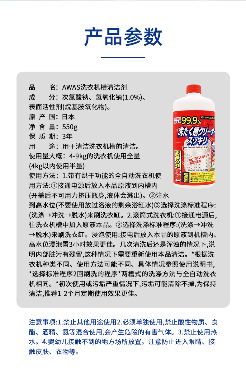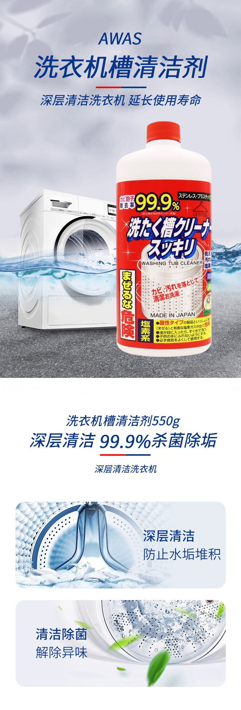 日本进口AWAS洗衣机槽清洁剂550g