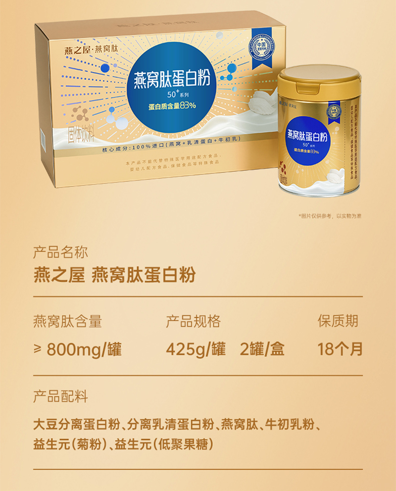 【官方直营◆新客福利】燕之屋燕窝肽蛋白粉425g*2桶中老年蛋白粉 官方正品 送礼推荐tg