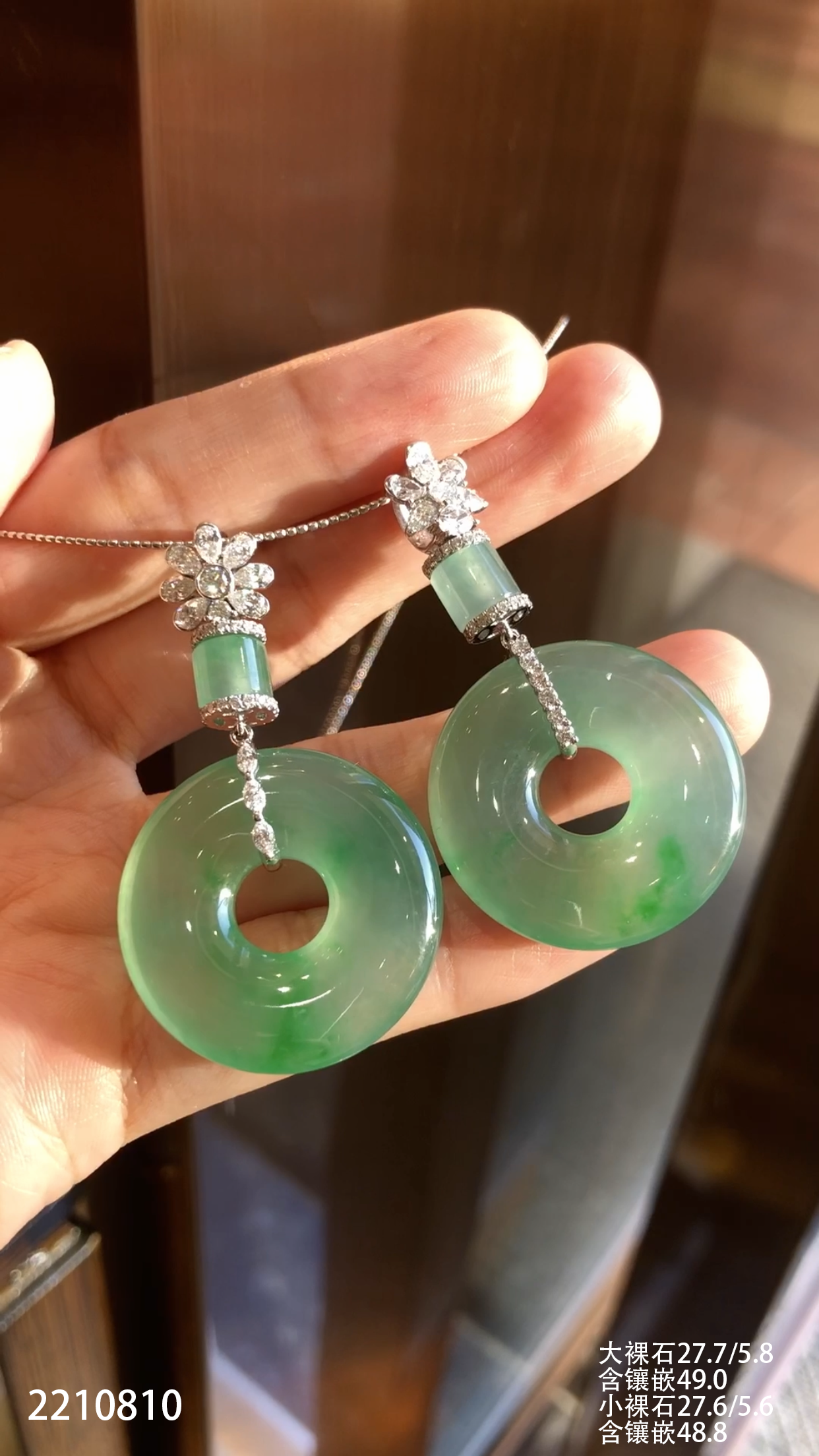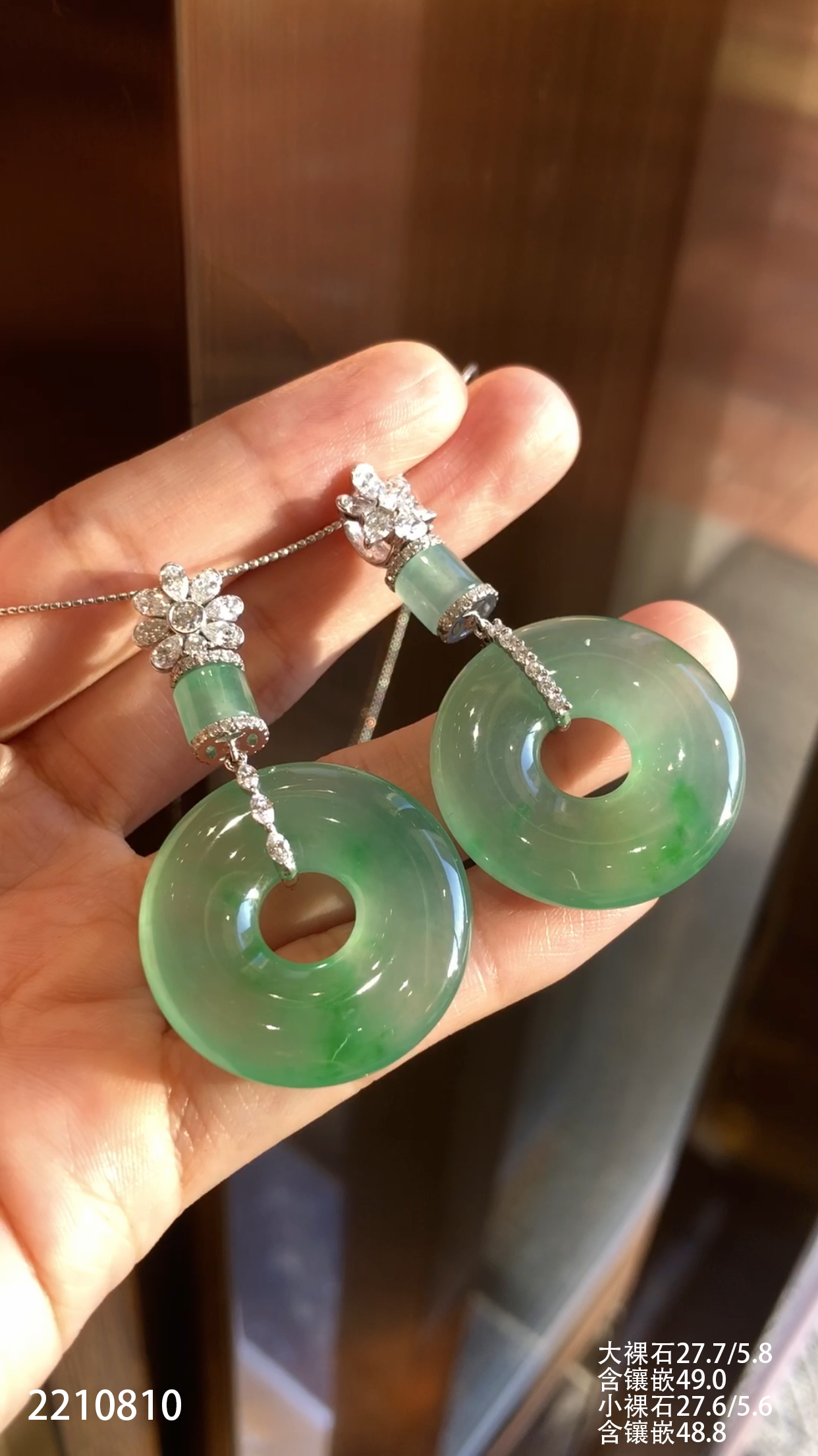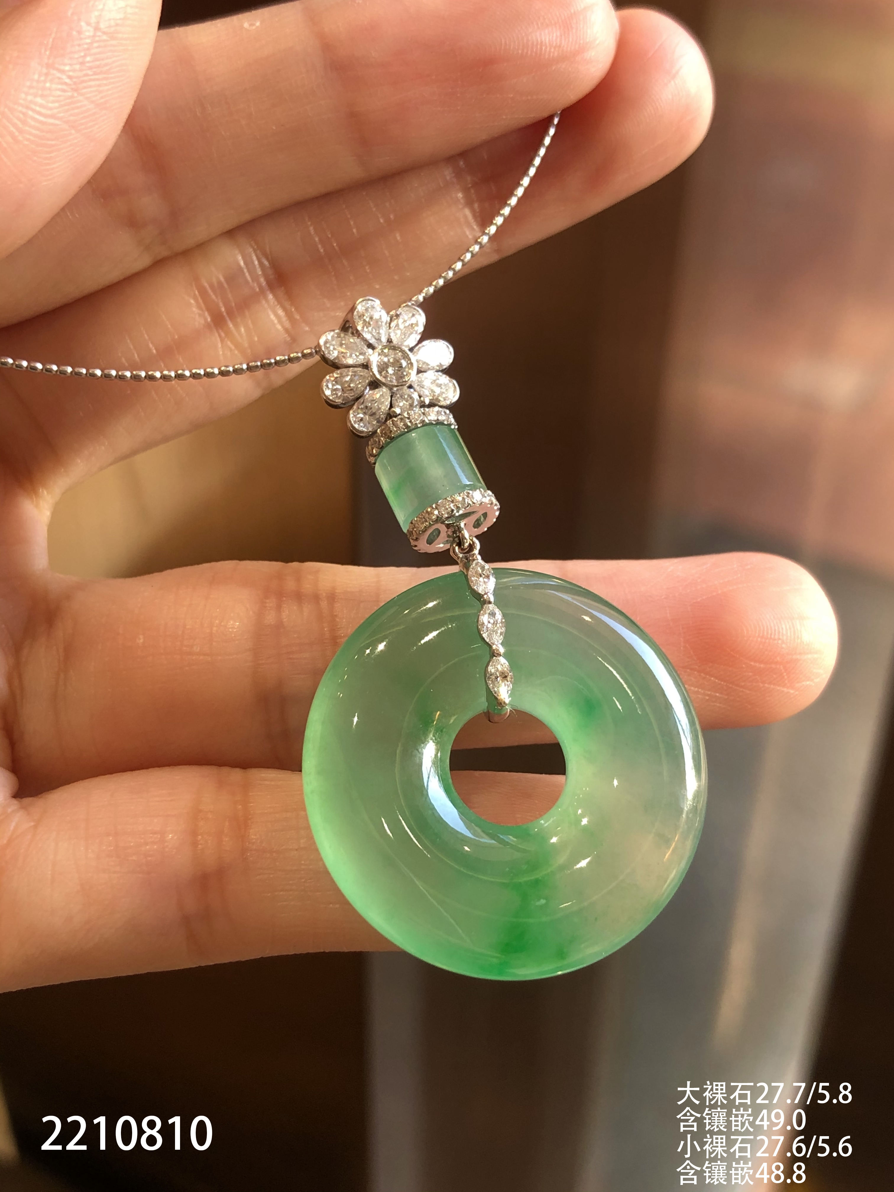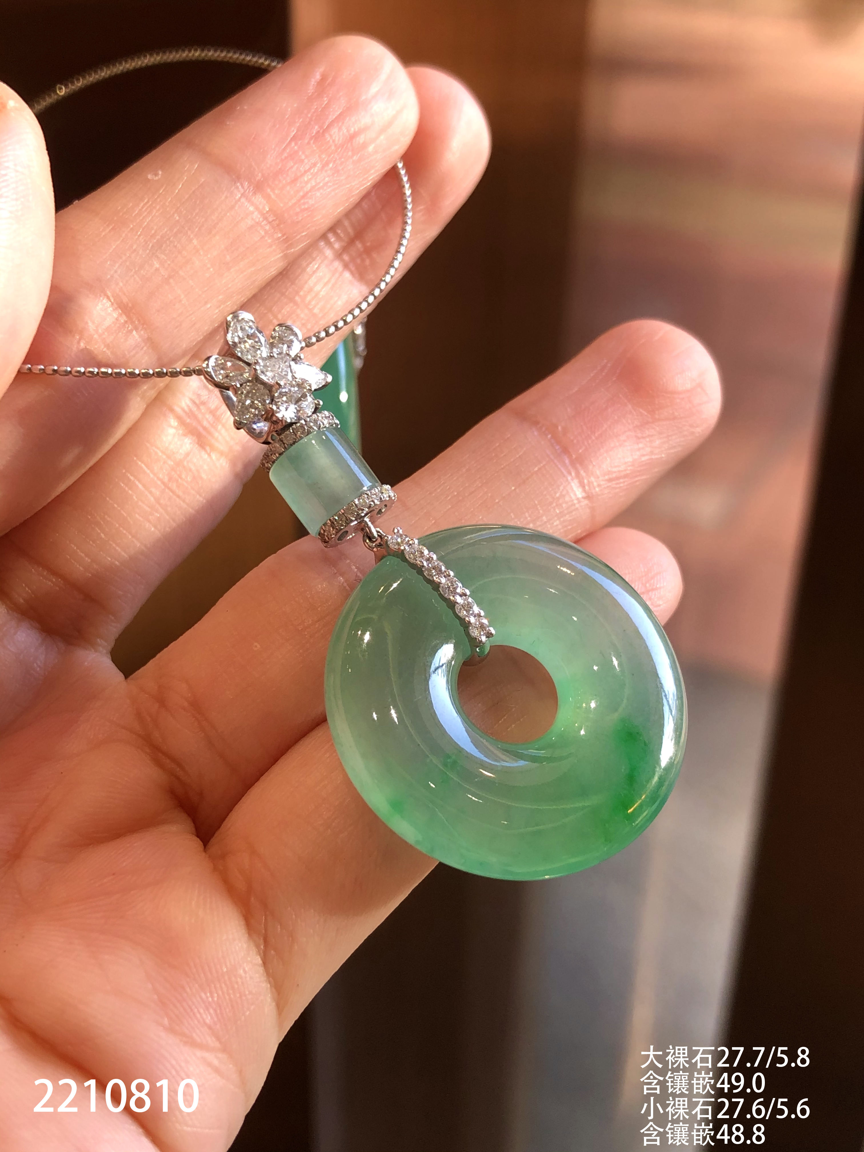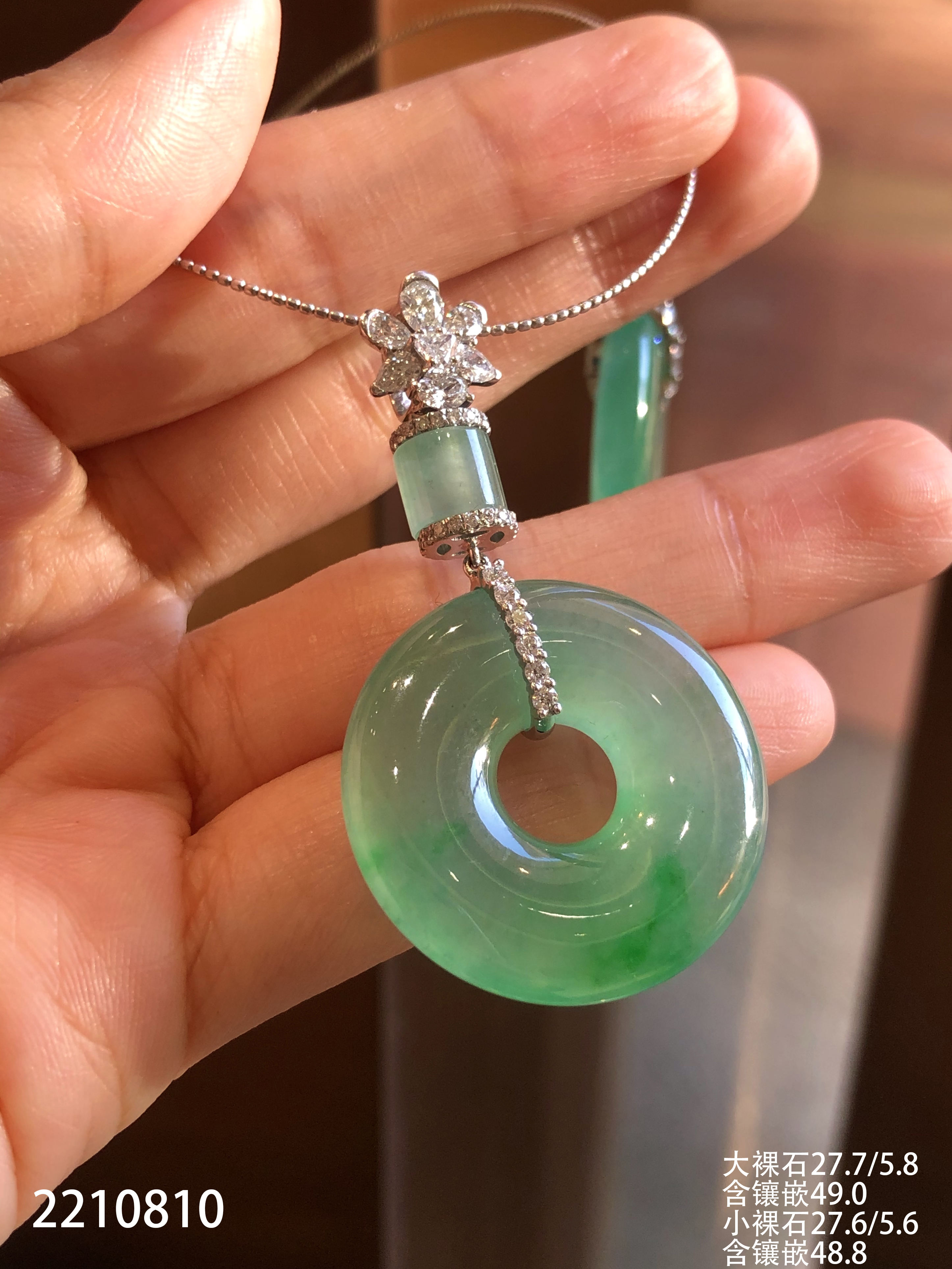 2210810,冰飘翠平安扣吊坠一对。具体价格微信咨询