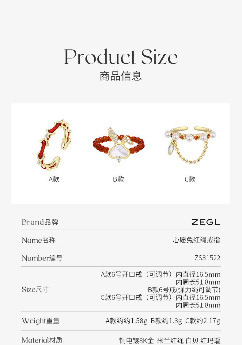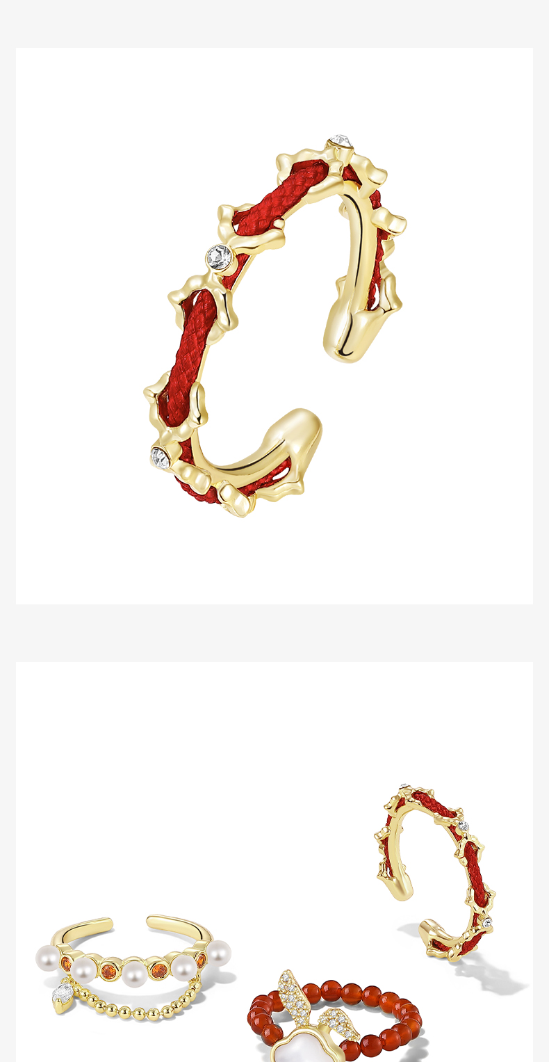 ZEGL设计师本命年系列心愿兔子红绳戒指女小众设计个性开口食指戒