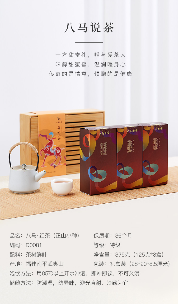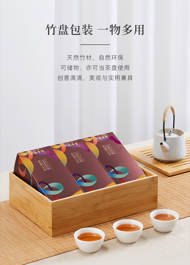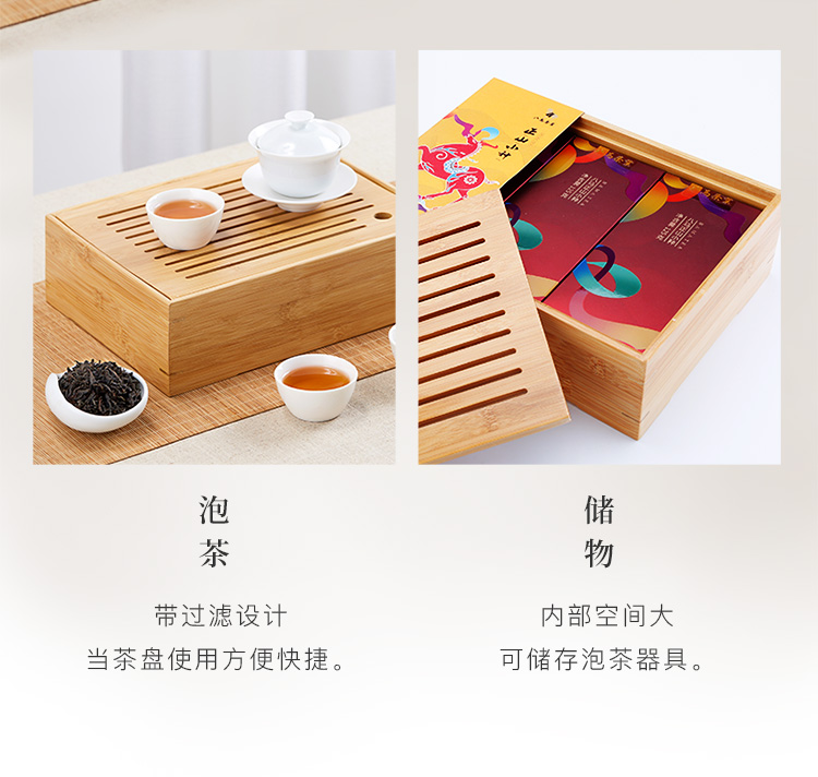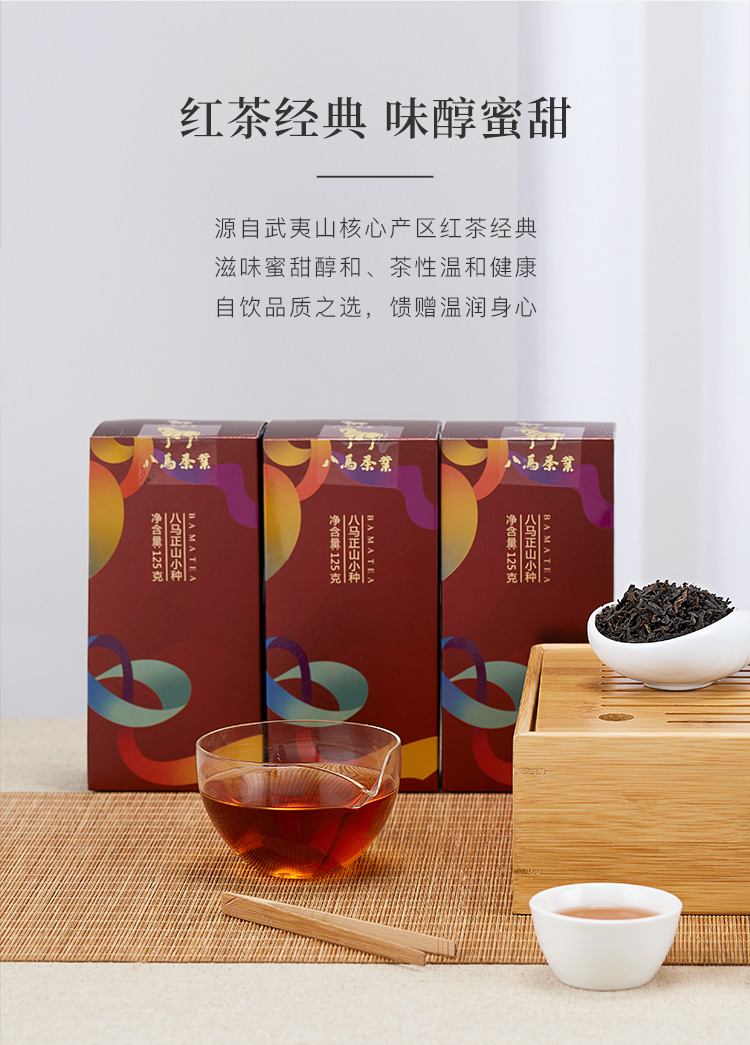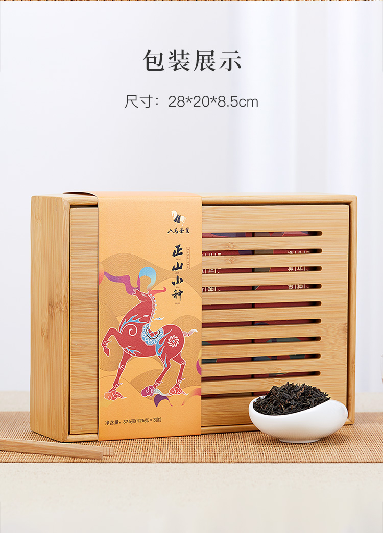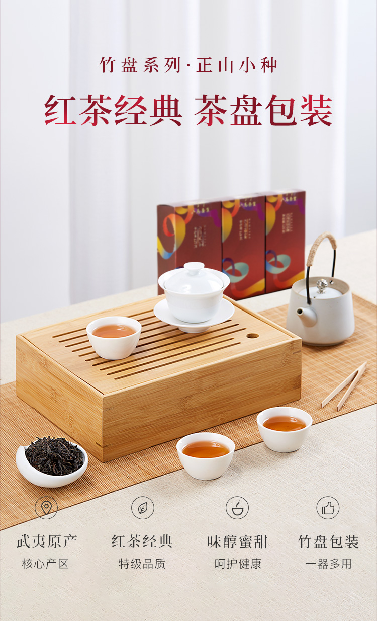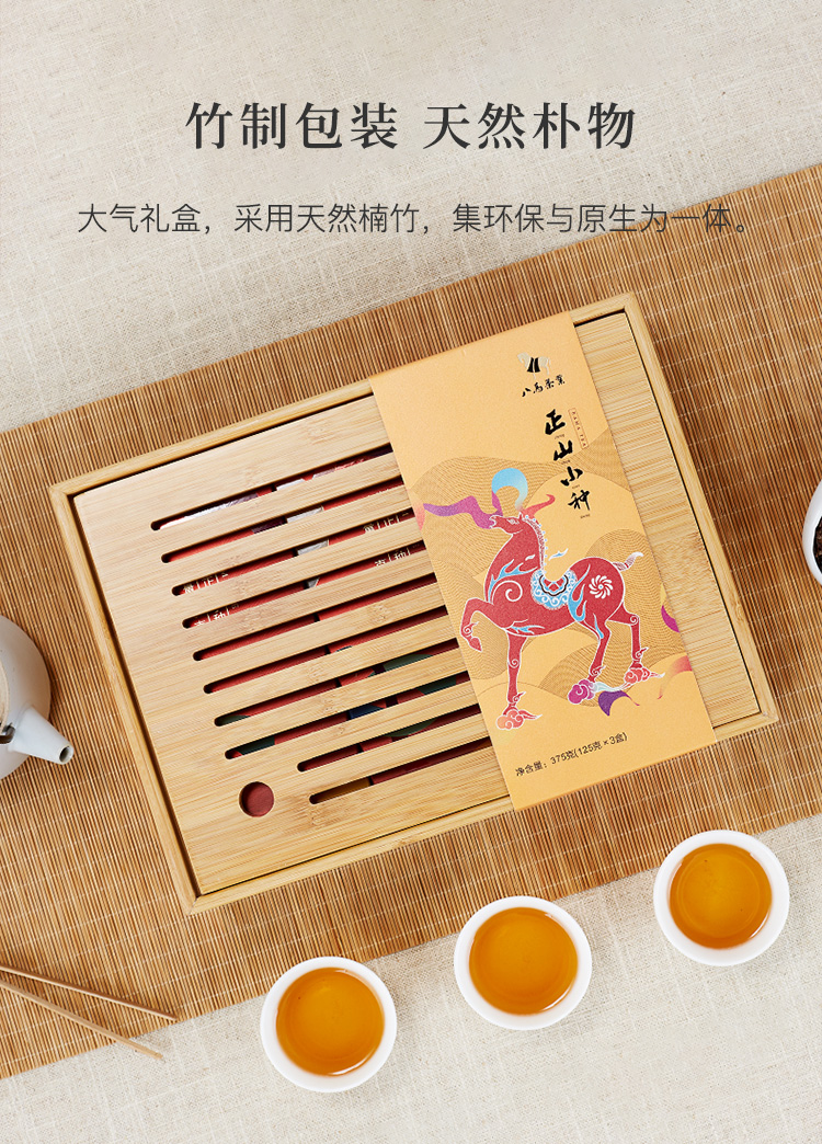 八马茶业 茶叶 特级正山小种红茶 竹制茶盘 组合茶叶礼盒装375g
