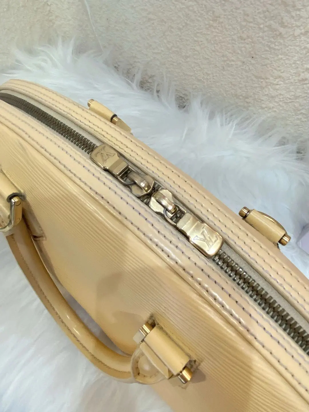 【商品详情】正品二手 LV JASMIN 浅黄色 水波纹 牛皮 小号 手提包🐚95新 31*19。拉链布和边角正常使用感。时尚经典之选