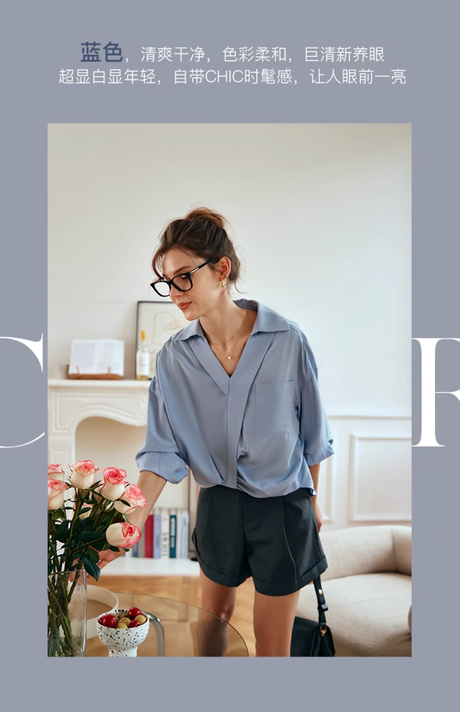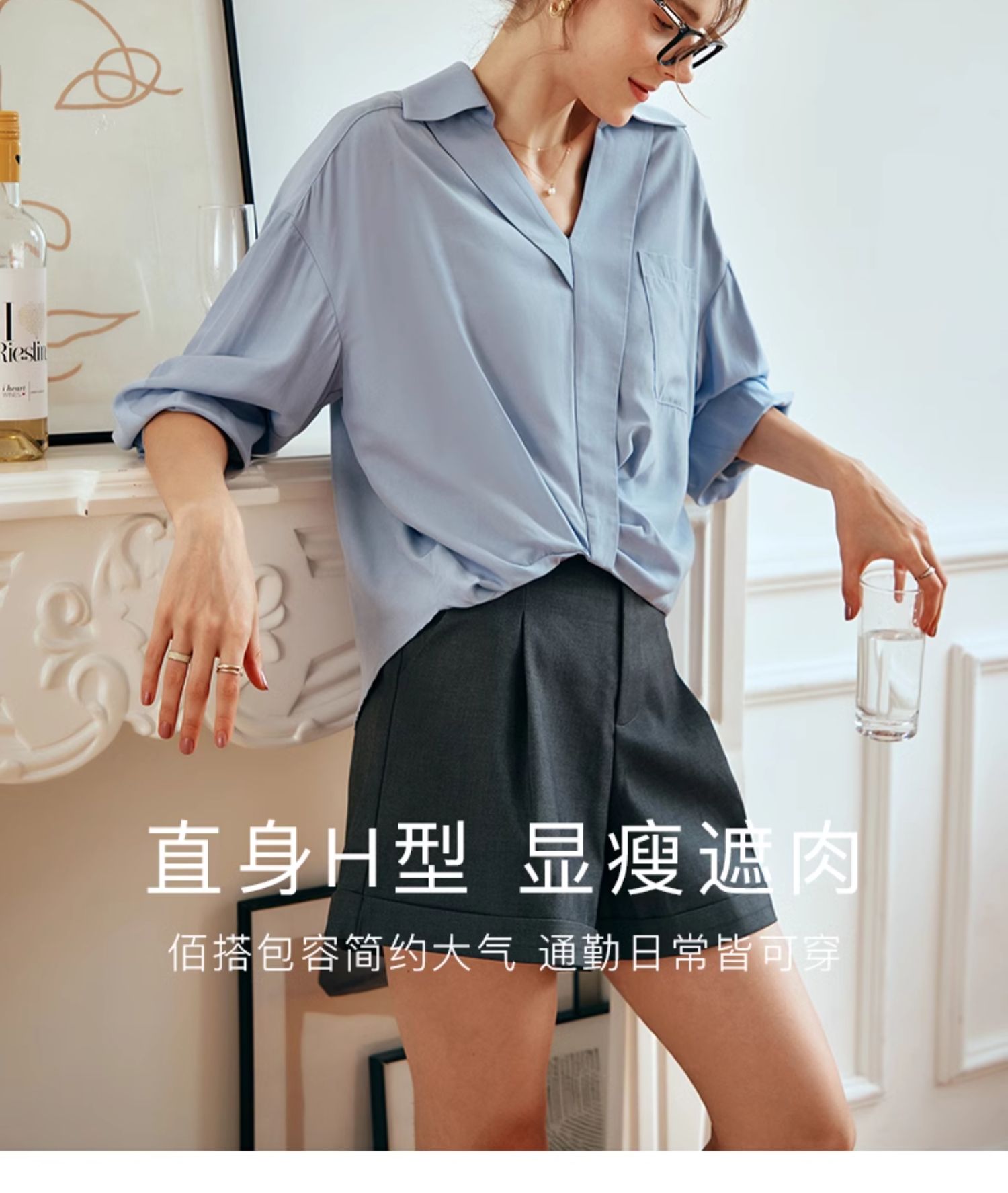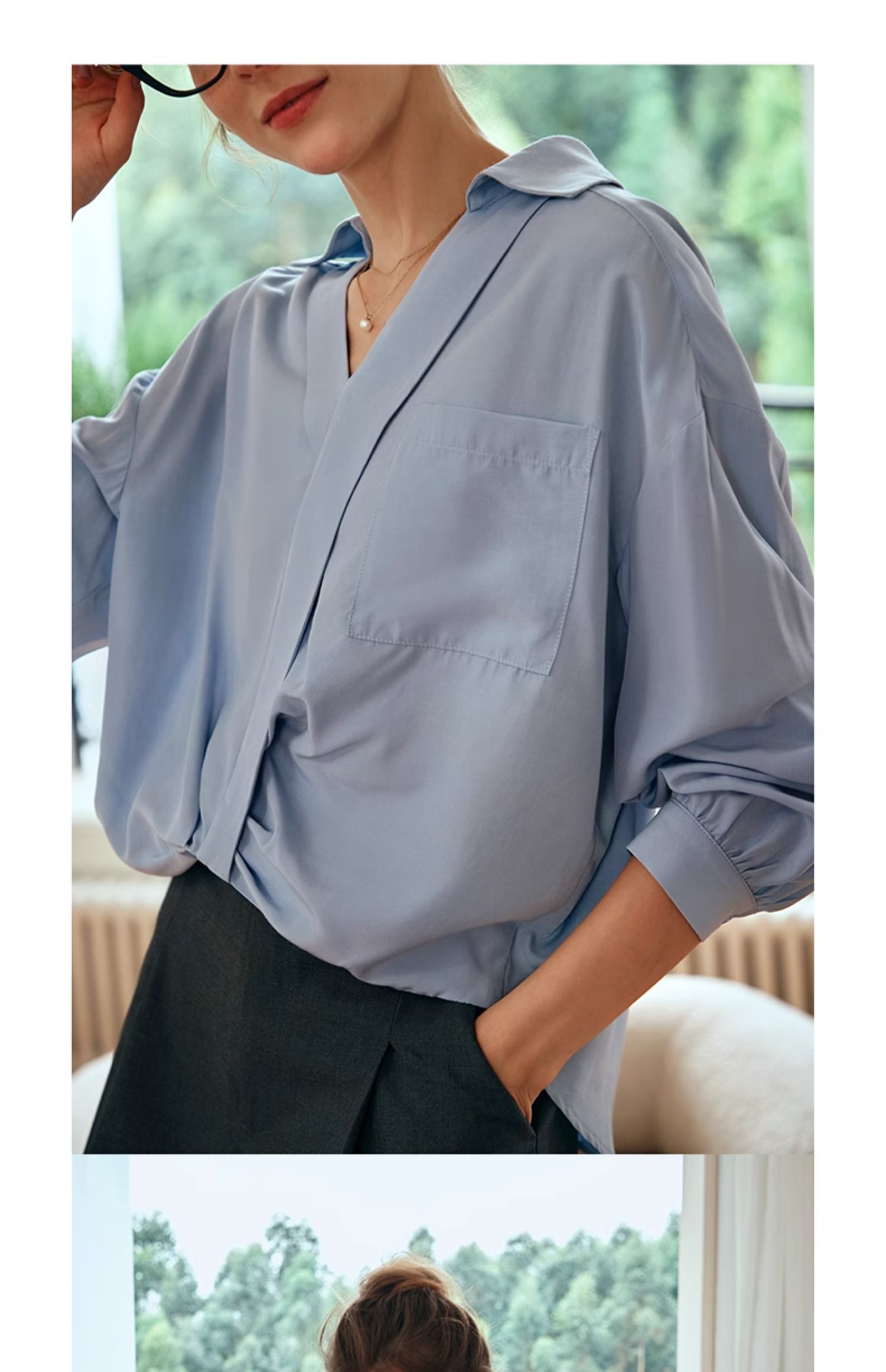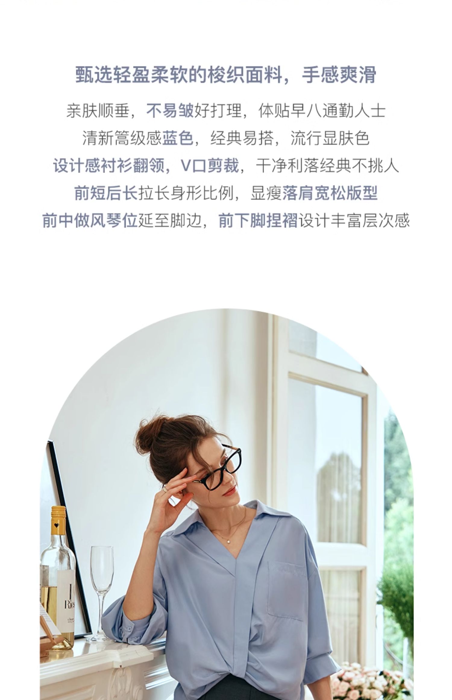 OLrain欧芮儿蓝色雪纺衫女早春2024新款通勤小众设计感高级衬衫